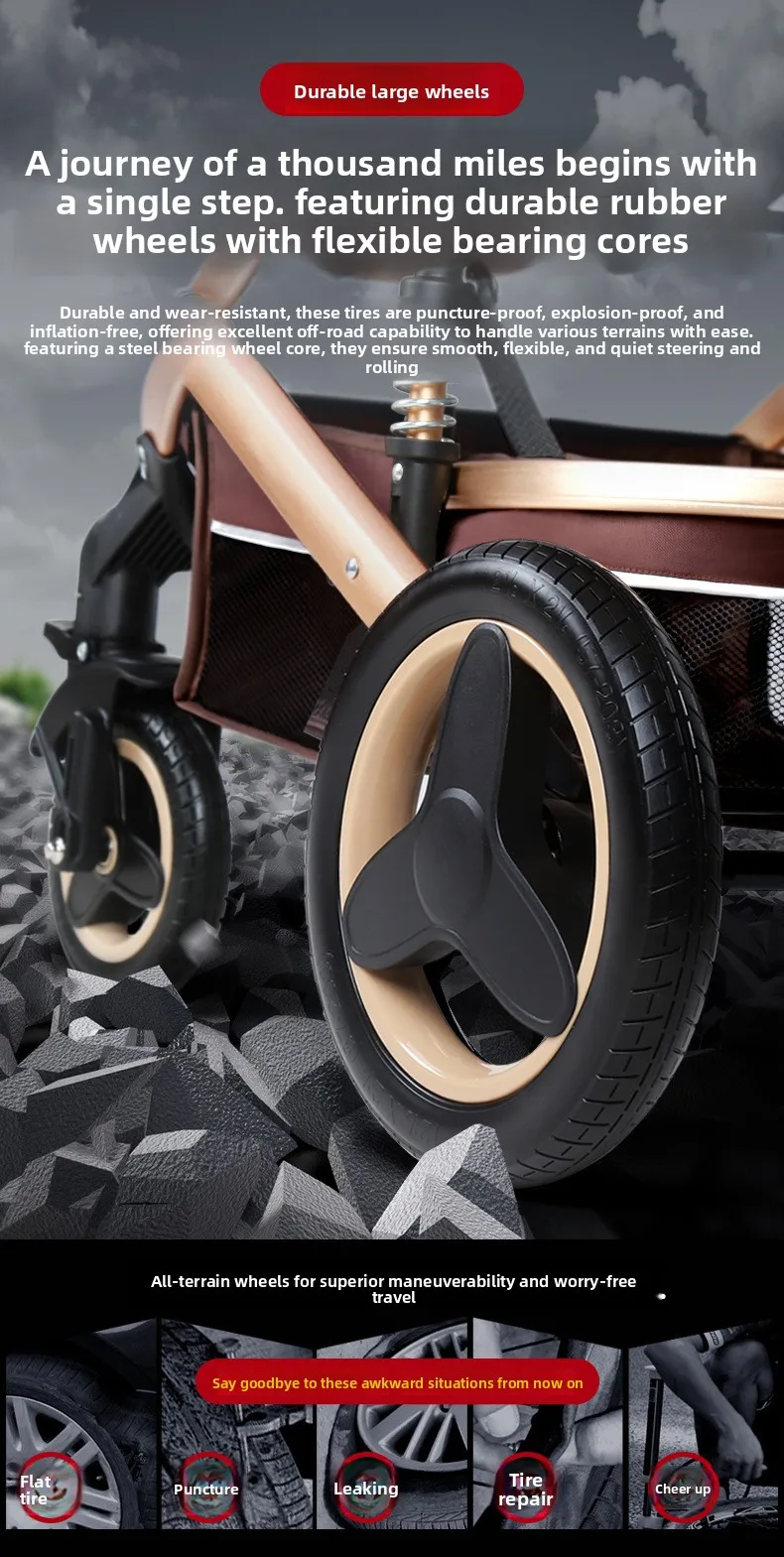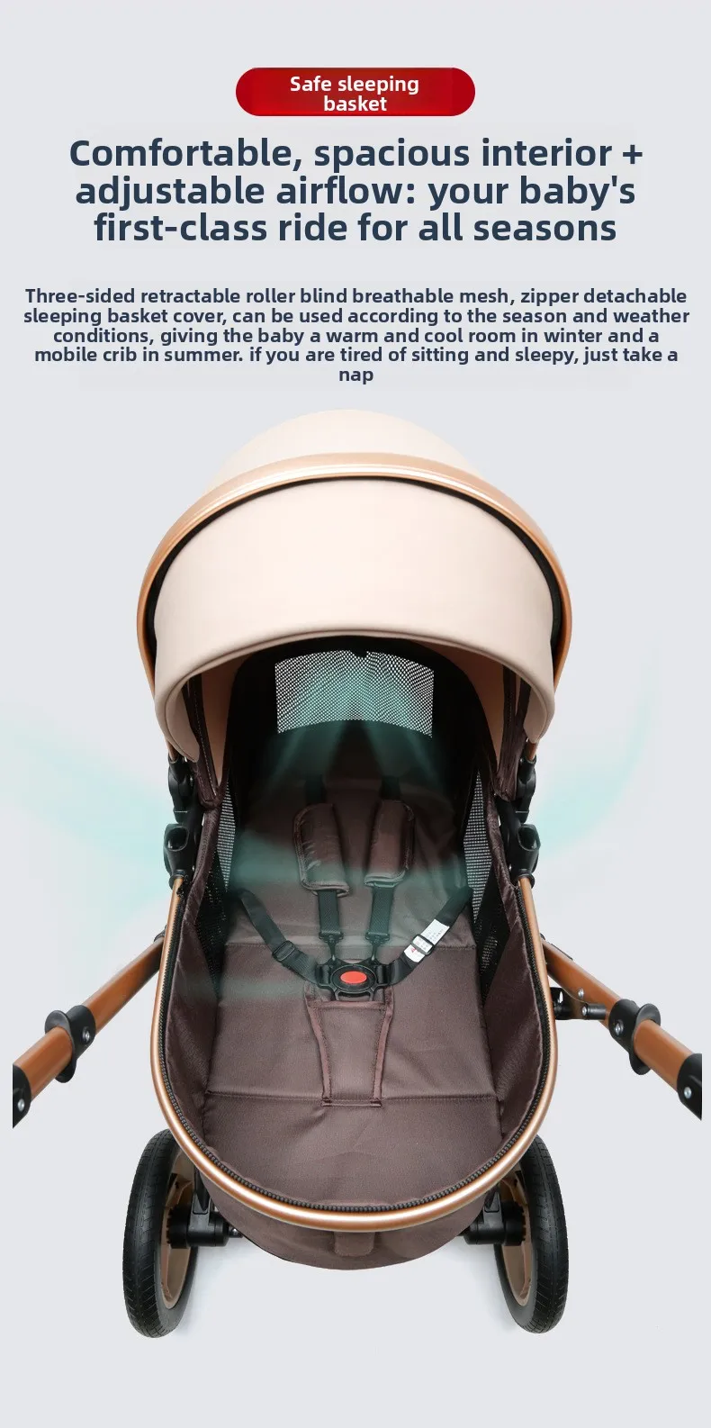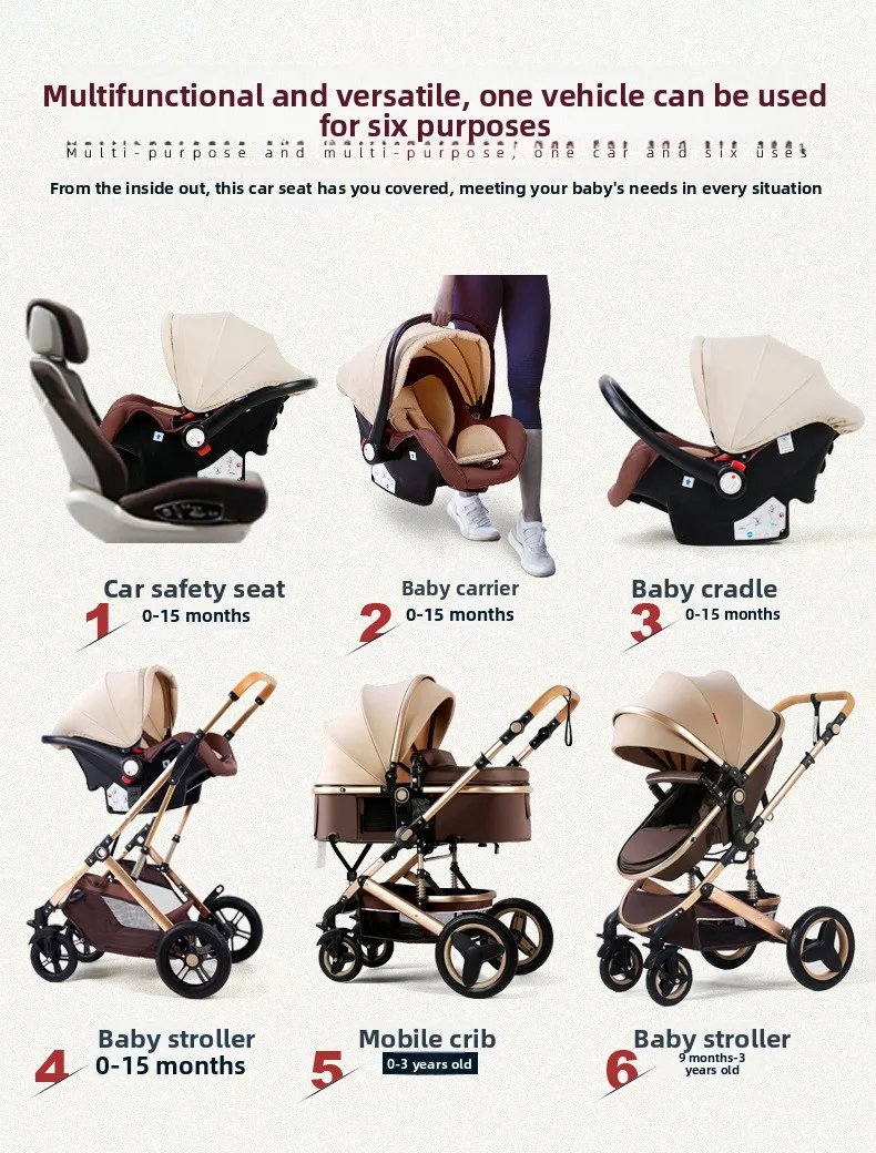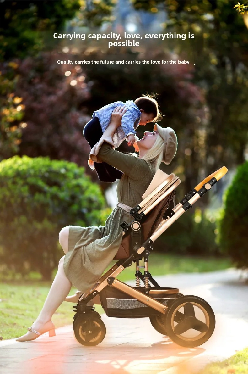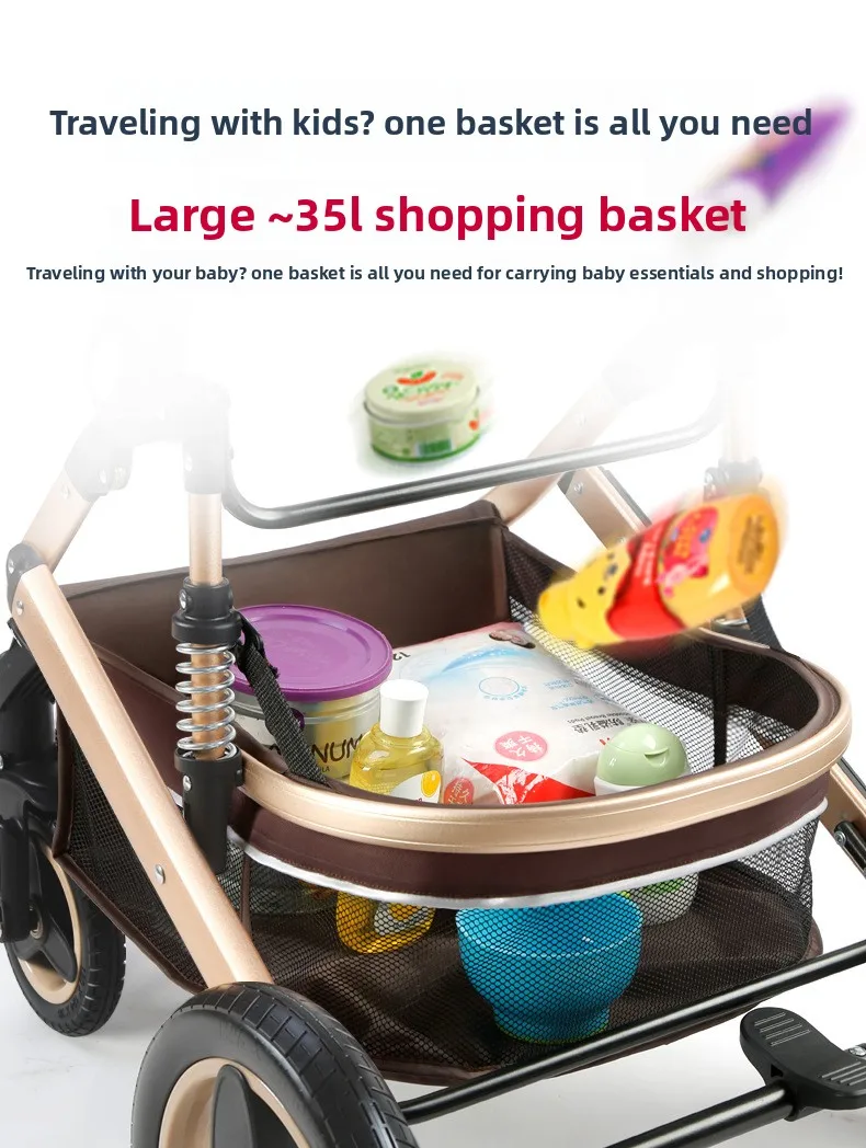 El cochecito con asiento tipo cesta puede sentarse y acostarse Amortiguador plegable de paisaje alto bidireccional ligero