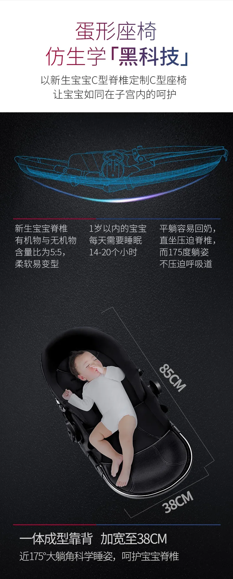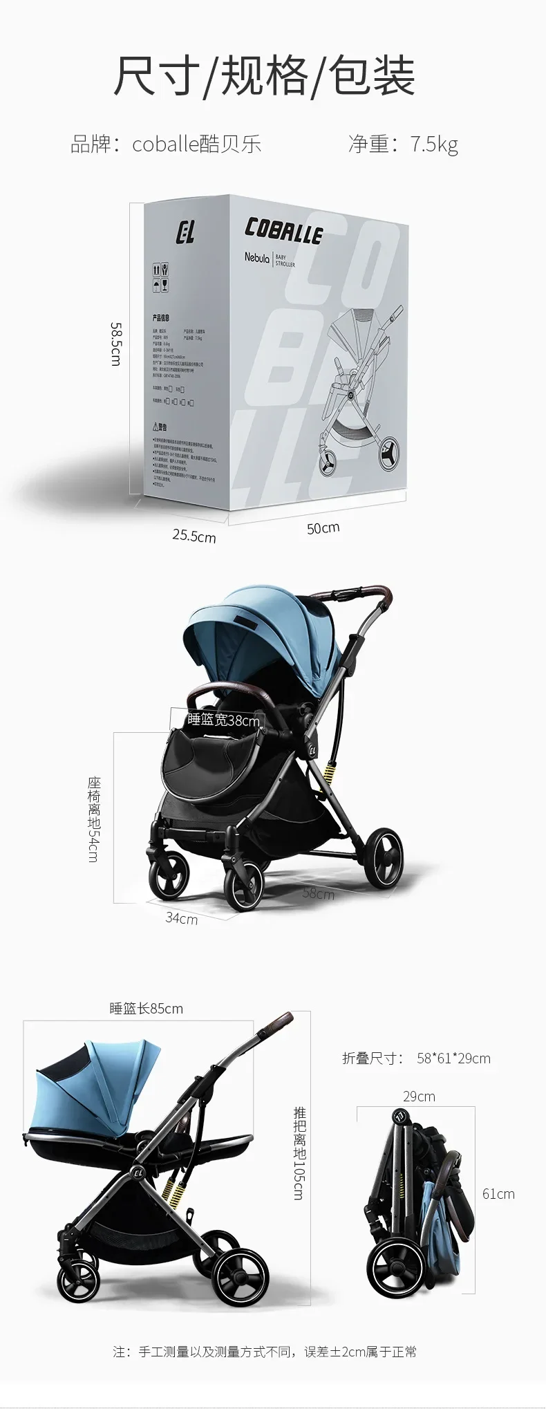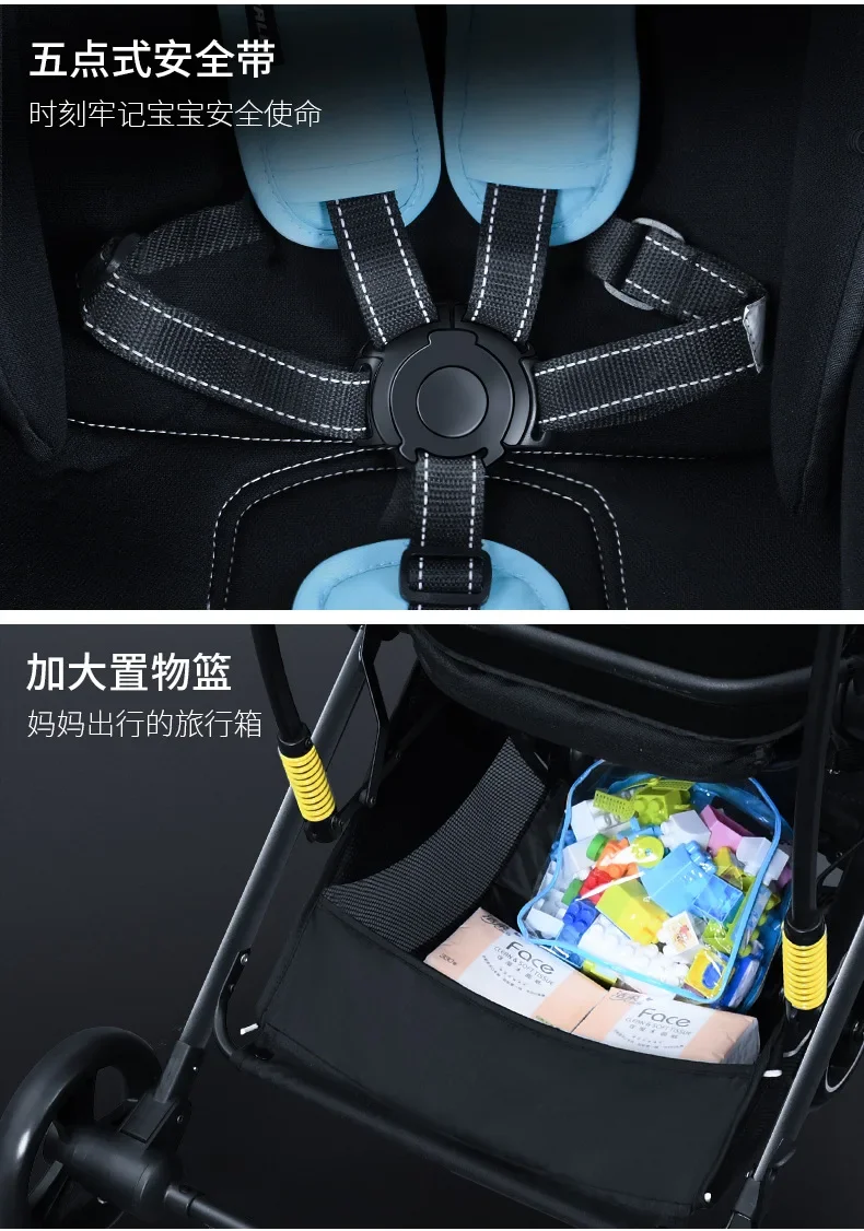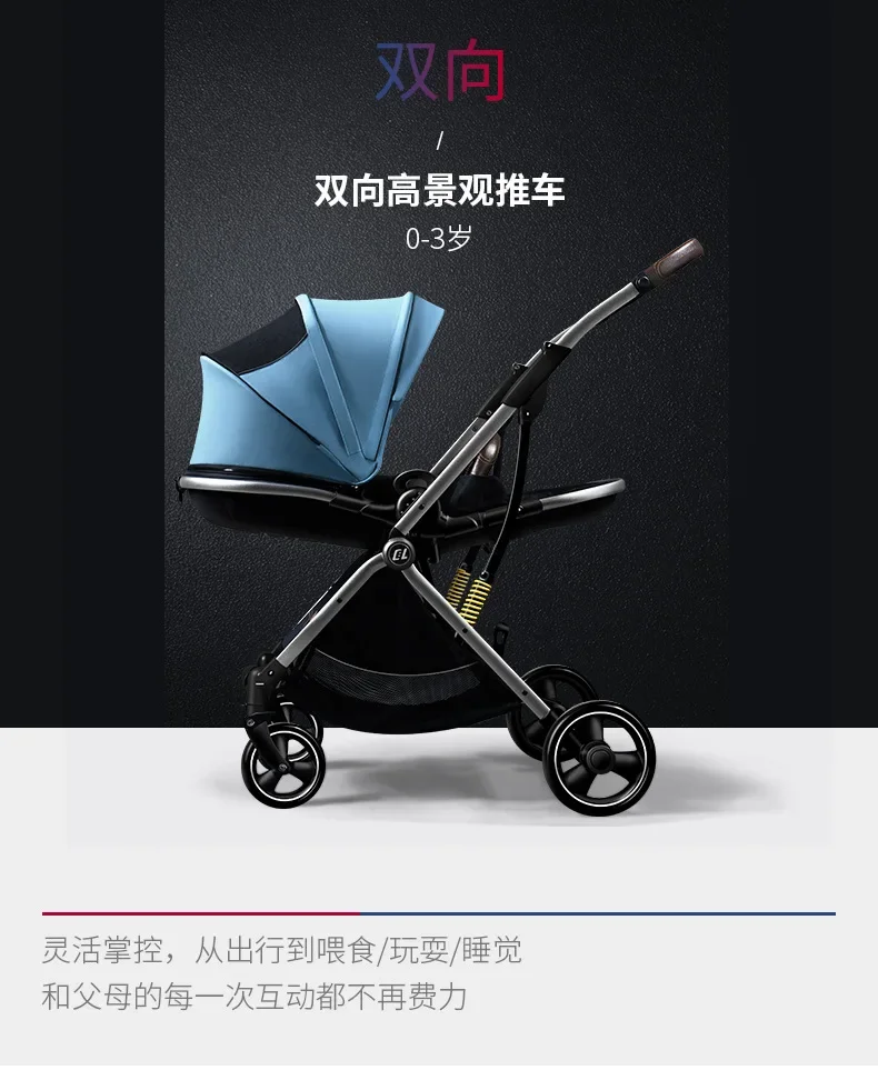 Cochecito de bebé ligero reversible de alta visión adecuado tanto sentado acostado perfecto para recién nacidos niños