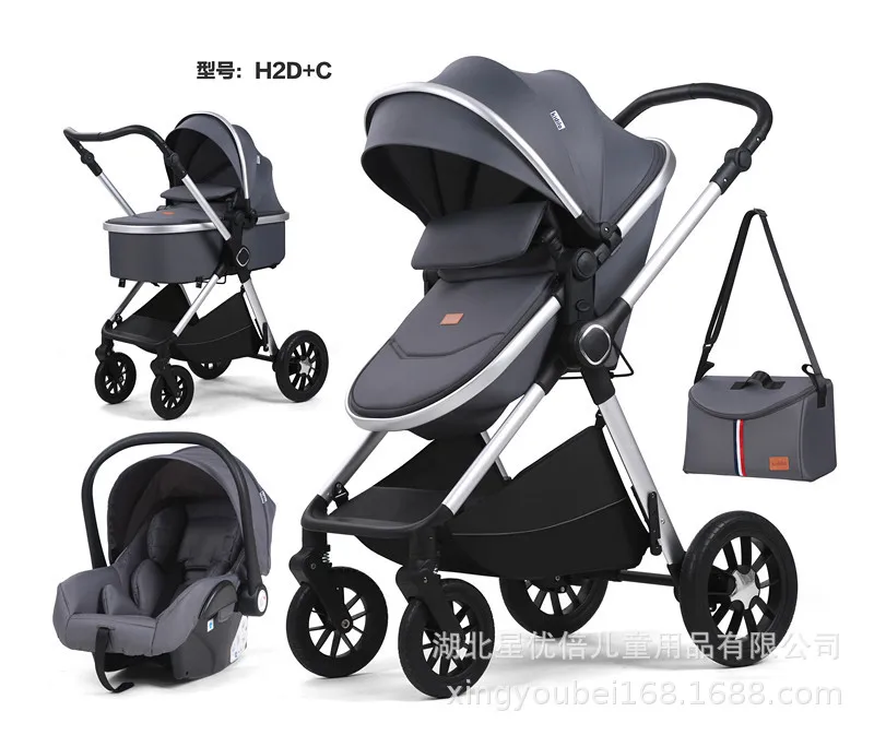 Cochecito de bebé 3 en 1 de paisaje alto, asiento de vapor de seguridad, cochecito de aleación de aluminio bidireccional plegable