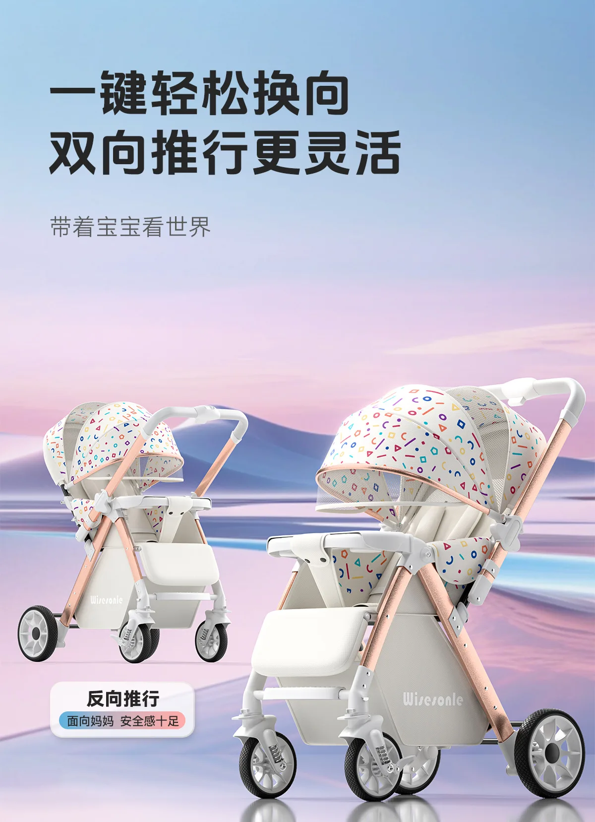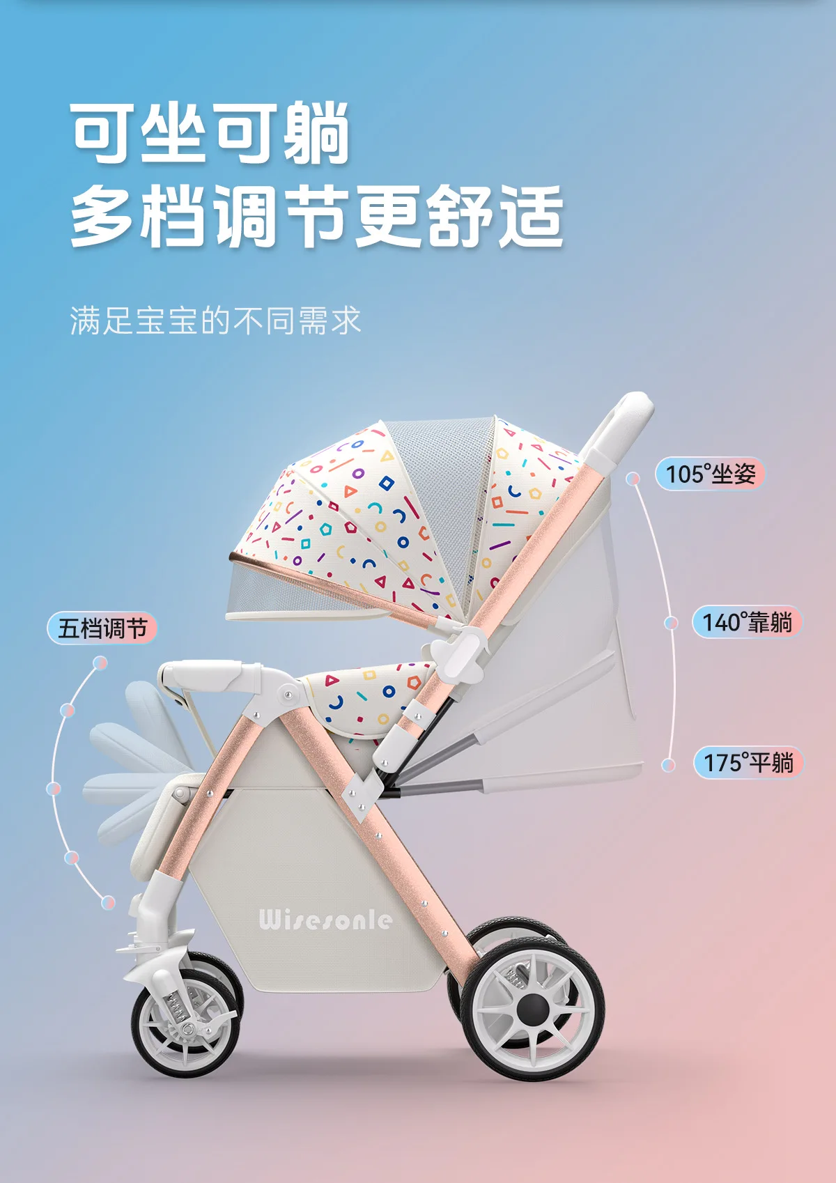 Cochecito de bebé, cochecito de bebé que puede sentarse y tumbarse, ligero, alto paisaje, cochecito de bebé de 0 a 3 años bidireccional