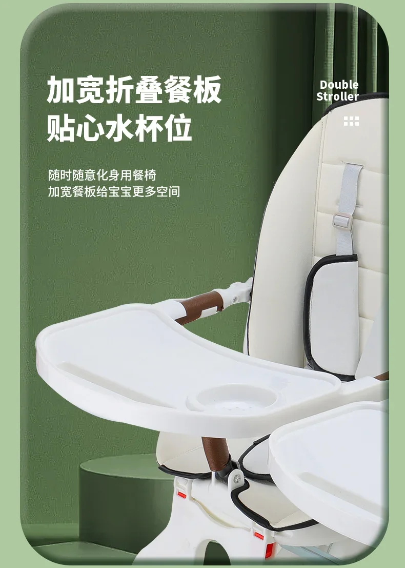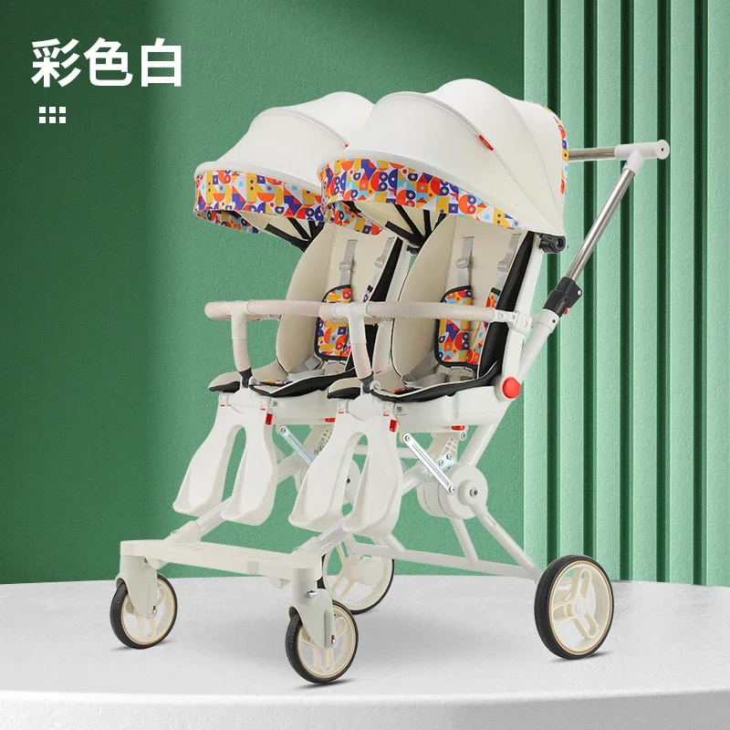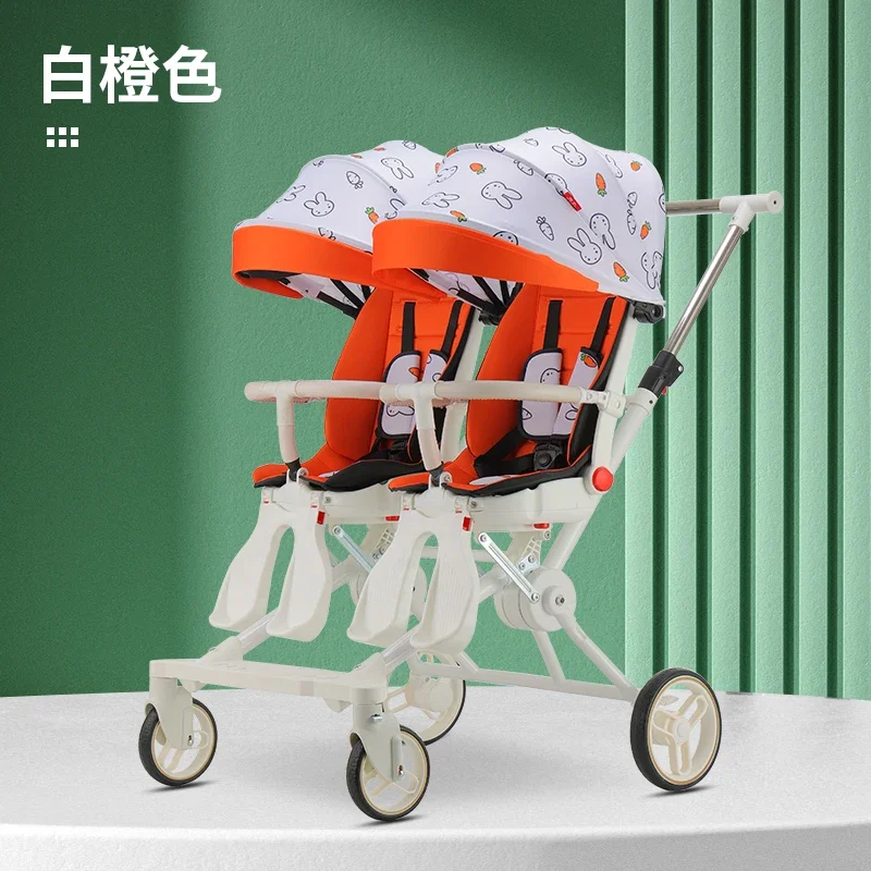 Cochecito de bebé doble - Estructura de acero al carbono con 180 ° Asientos giratorios Diseño plegable a prueba de golpes y cochecito infantil portátil acostado