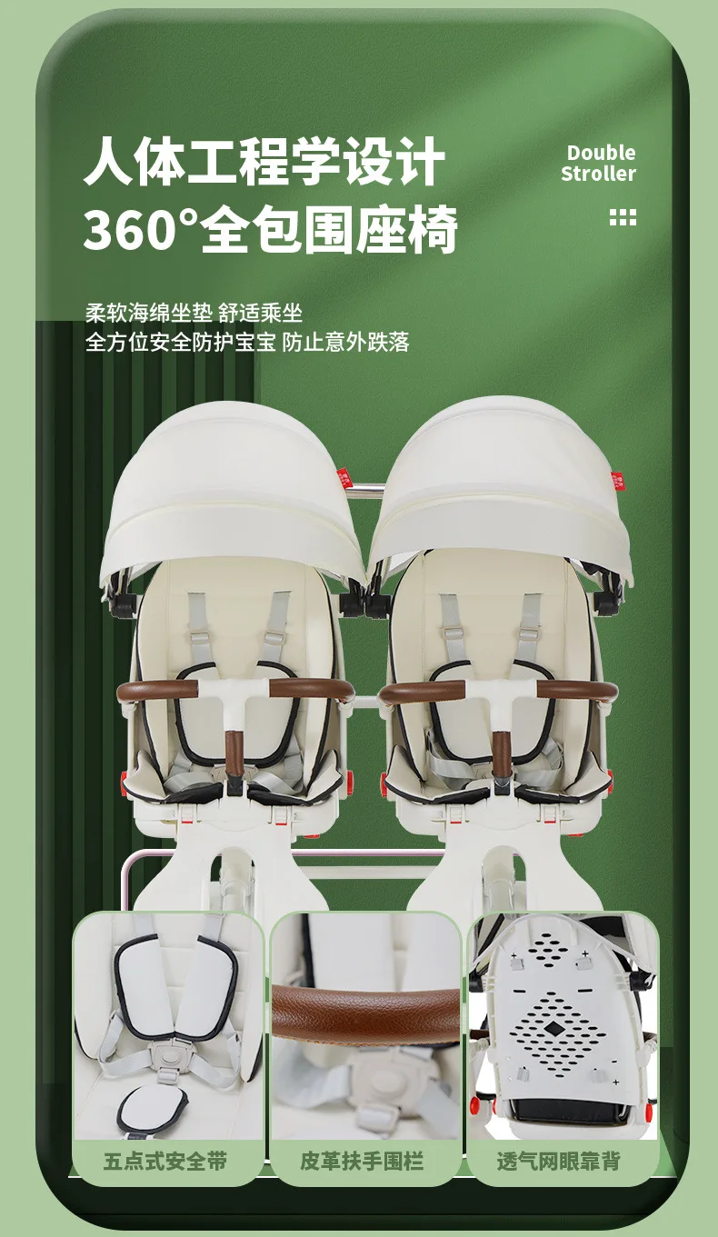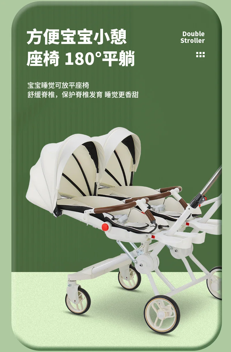 Cochecito de bebé doble, herramienta mágica para caminar, ligero, plegable, puede sentarse o acostarse, asiento giratorio doble