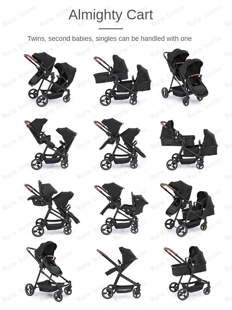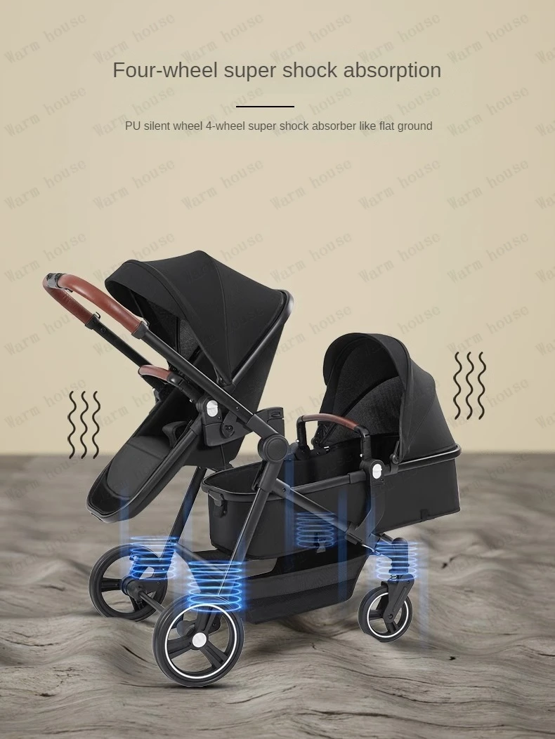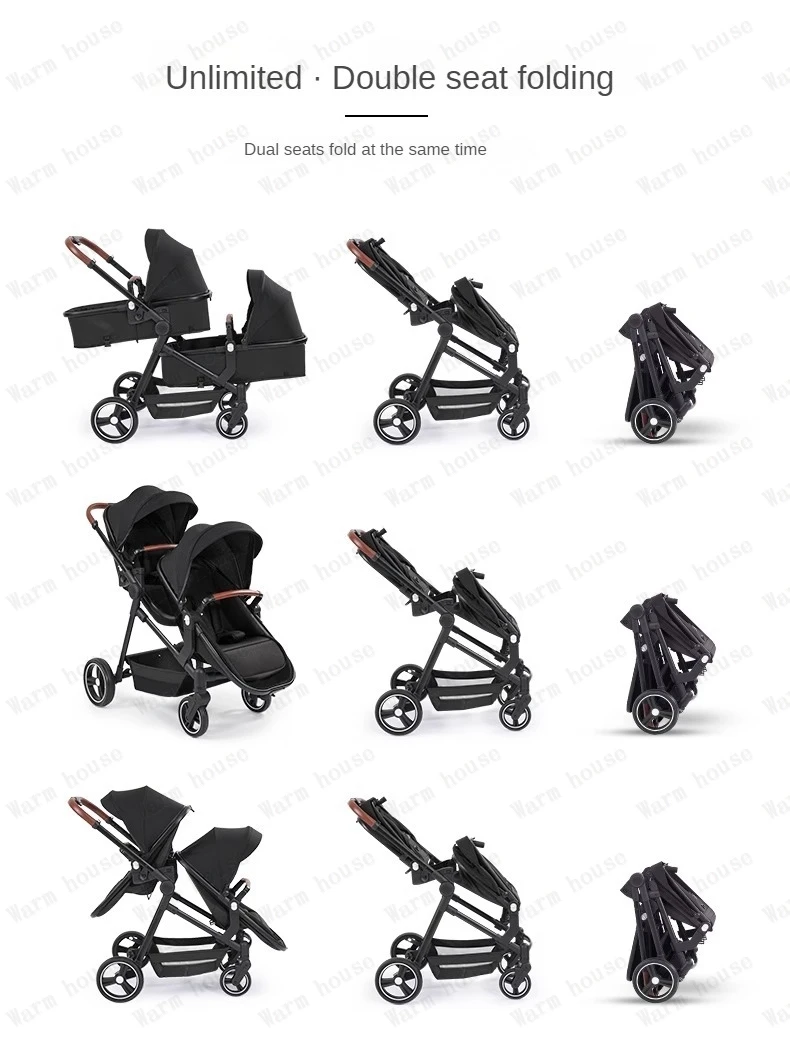 Cochecito de bebé doble plegable y ligero, cochecito de bebé de alta vista, cochecito de bebé doble portátil bidireccional, cochecito de viaje ligero