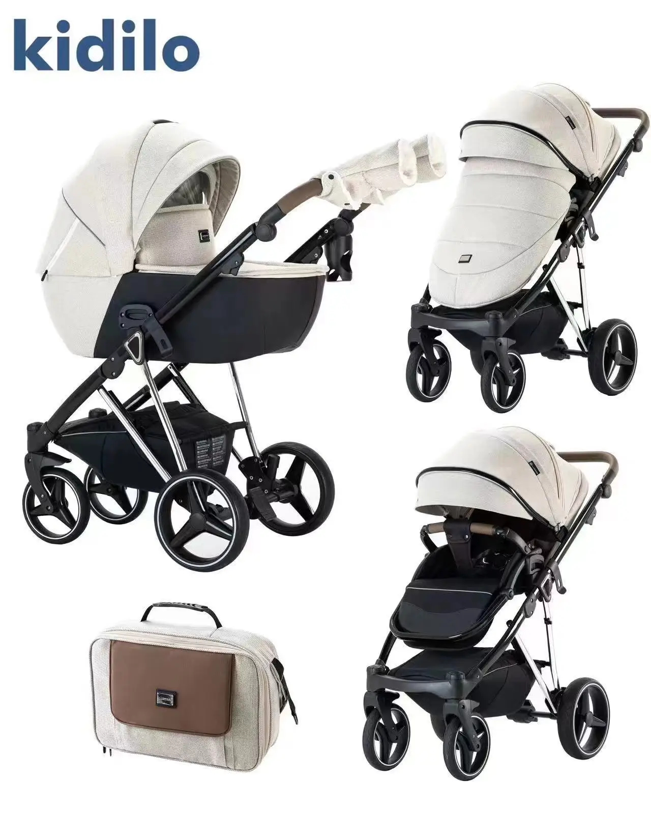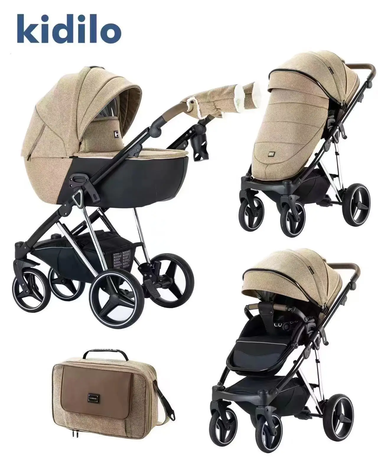 Cochecito de bebé Kidilo de paisaje alto, puede sentarse, artefacto plegable ligero para caminar con pie, cochecito de cuatro ruedas