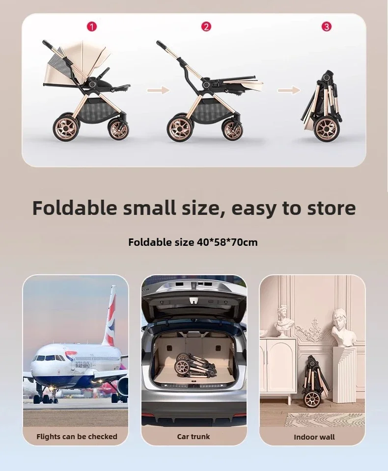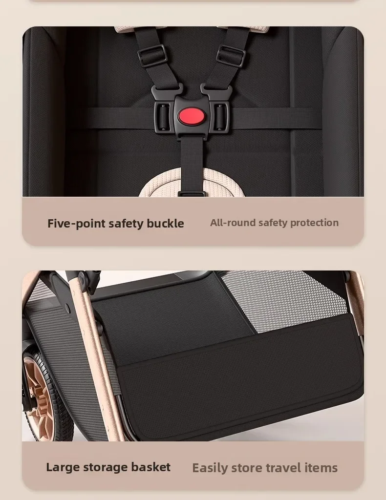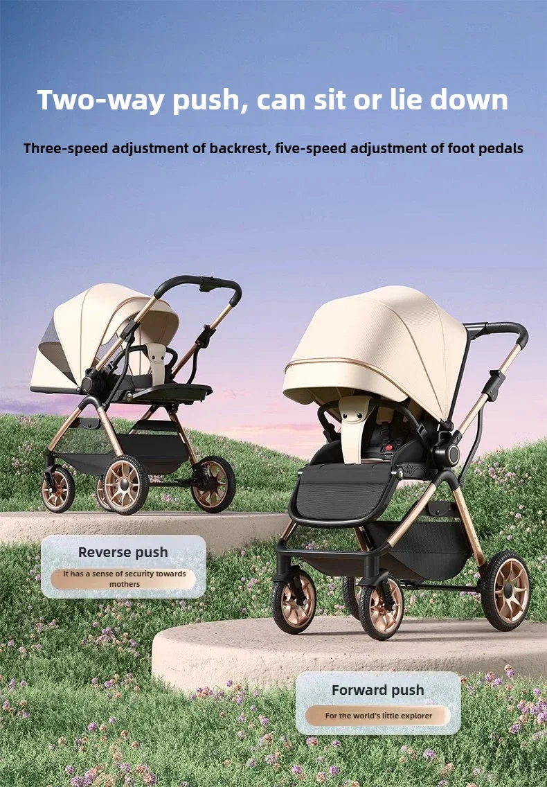 Nuevo Cochecito ligero, cochecito plegable portátil, cochecito multiusos de cuatro ruedas, reposapiés y respaldo ajustables