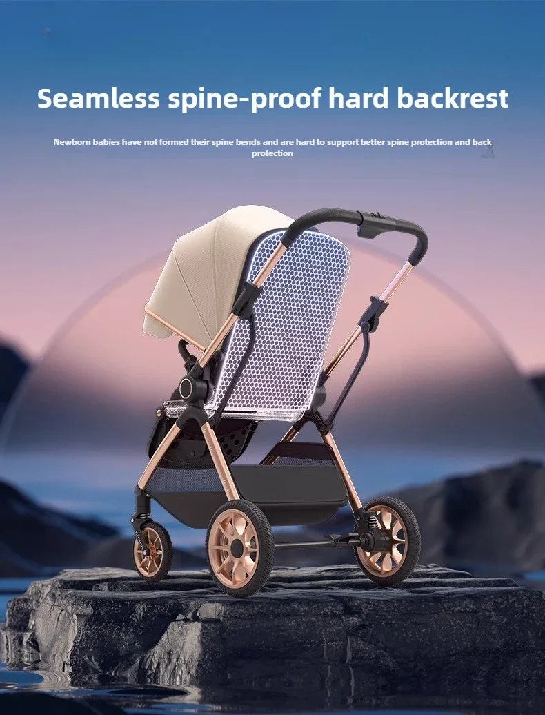 Cochecito de bebé ligero con absorción de impactos, adecuado para viajes al aire libre, respaldo ajustable, plegable con un solo toque