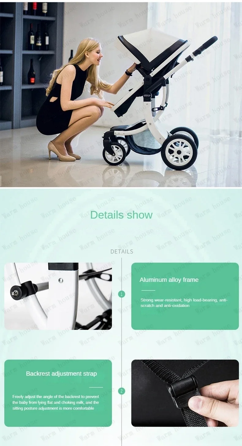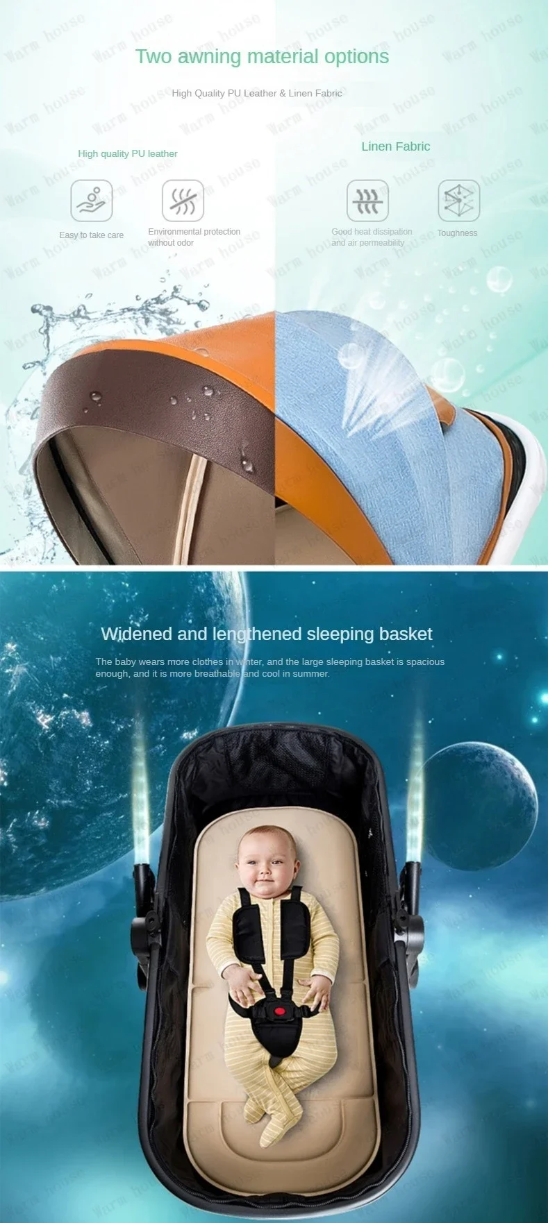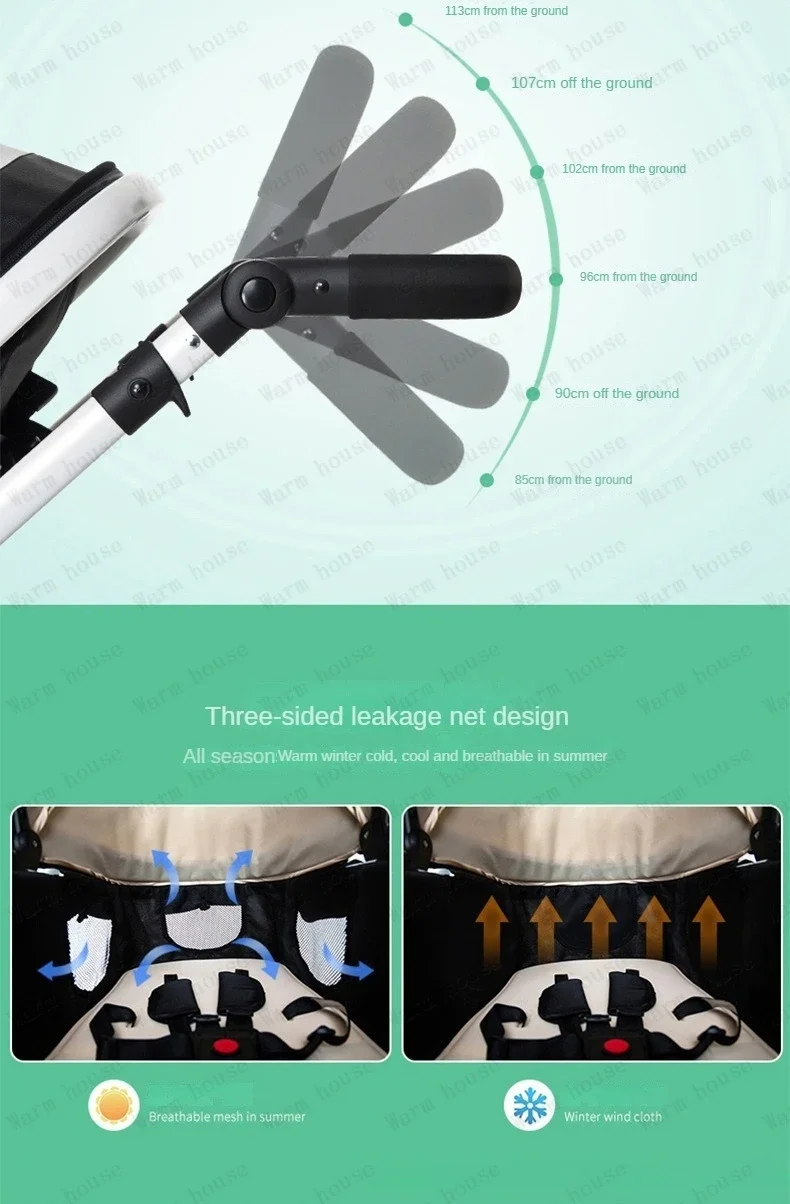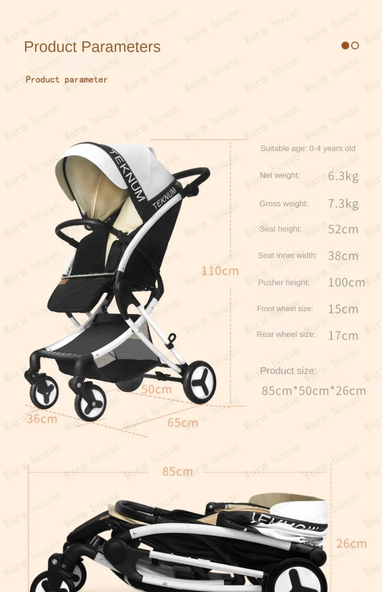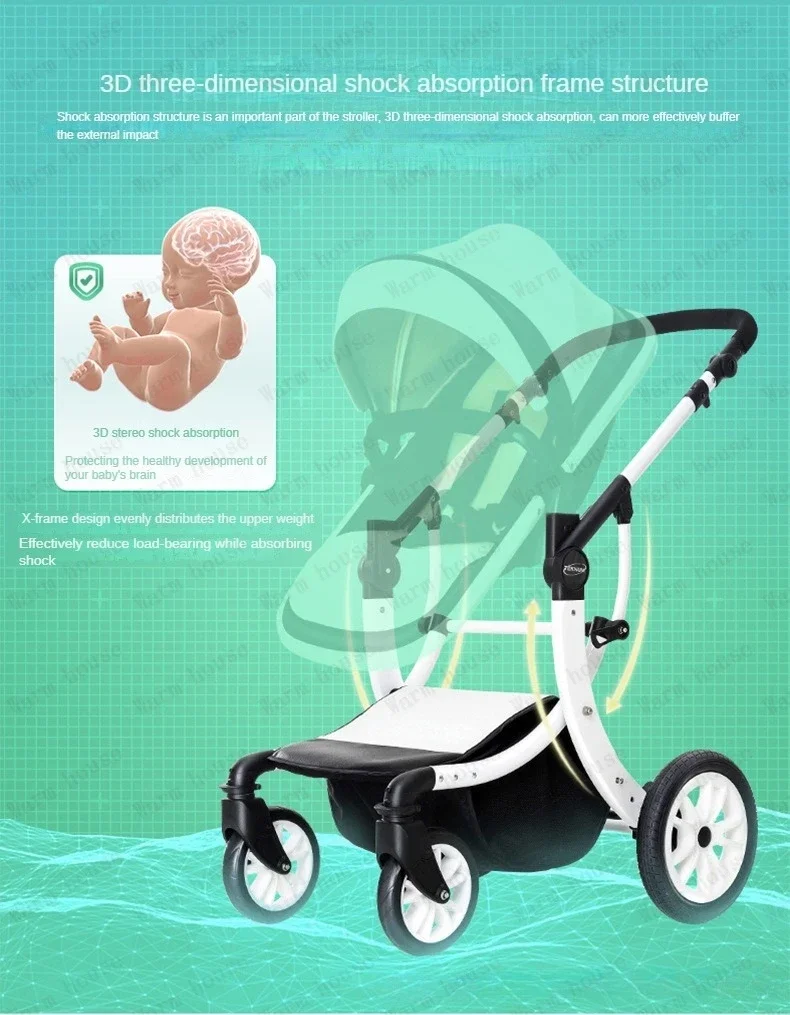 Cochecito de bebé ligero, cochecito de viaje portátil, mango ajustable, cochecito de bebé multifunción de alta vista
