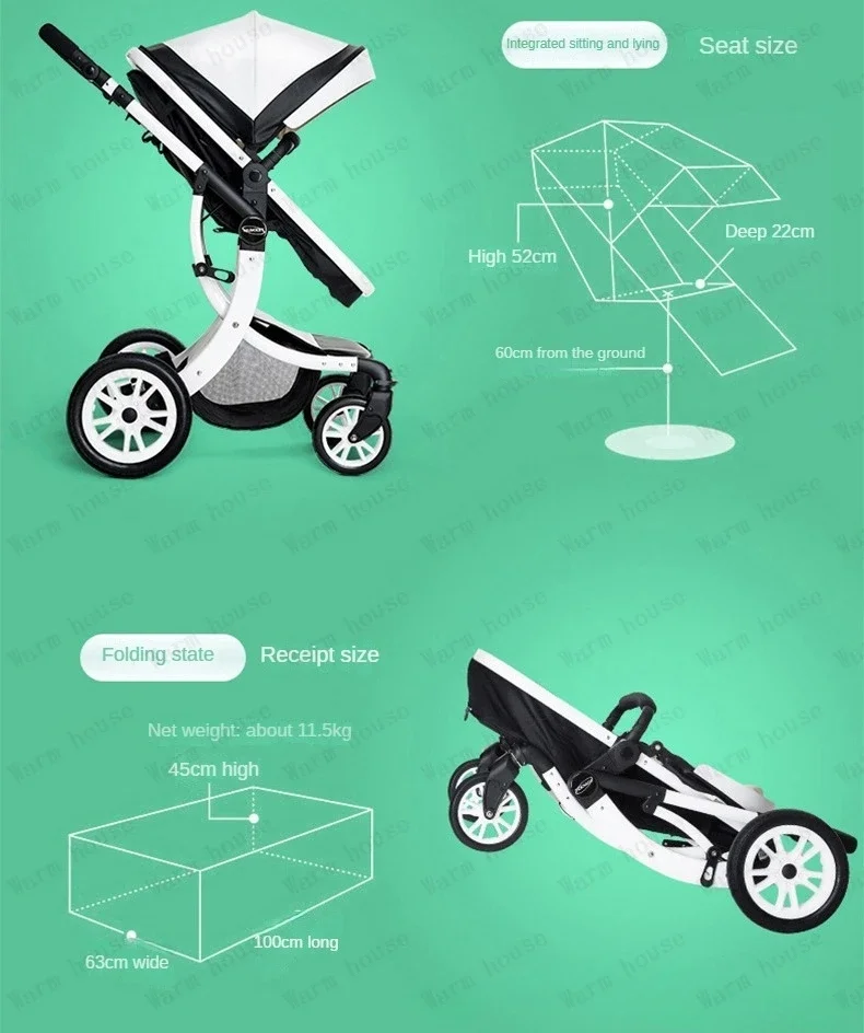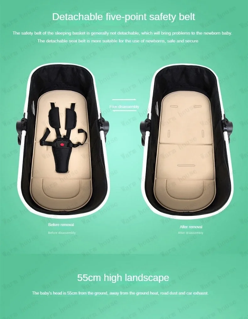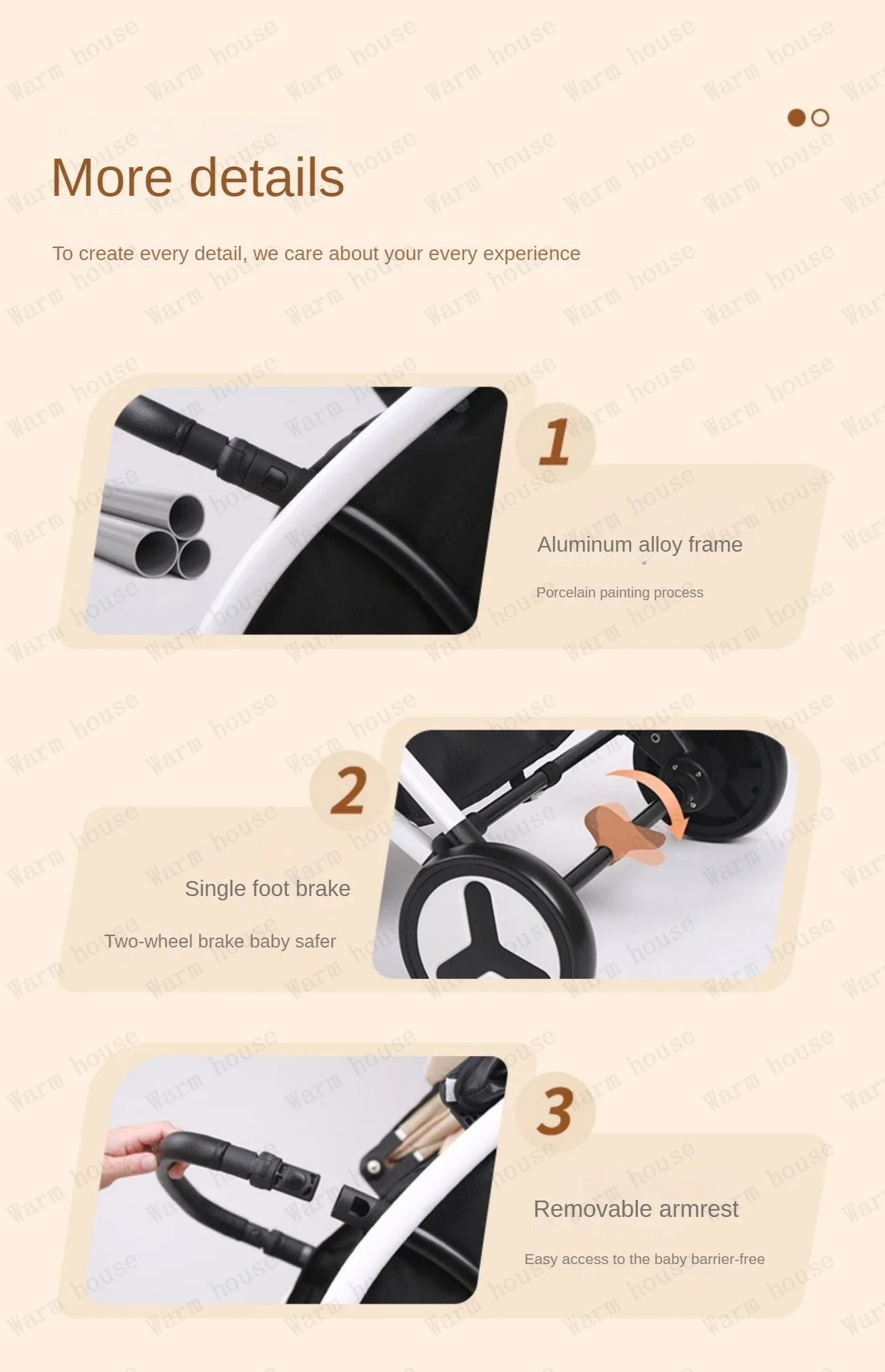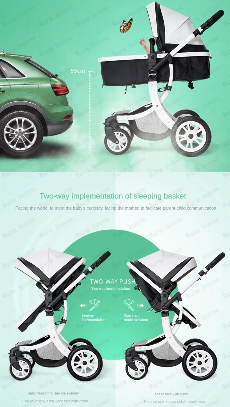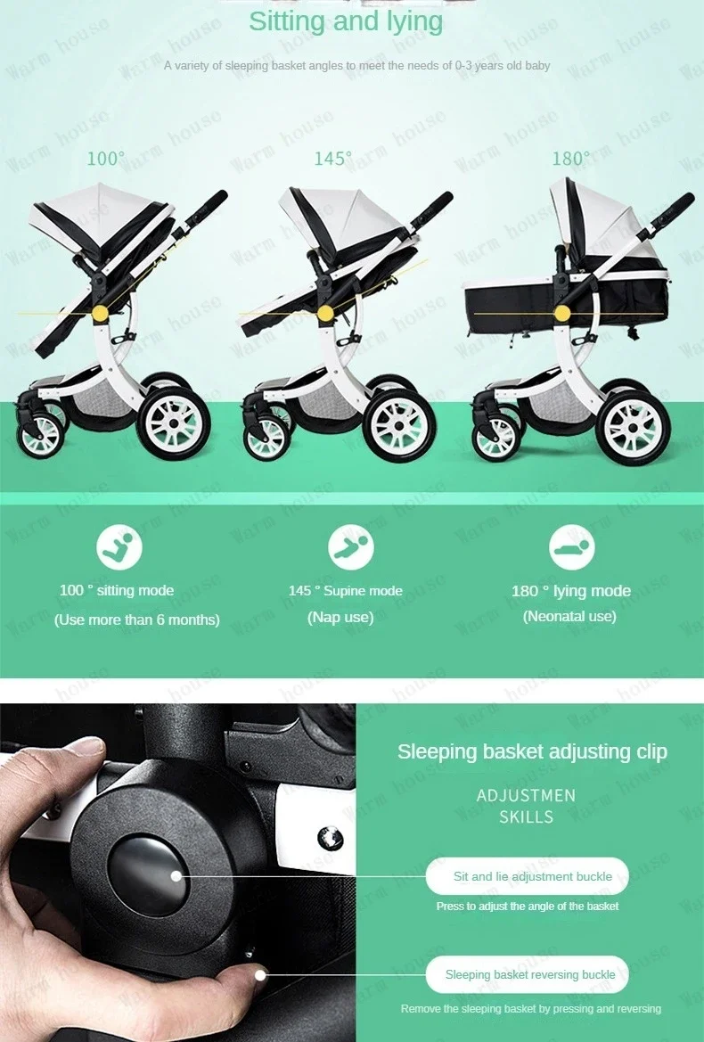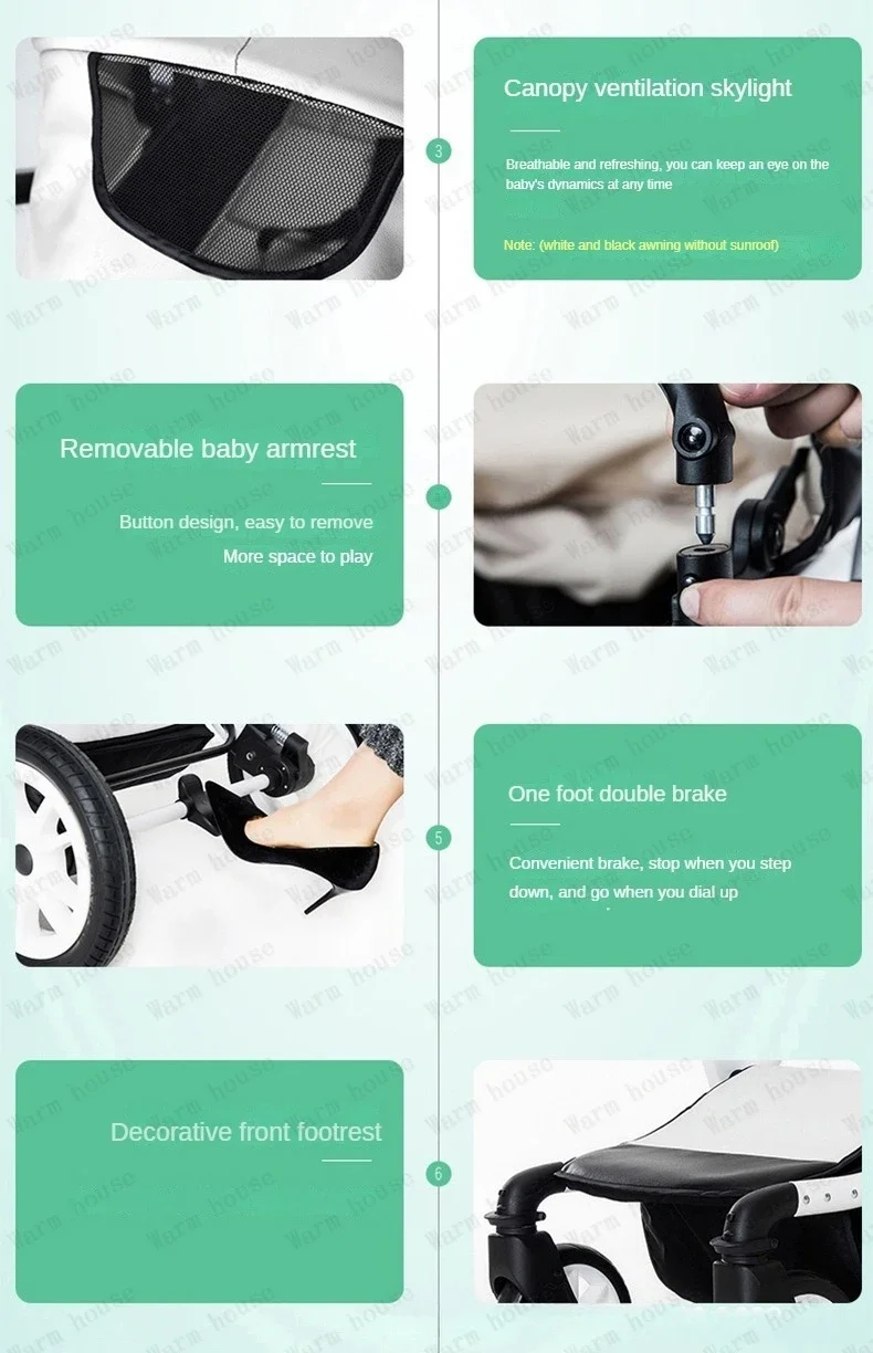 Cochecito de bebé ligero, cochecito de viaje portátil, mango ajustable, cochecito de bebé multifunción de alta vista