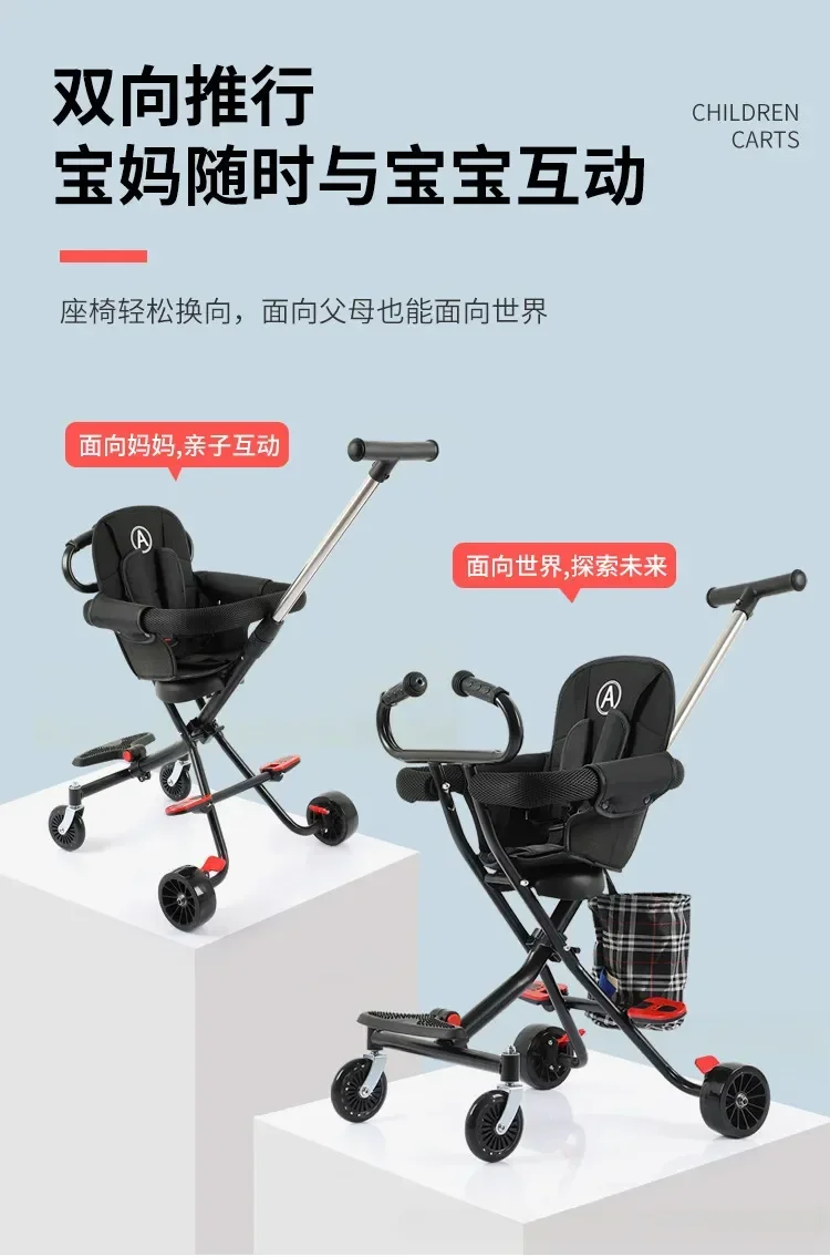 Comprar Cochecito de bebé ligero y plegable con cinturón de seguridad de cinco puntos, cochecito de bebé de empuje bidireccional