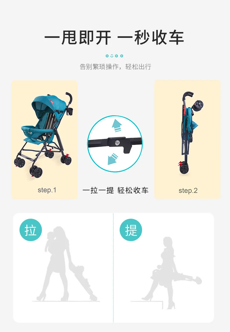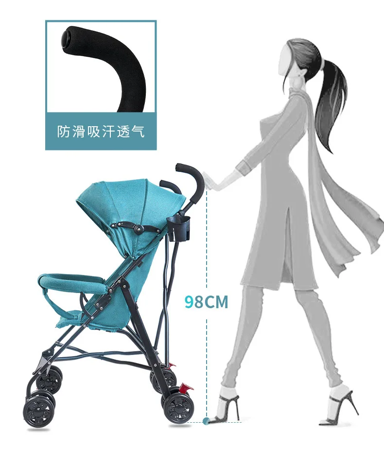 Cochecito de bebé ligero, plegable, paraguas simple, puede sentarse y acostarse en el cochecito de bebé de viaje de verano