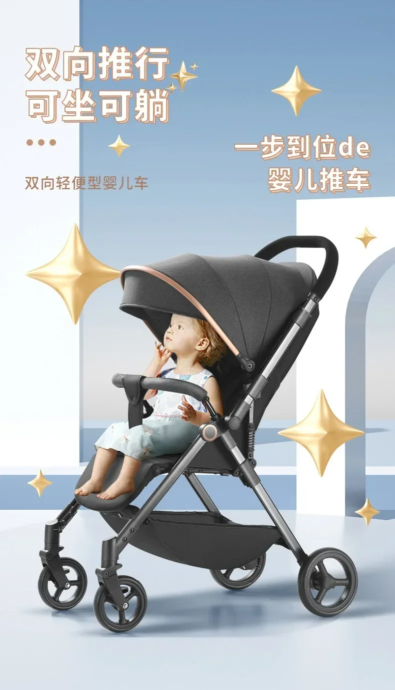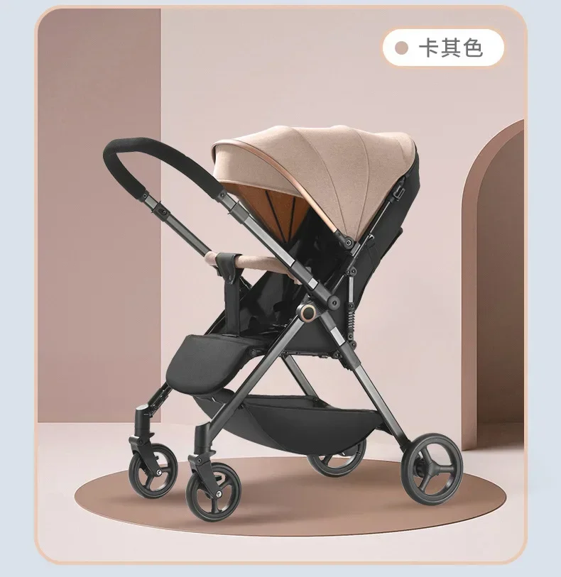 Cochecito de bebé ligero y plegable, paisaje alto, puede sentarse, tumbarse en ambos direcciones, amortiguador de cuatro ruedas para niños recién nacidos