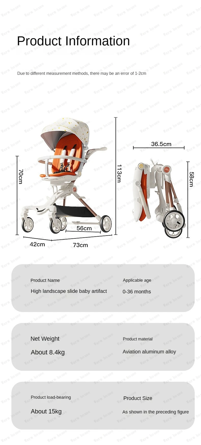Comprar Cochecito de bebé ligero y plegable de visión alta, carrito de viaje de cuatro ruedas, 360 °, bidireccional