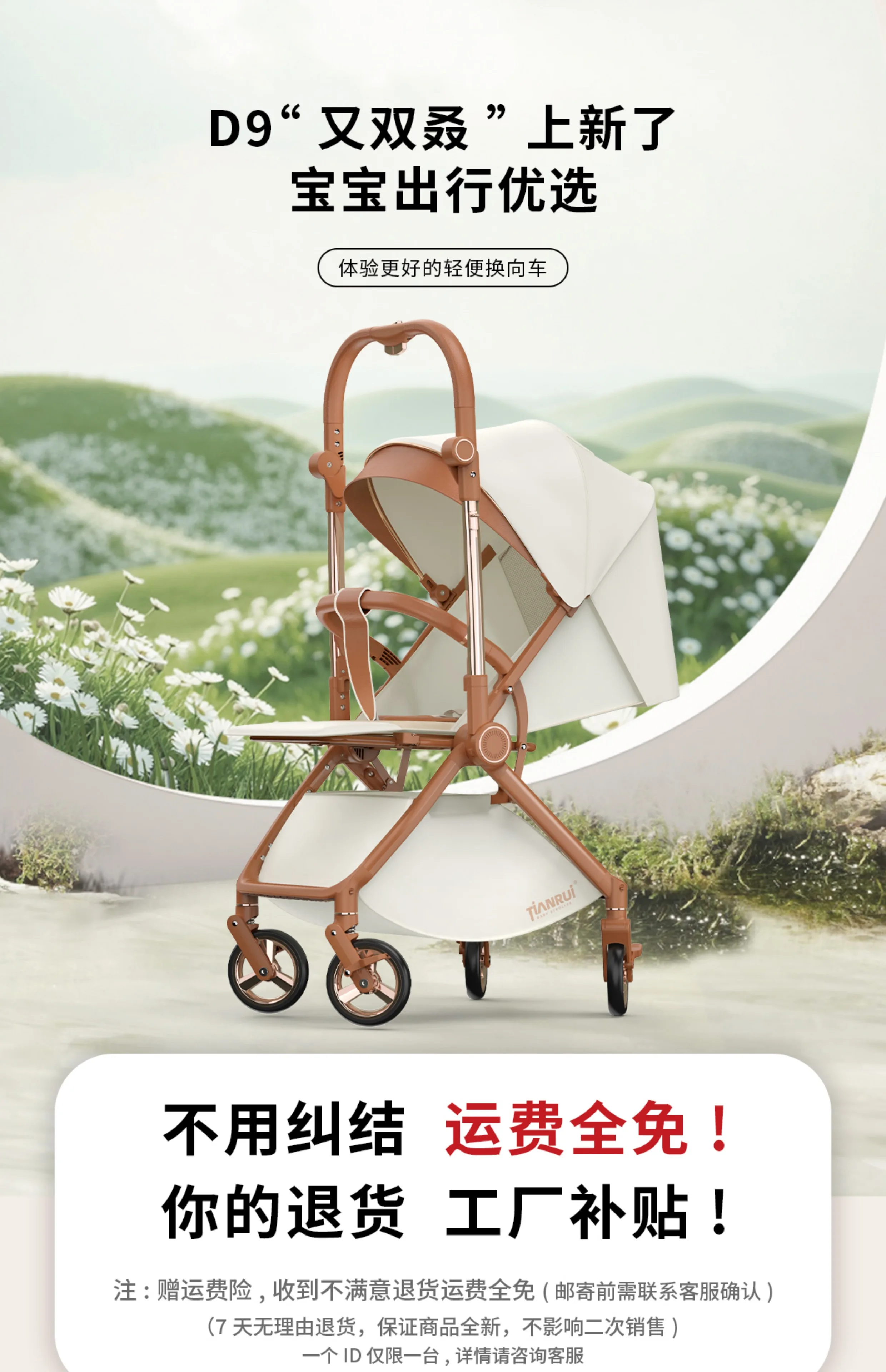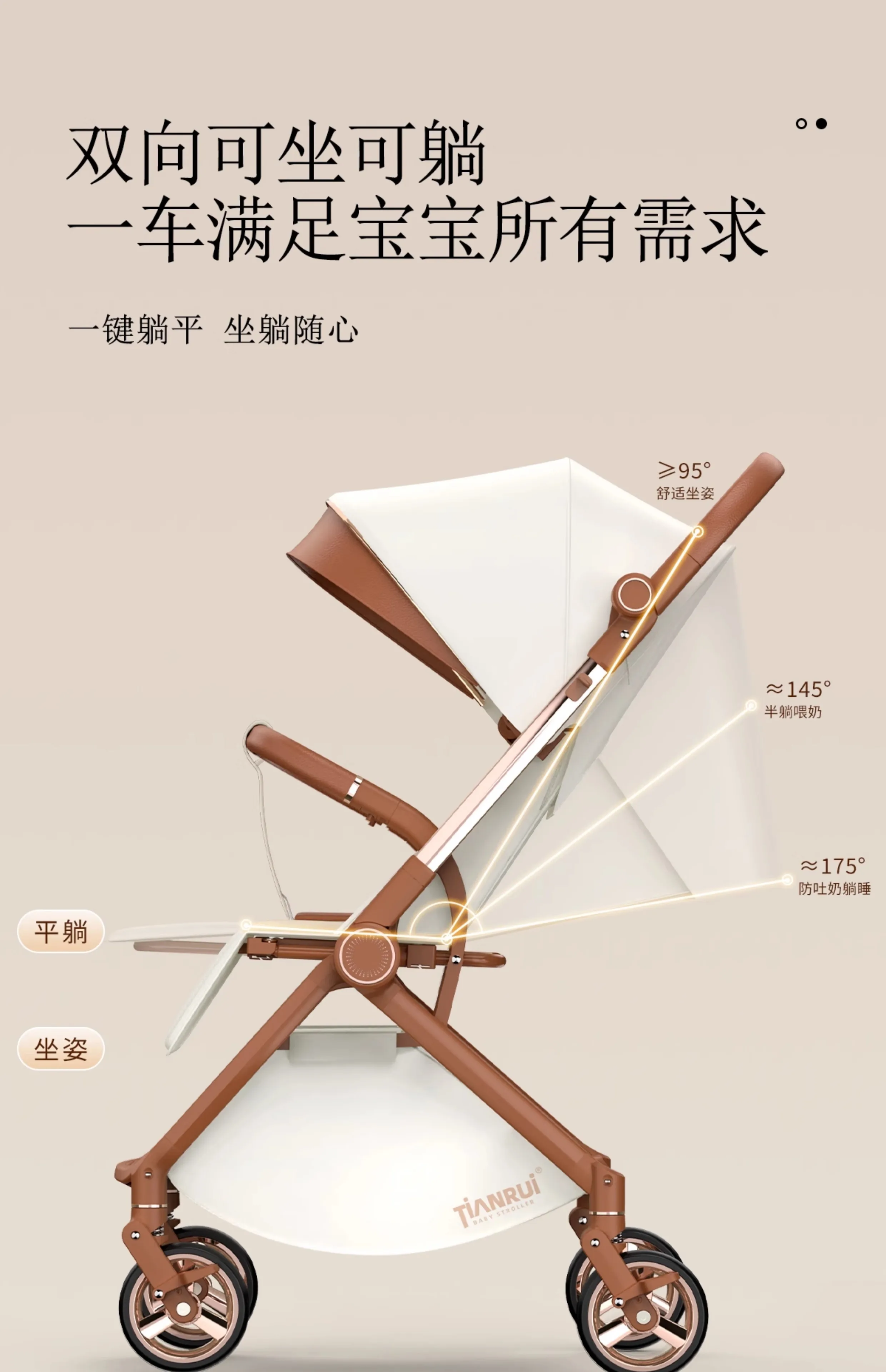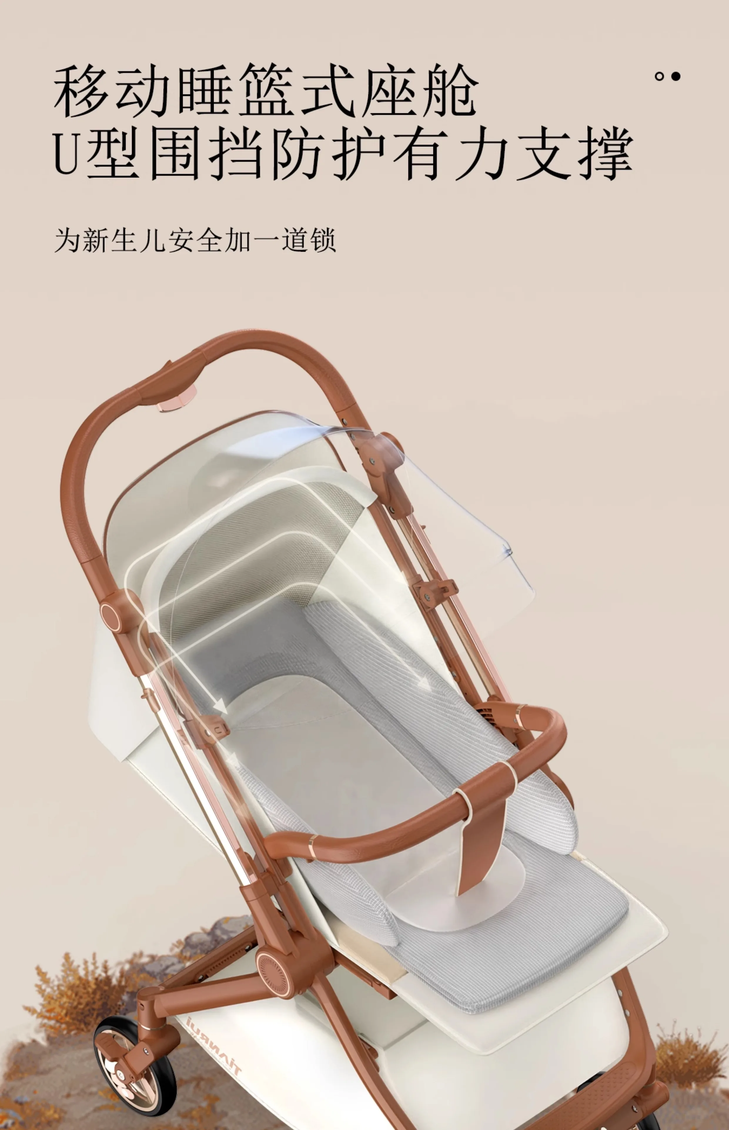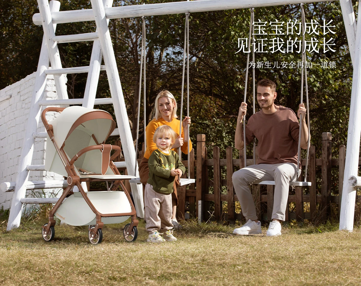 Cochecito de bebé con paisaje alto, empuje bidireccional, puede sentarse o acostarse, cochecito portátil ligero y plegable