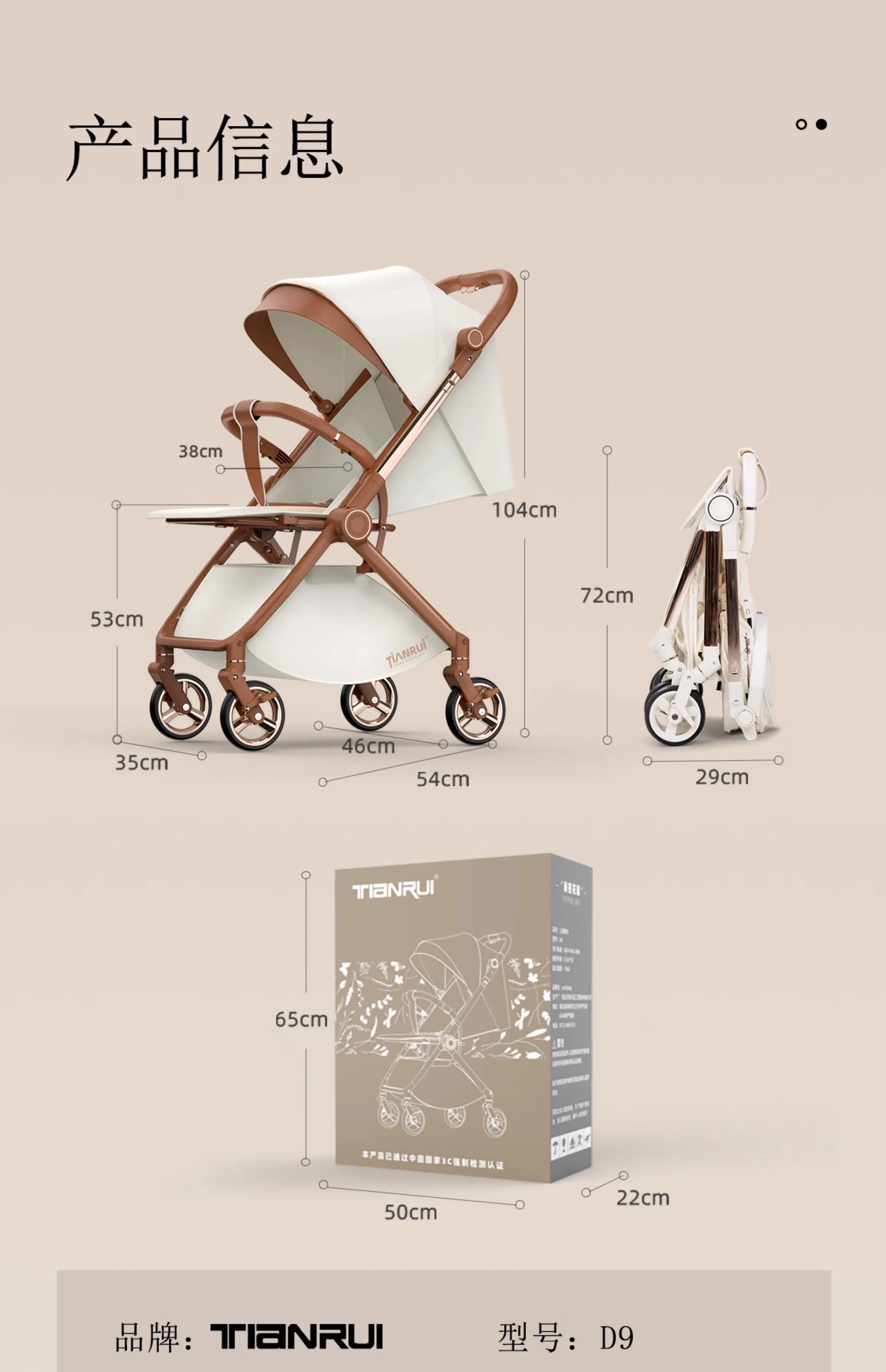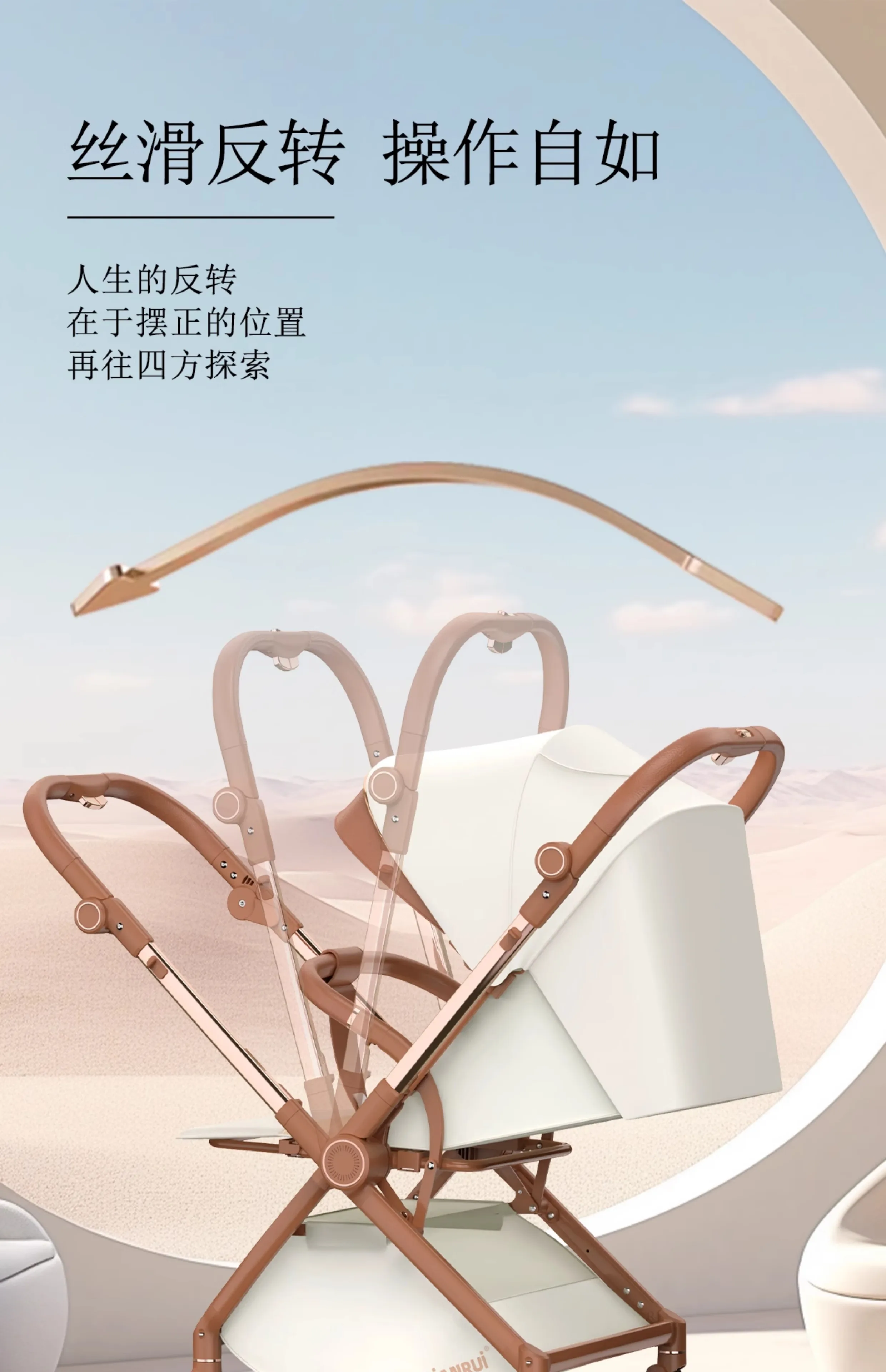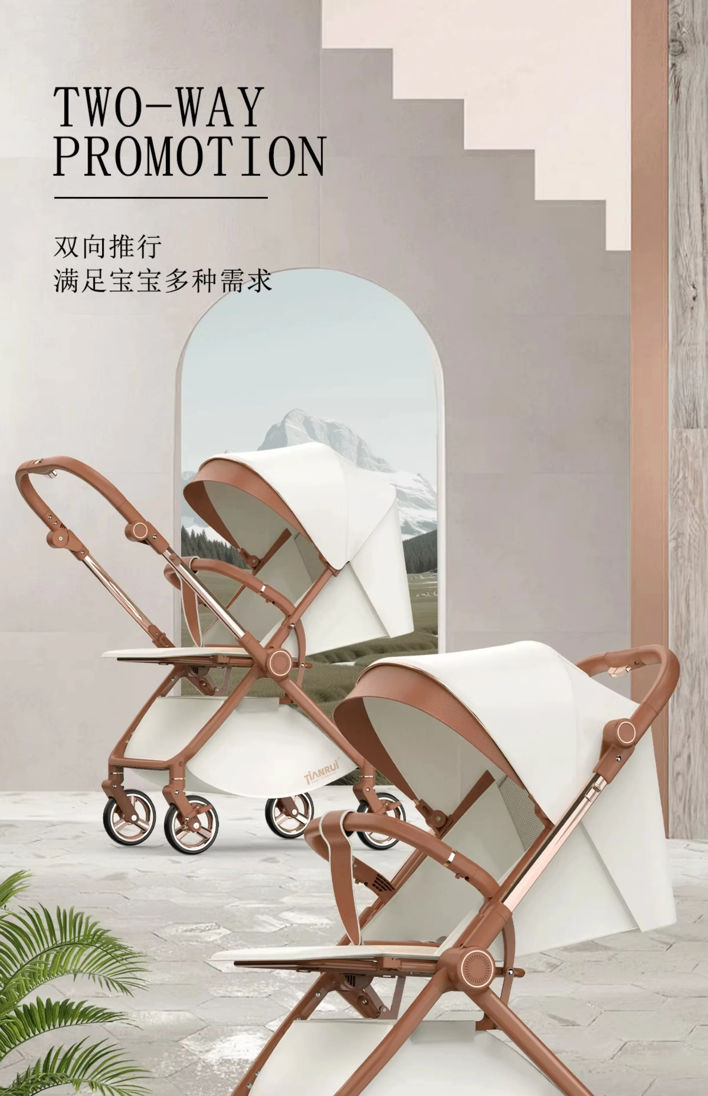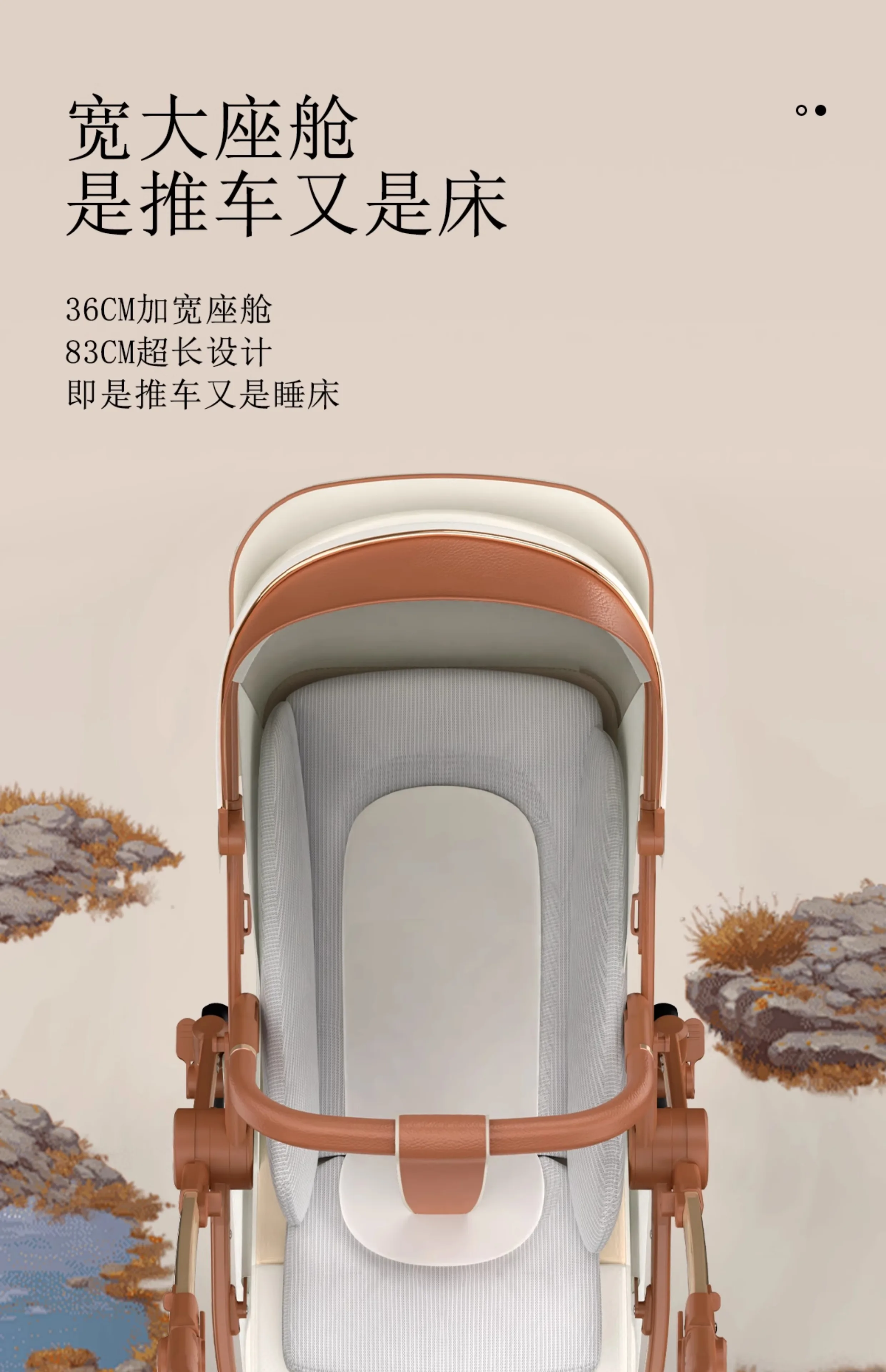 Cochecito de bebé con paisaje alto, empuje bidireccional, puede sentarse o acostarse, cochecito portátil ligero y plegable