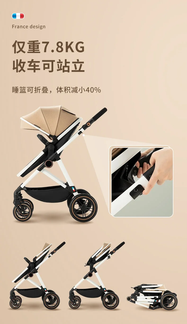 Comprar Cochecito de bebé de paisaje alto para recién nacidos, carrito de mano Bb, plegable, ligero y absorbente de golpes de dos vías