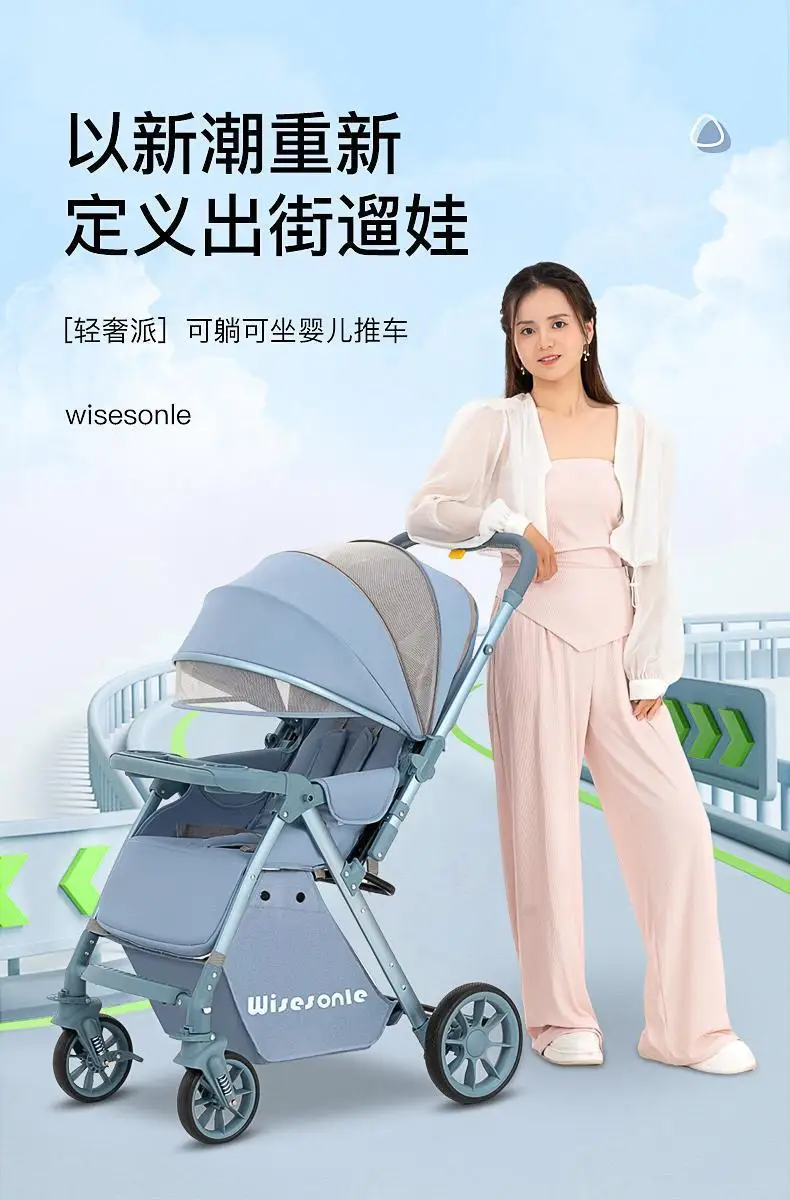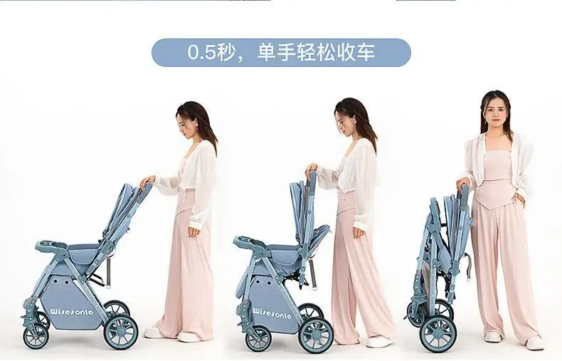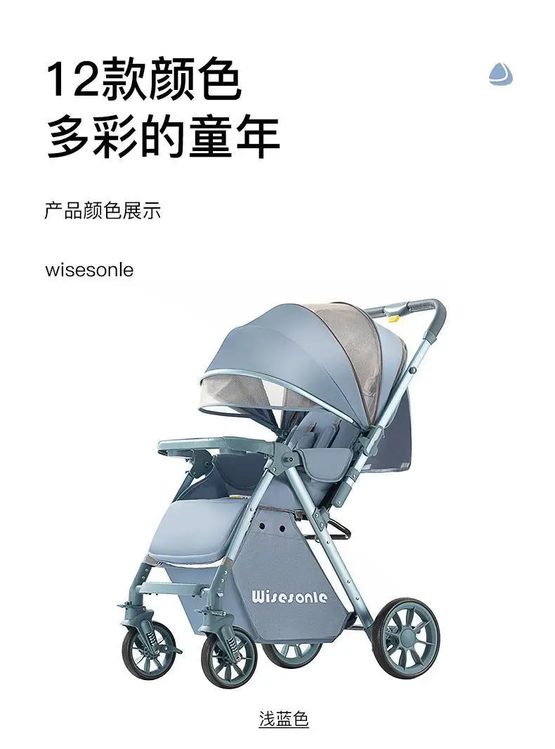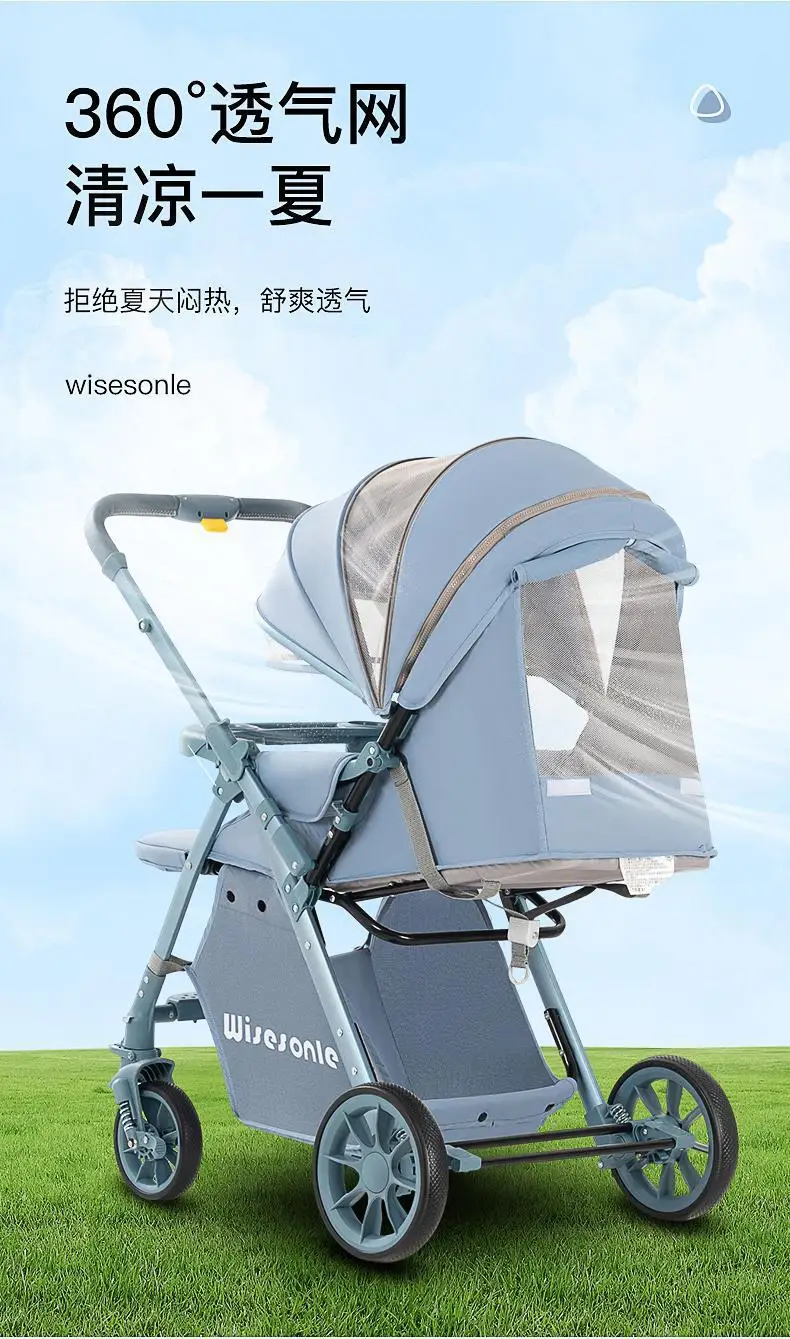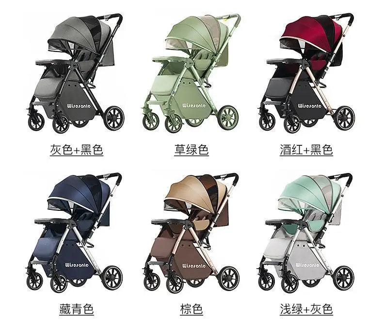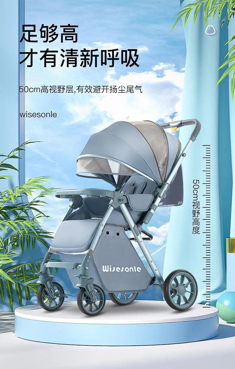 Cochecito de bebé de paisaje alto, puede sentarse o acostarse, cochecito de bebé plegable ligero