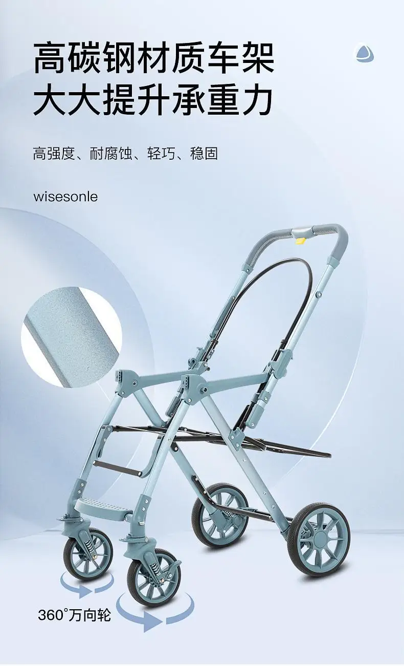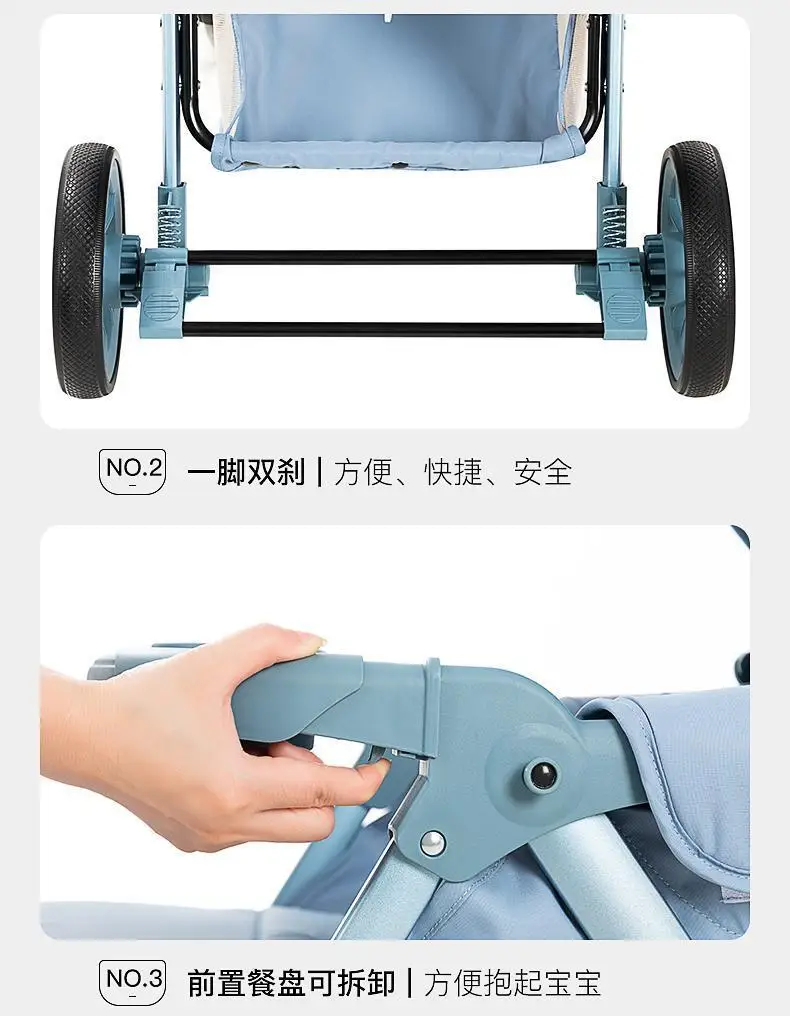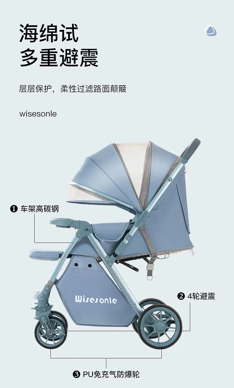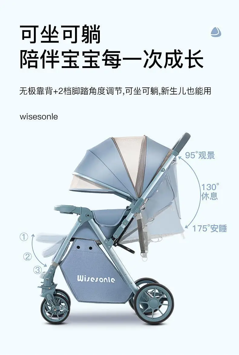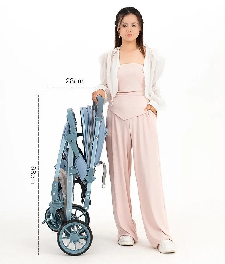 Cochecito de bebé de paisaje alto, puede sentarse o acostarse, cochecito de bebé plegable ligero