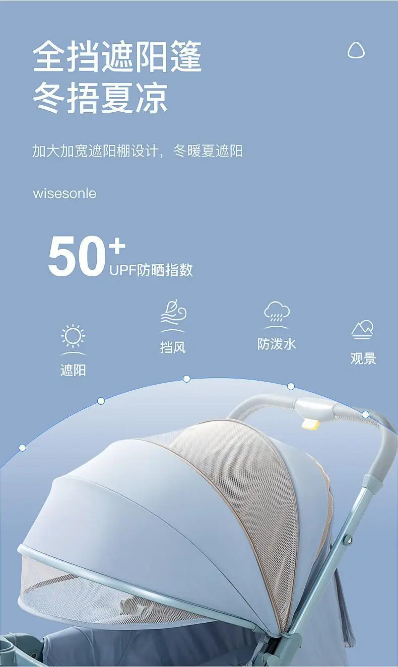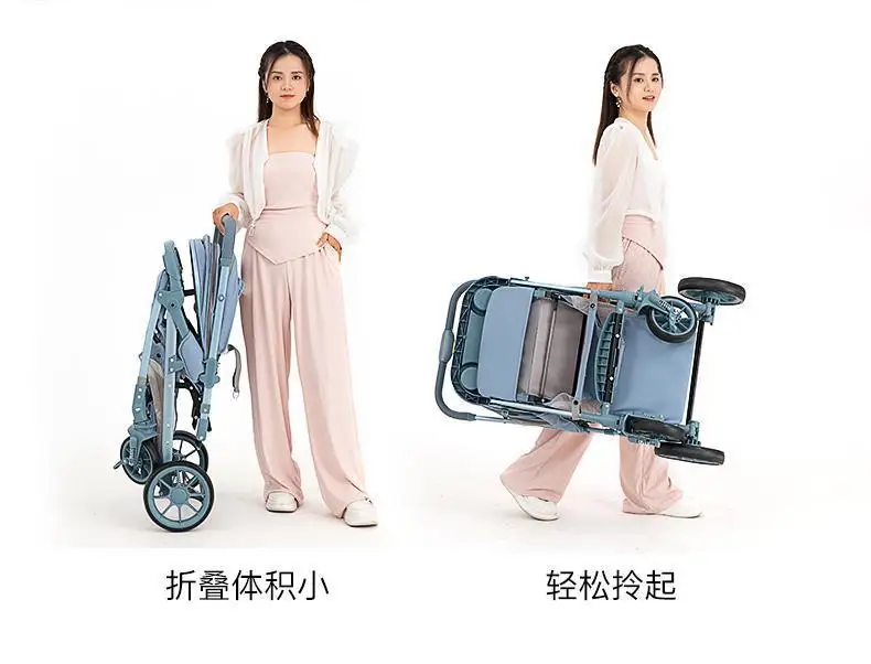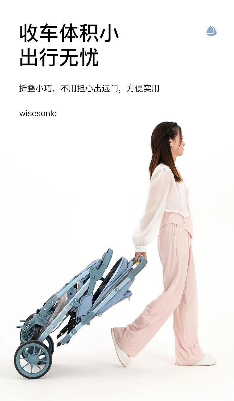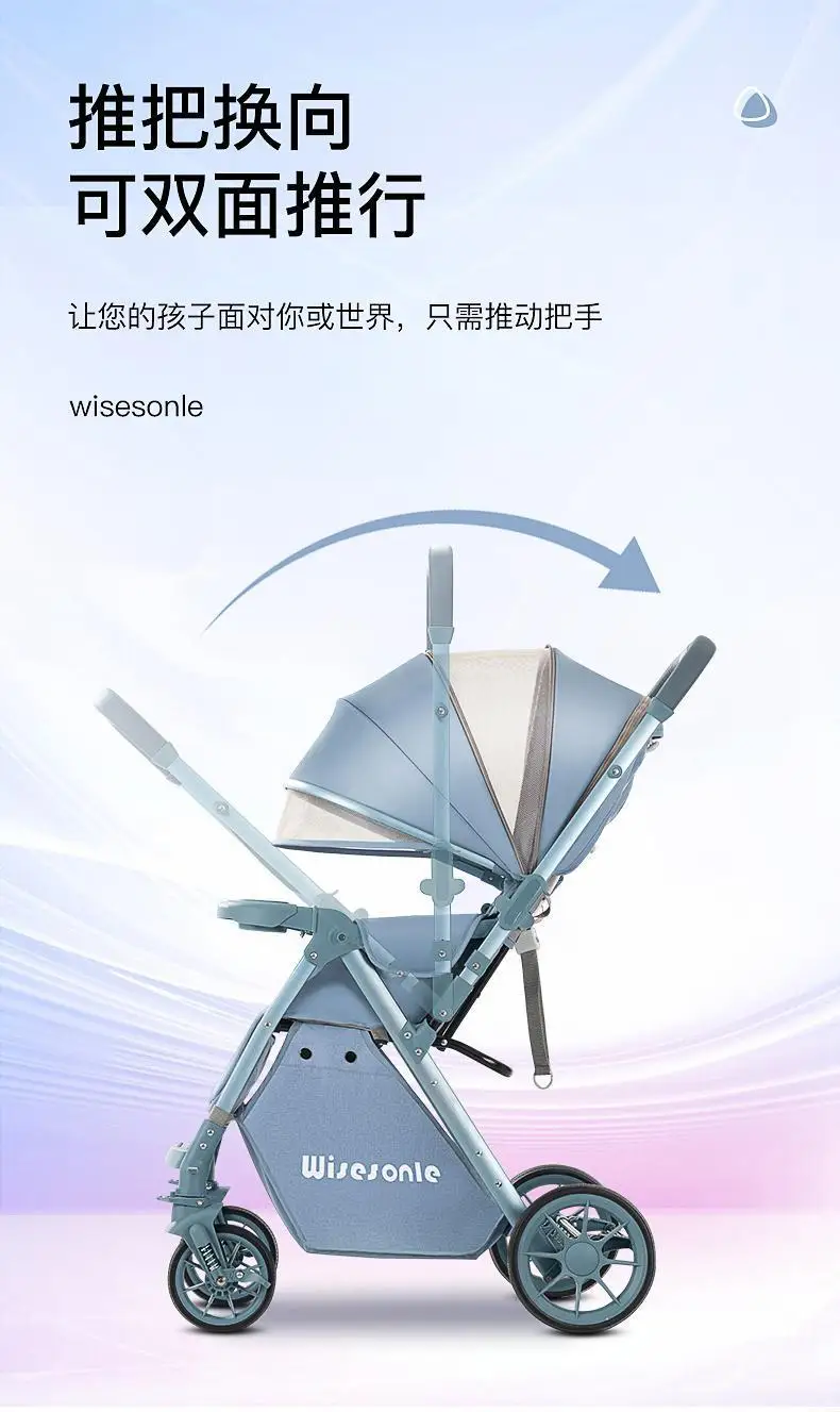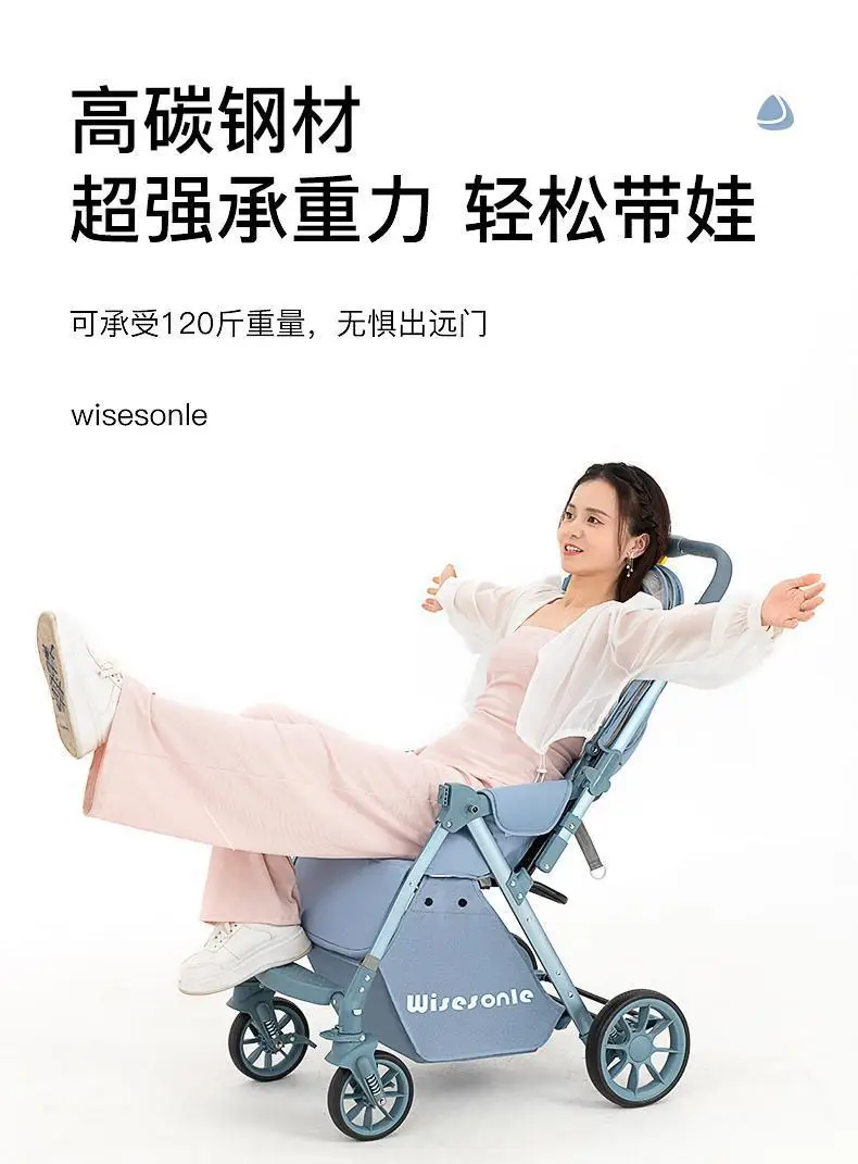 Cochecito de bebé de paisaje alto, puede sentarse o acostarse, cochecito de bebé plegable ligero