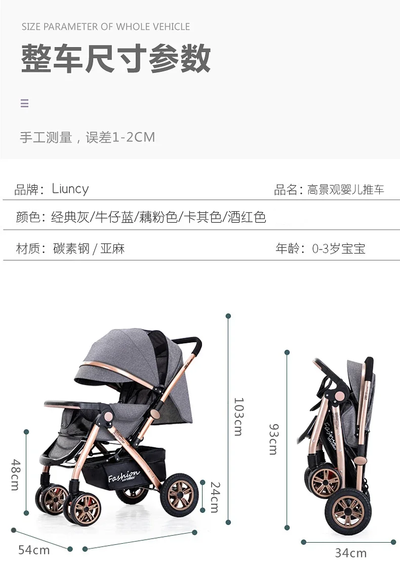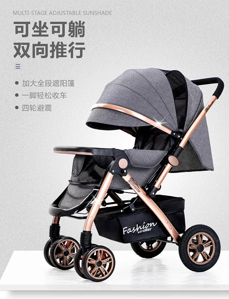 Comprar El cochecito de bebé de paisaje alto puede sentarse o acostarse, ligero, plegable en ambos direcciones, amortiguador para recién nacidos
