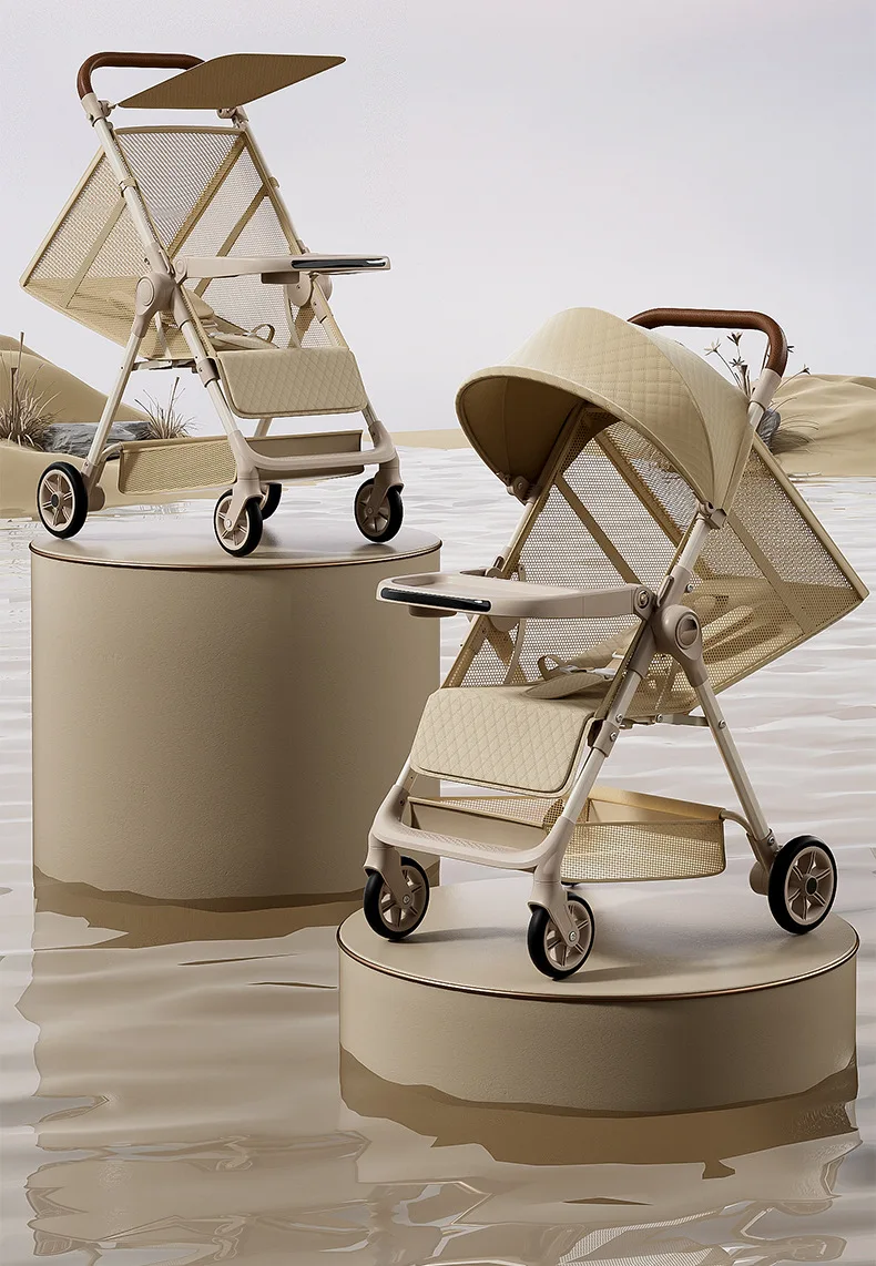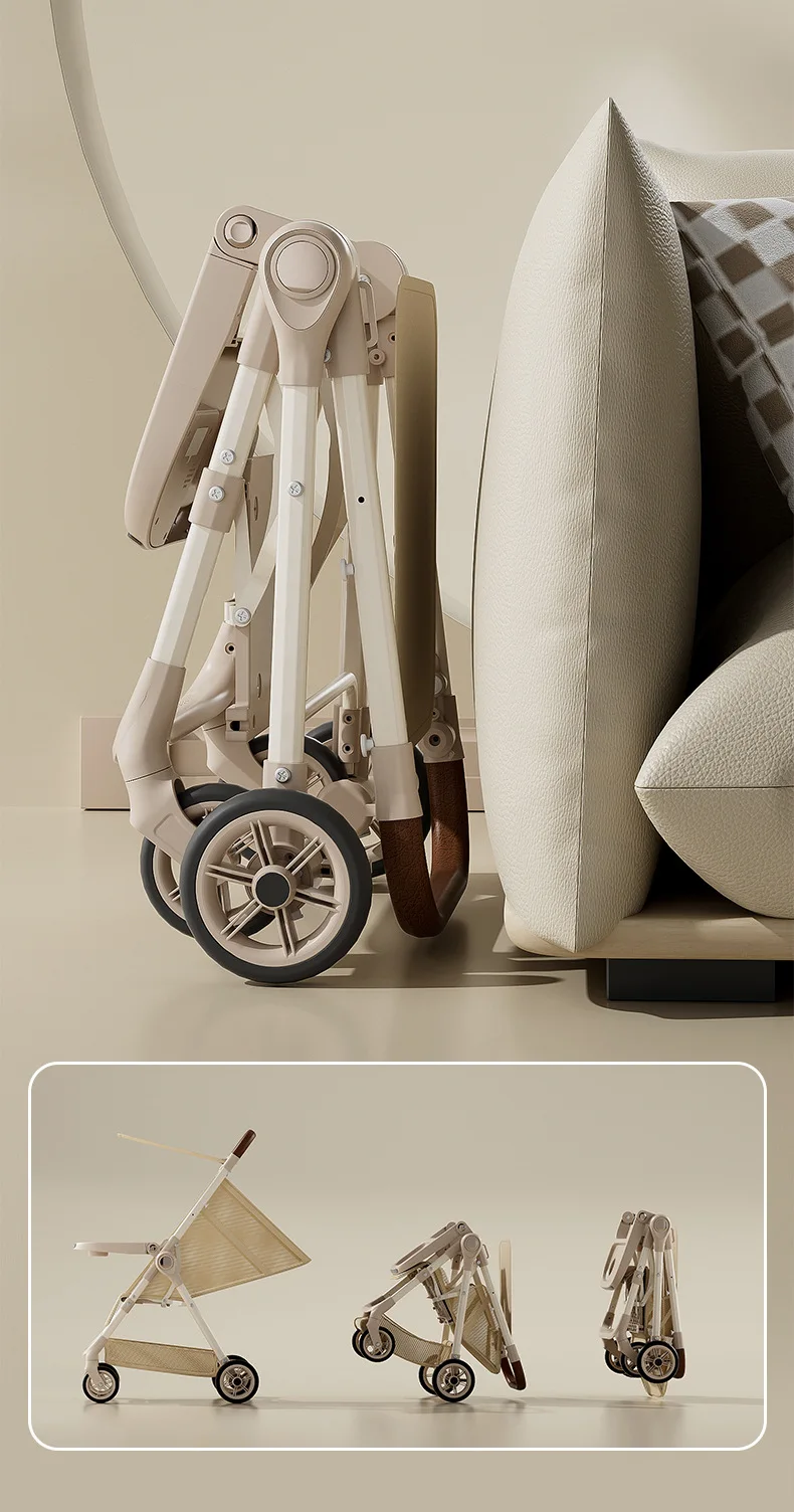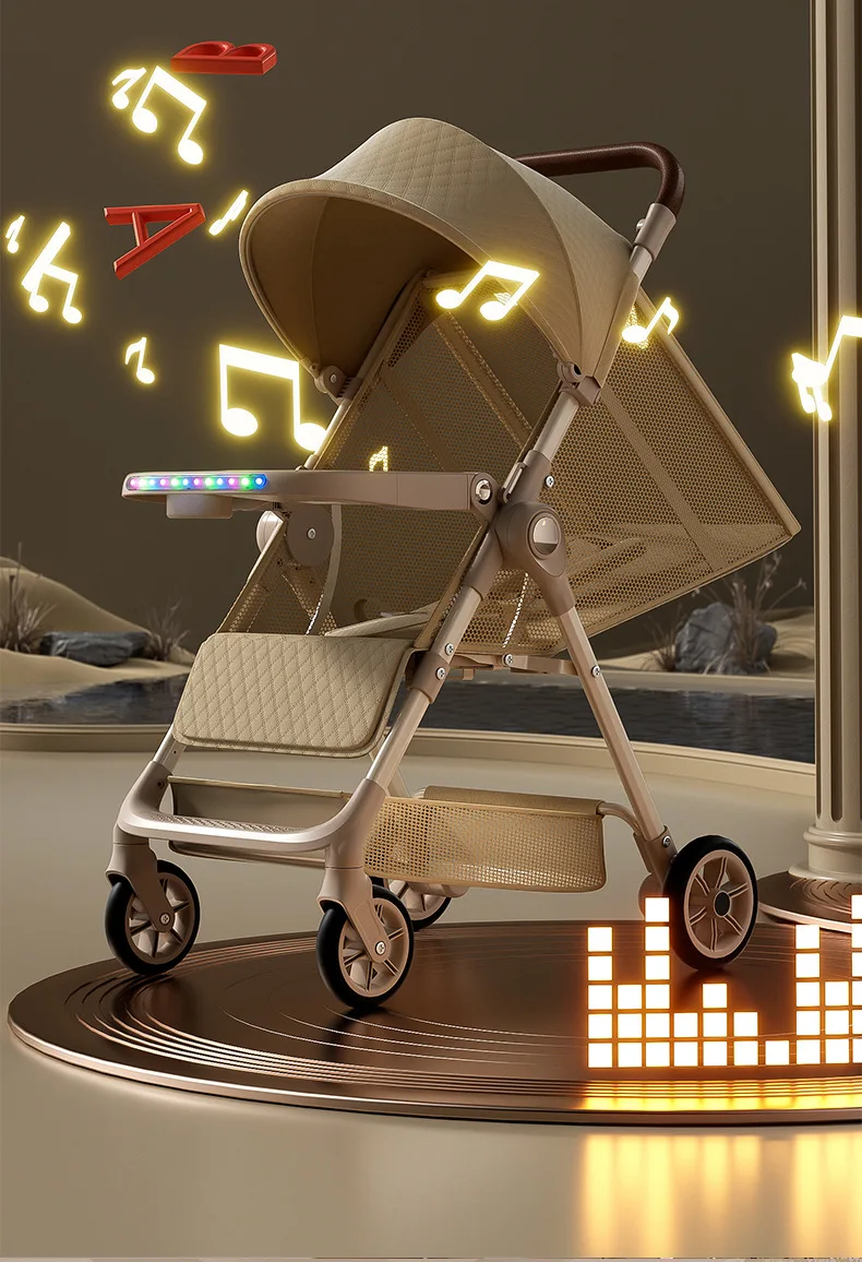 Cochecito de bebé de paisaje alto, talismán portátil para caminar, puede sentarse, tumbarse, coche de bolsillo plegable para niños, seguro y cómodo