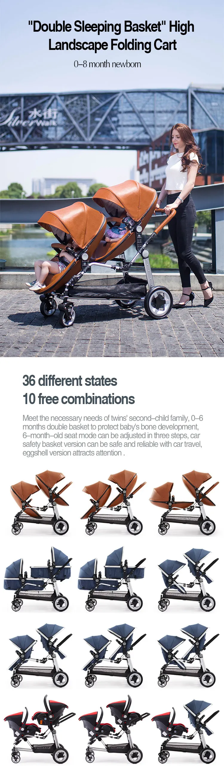 Cochecito de bebé plegable 2 en 1, cochecito de bebé con gemelos separables, cochecito de bebé portátil, características, ruedas de EVA, venta