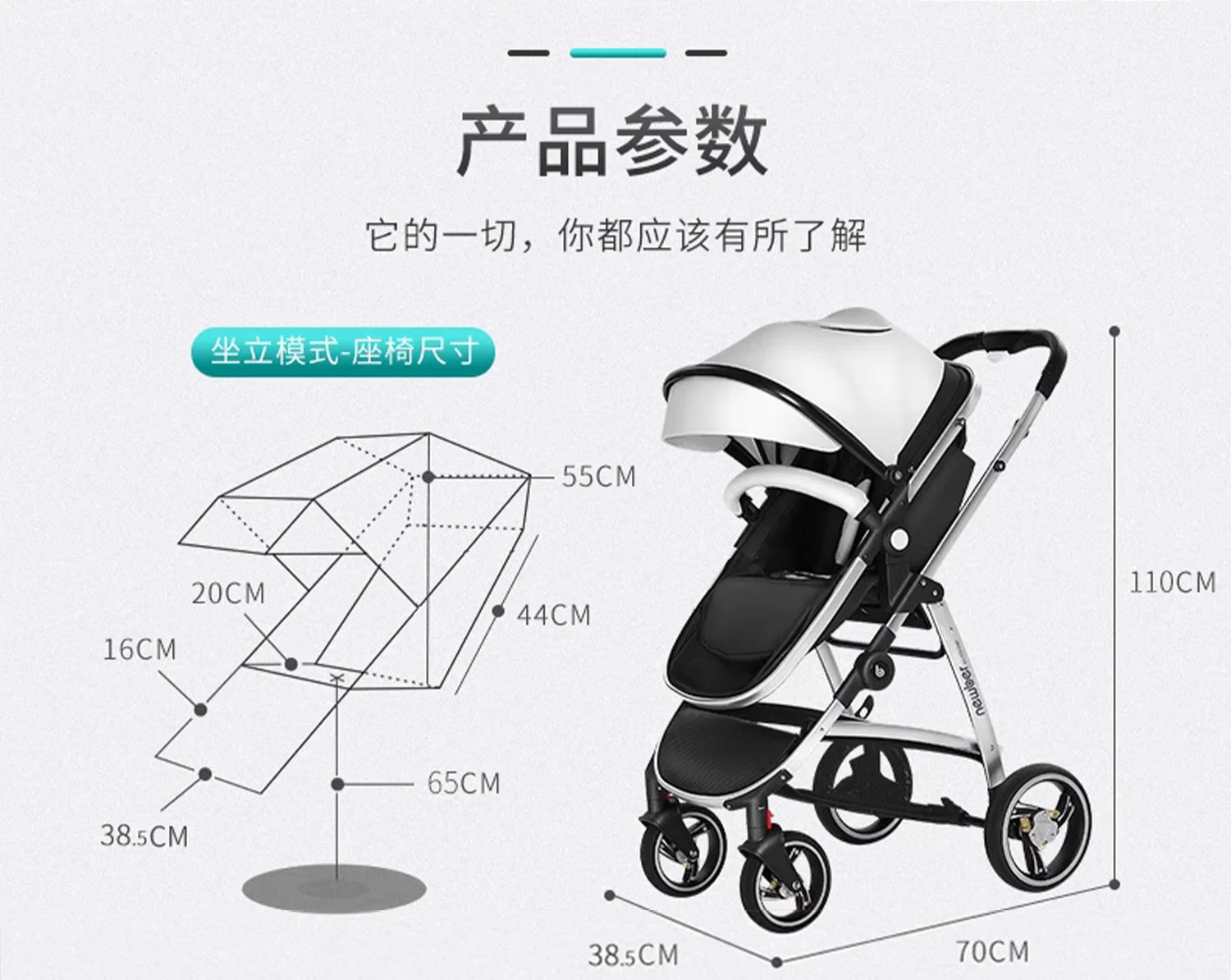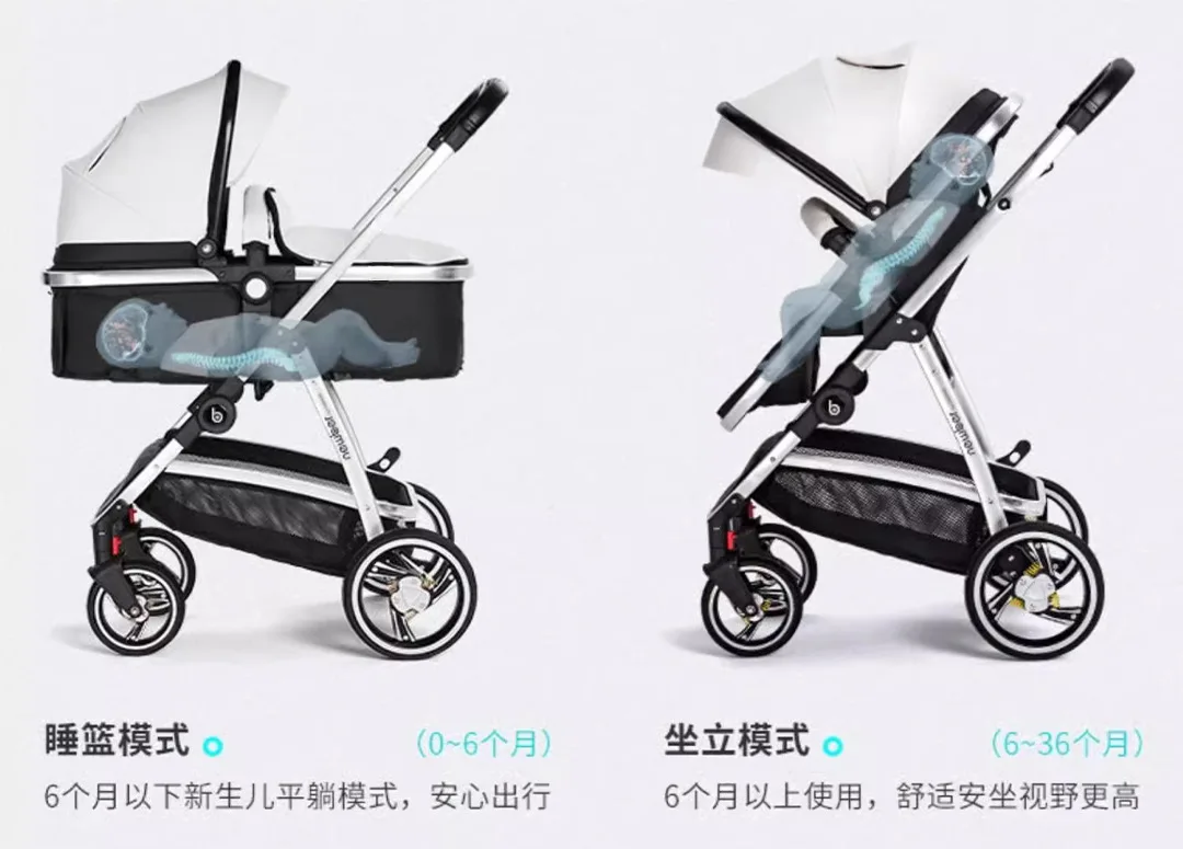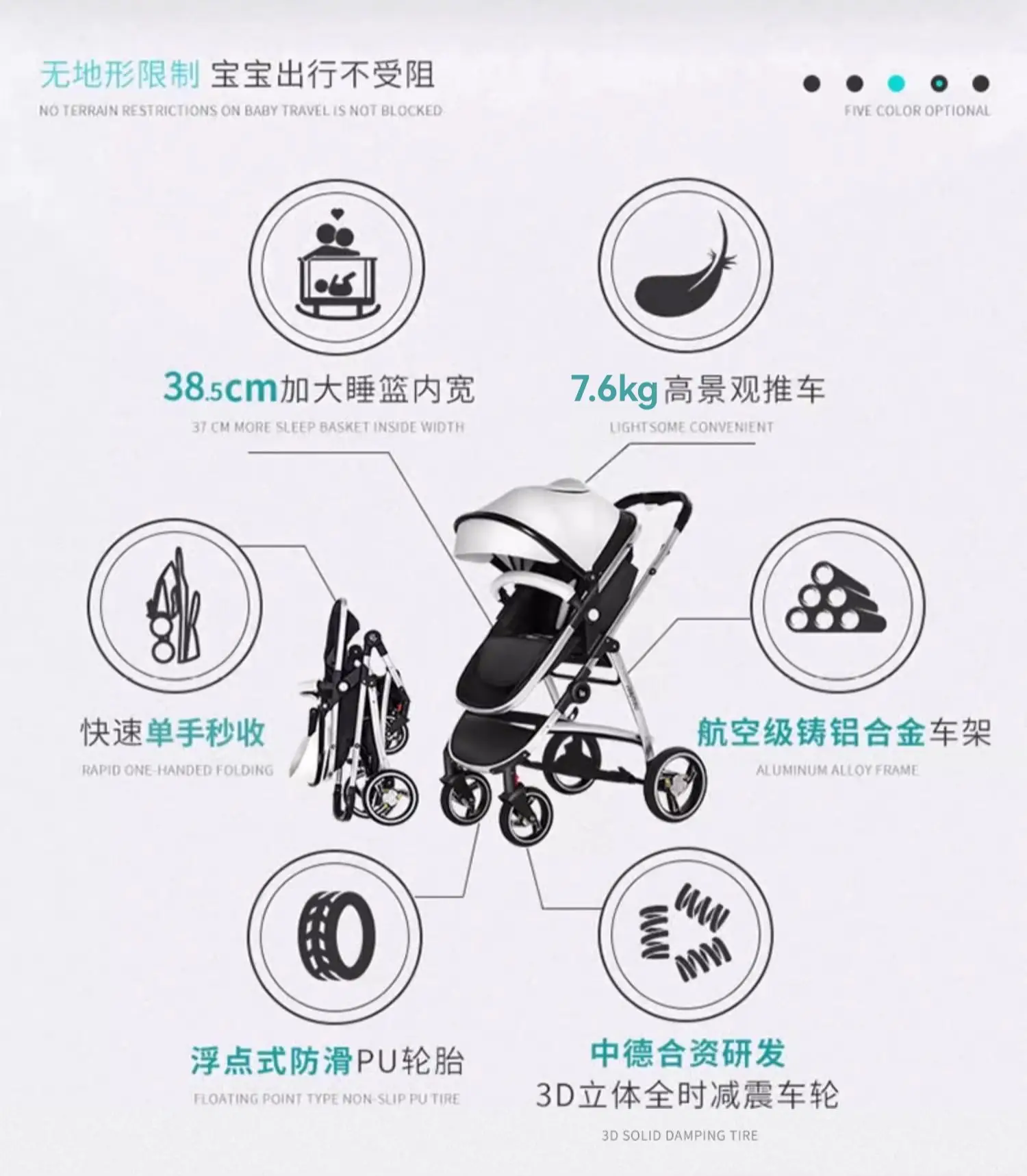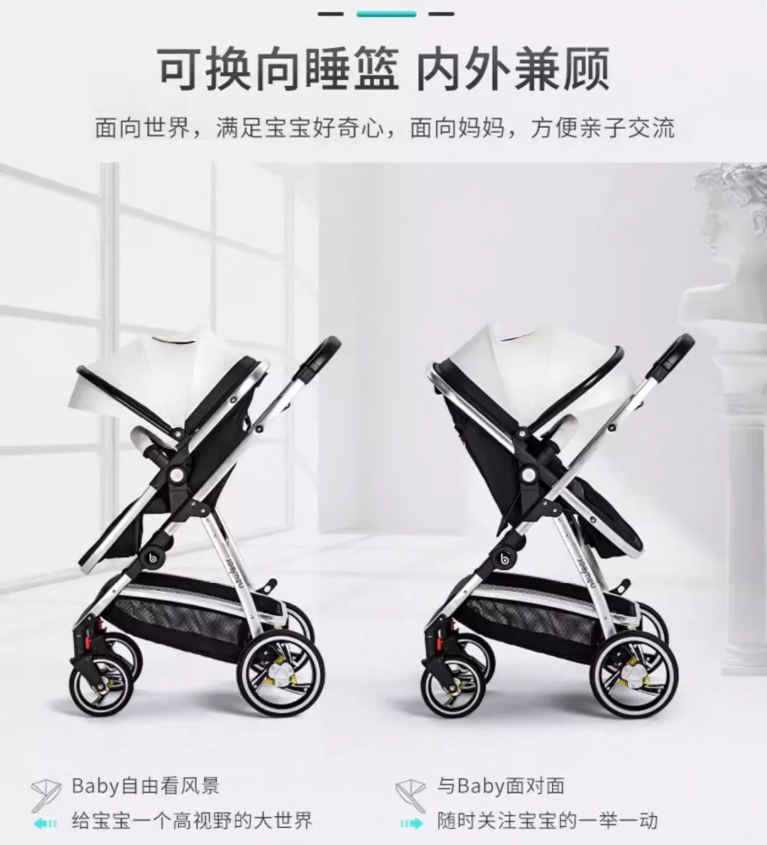 Comprar Cochecito de bebé plegable con un solo botón, cochecito portátil ligero convertible para sentarse y perder, cochecito de bebé con Moisés de alta vista