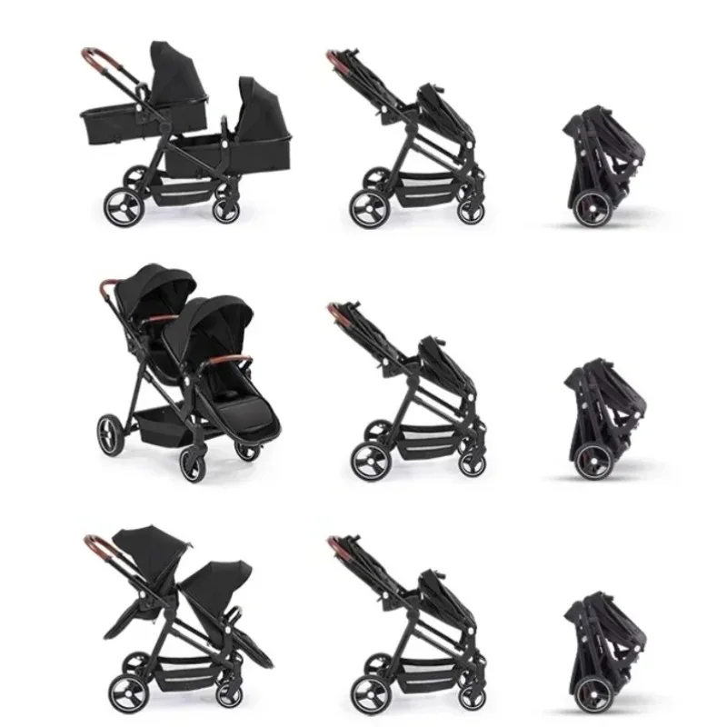 Comprar Cochecito de bebé plegable para gemelos, cochecito doble para sentarse y acostarse, amortiguador, segunda vista alta, cochecito para niños