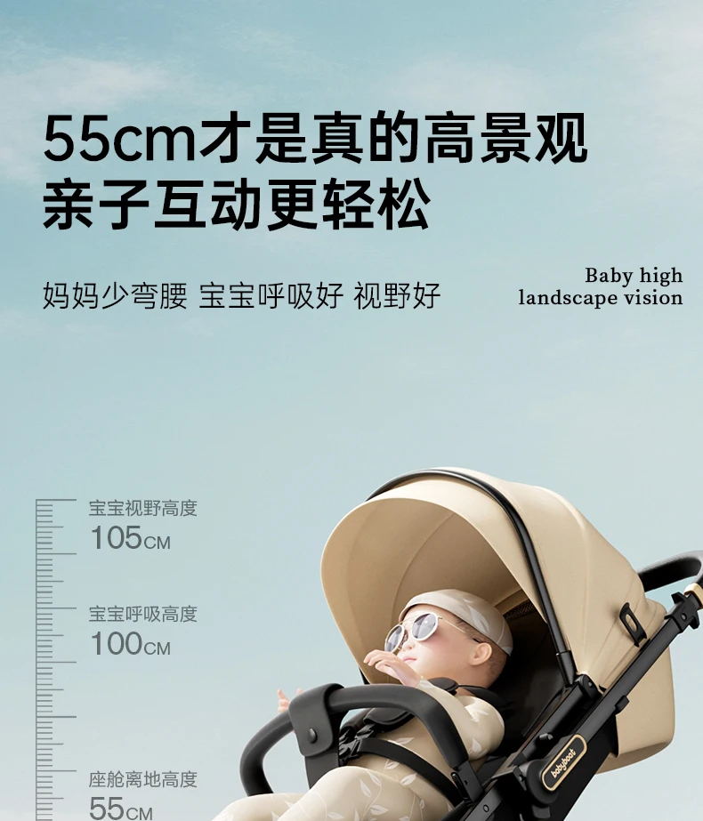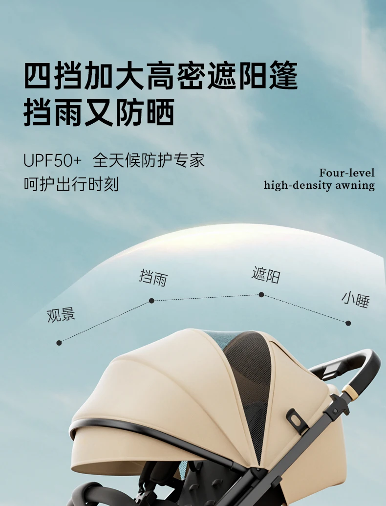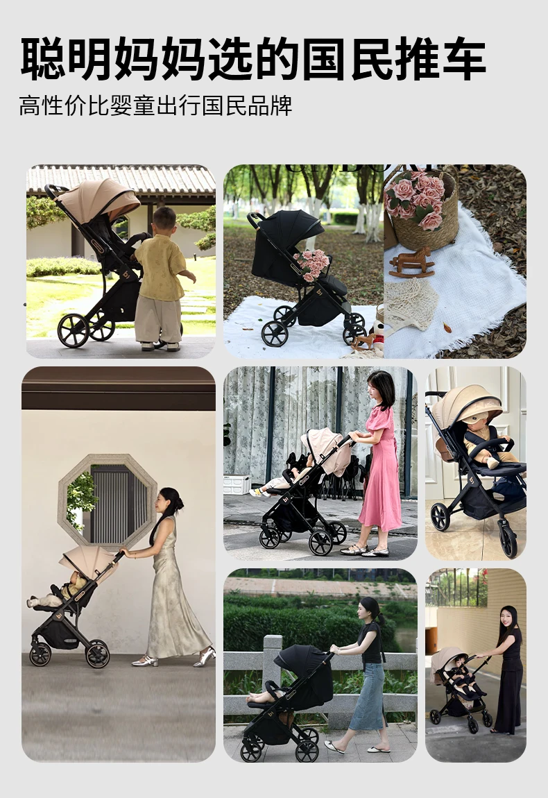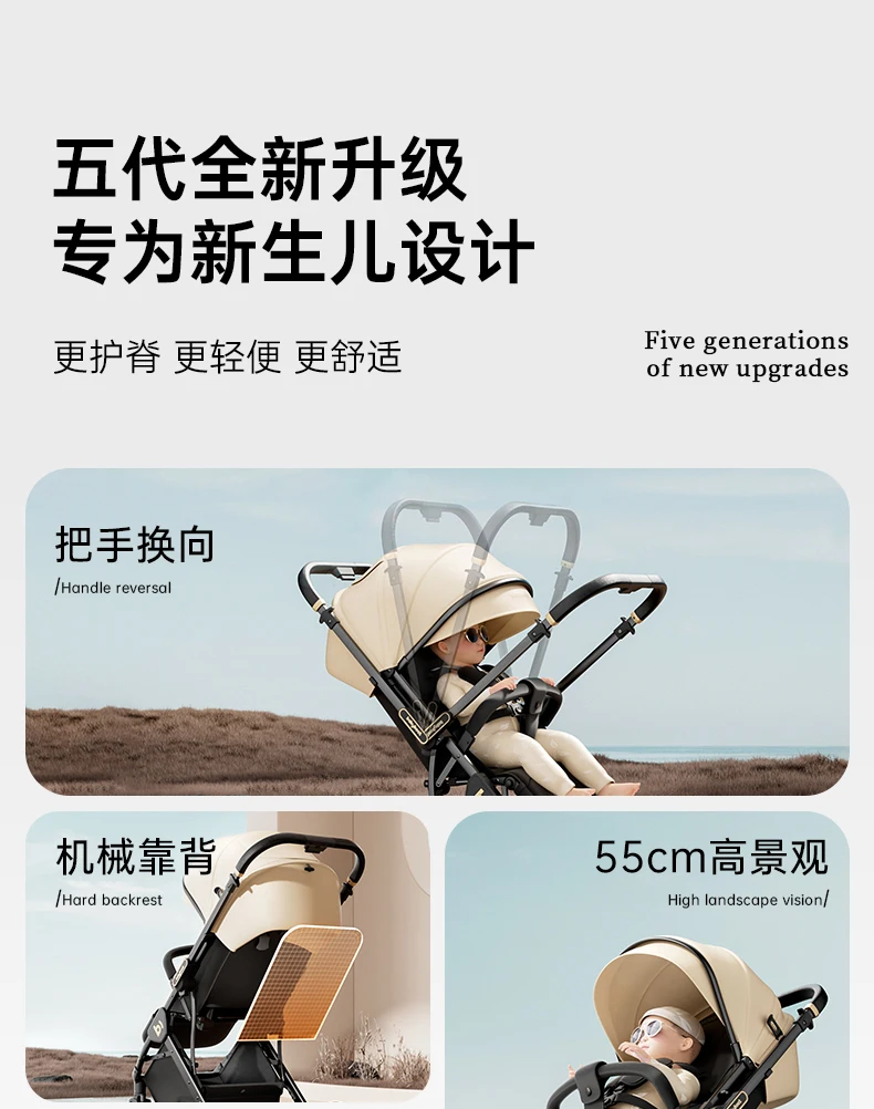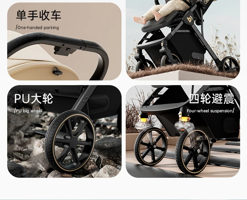 Cochecito de bebé, plegable ligero bidireccional, nuevo bebé sentado y tumbado, cochecito de paisaje alto