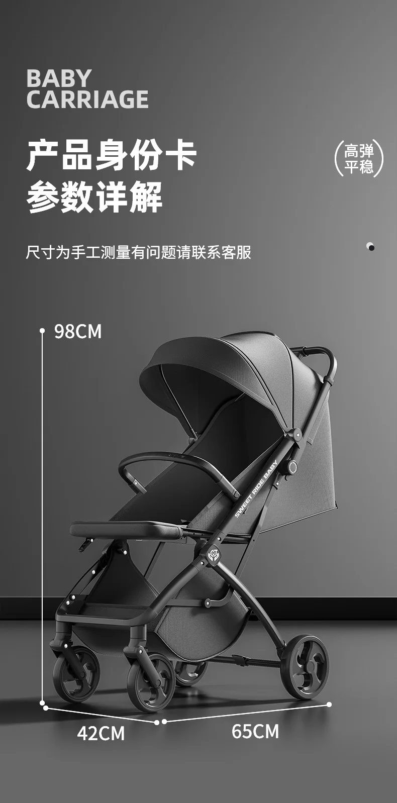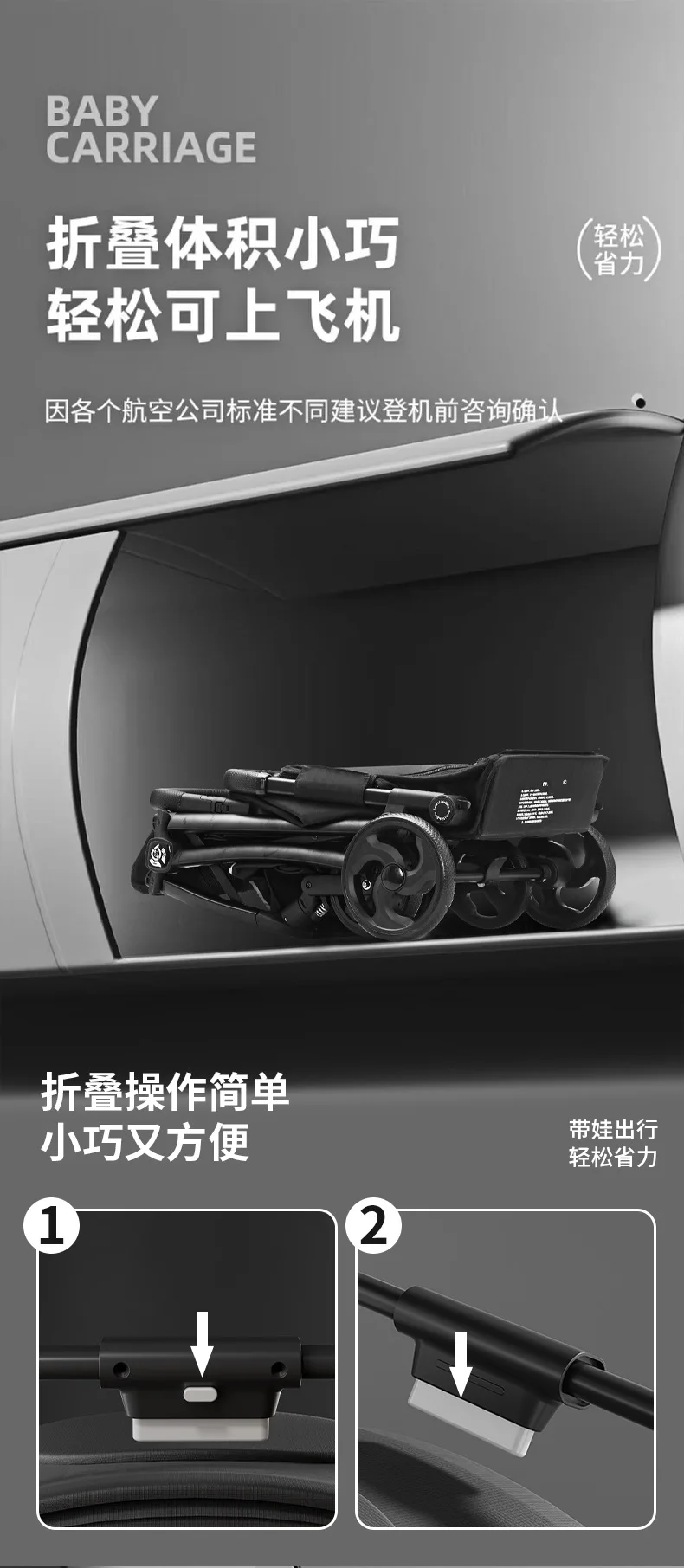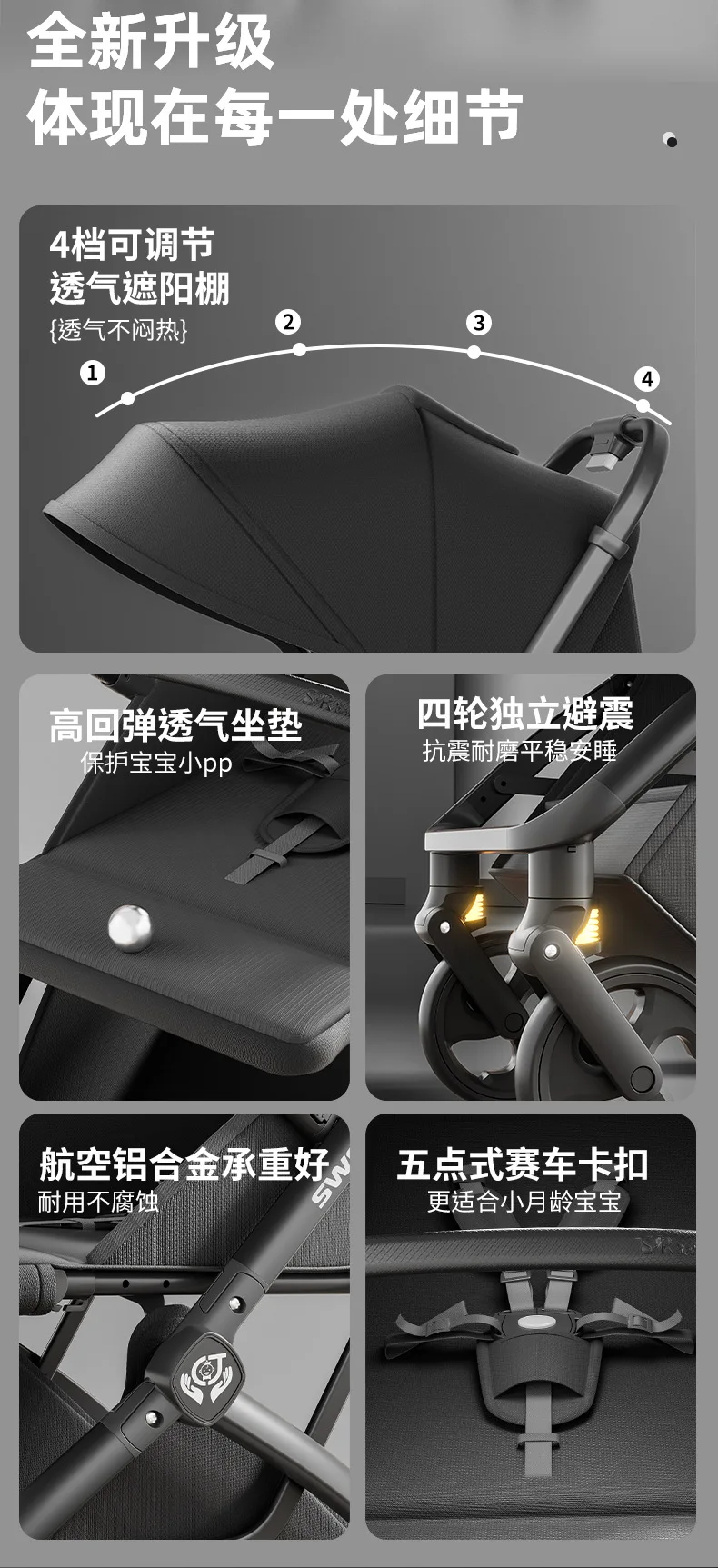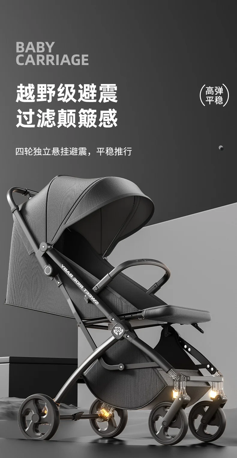 Cochecito de bebé plegable ligero, cochecito de cuatro ruedas para absorción de impactos, cochecito de bebé de alto paisaje para recién nacidos