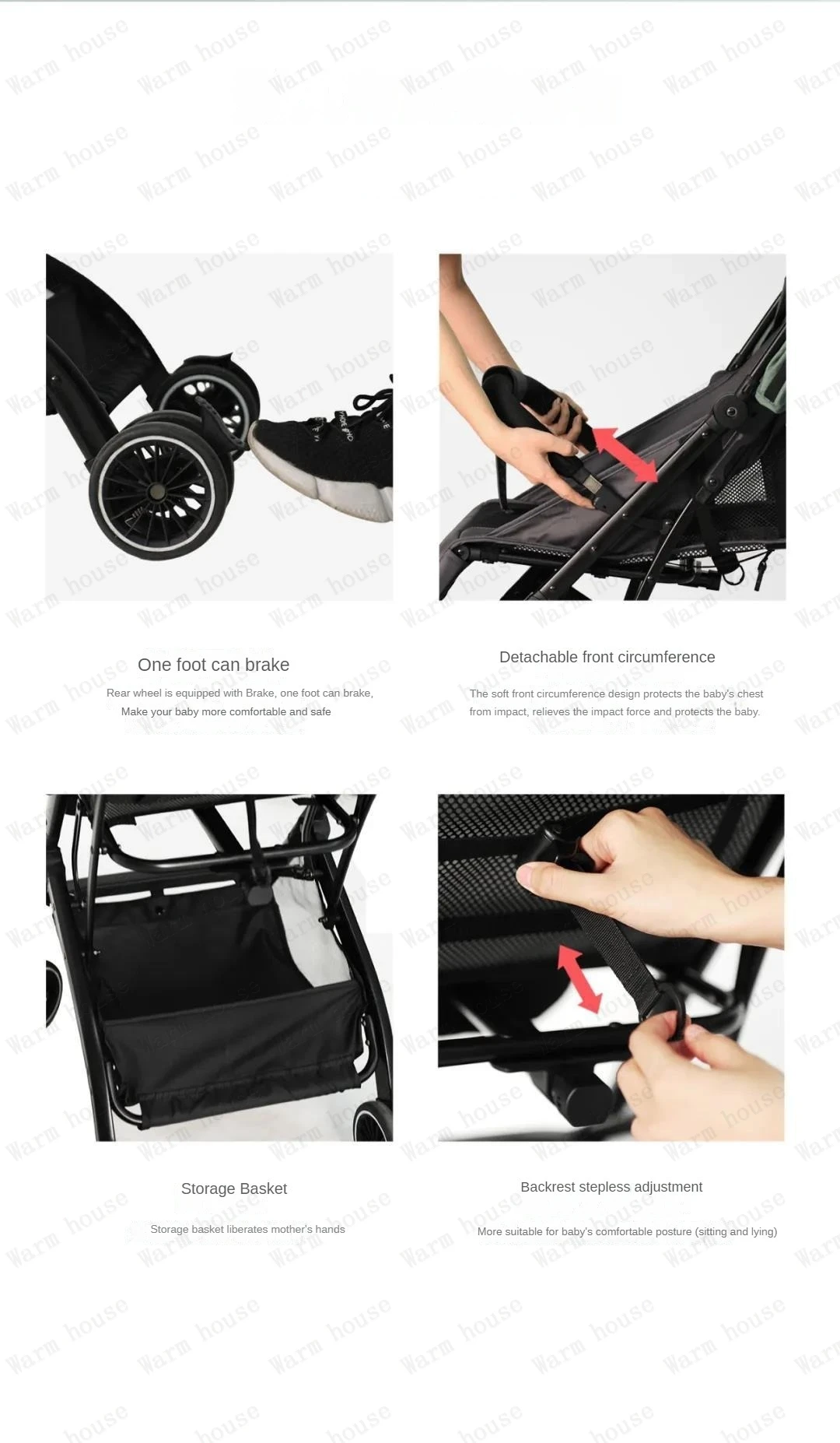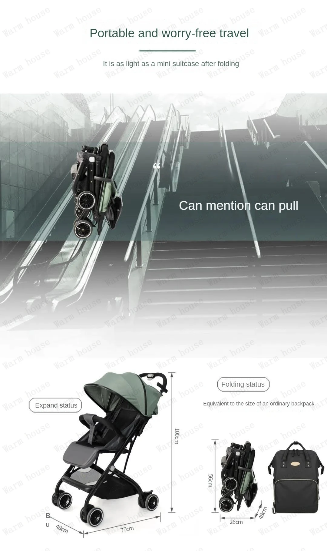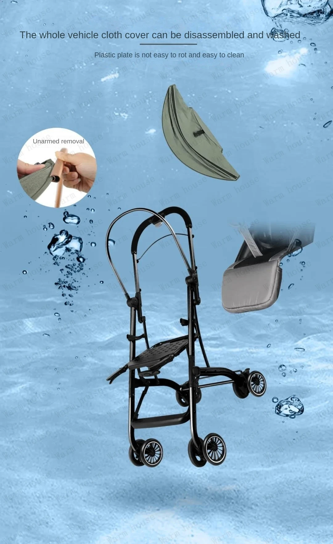 Cochecito de bebé plegable portátil, carrito multifuncional para niños, extraíble y lavable, ligero, de cuatro ruedas