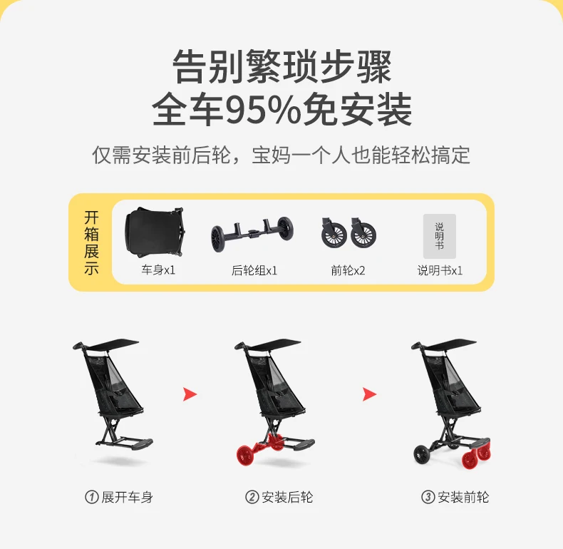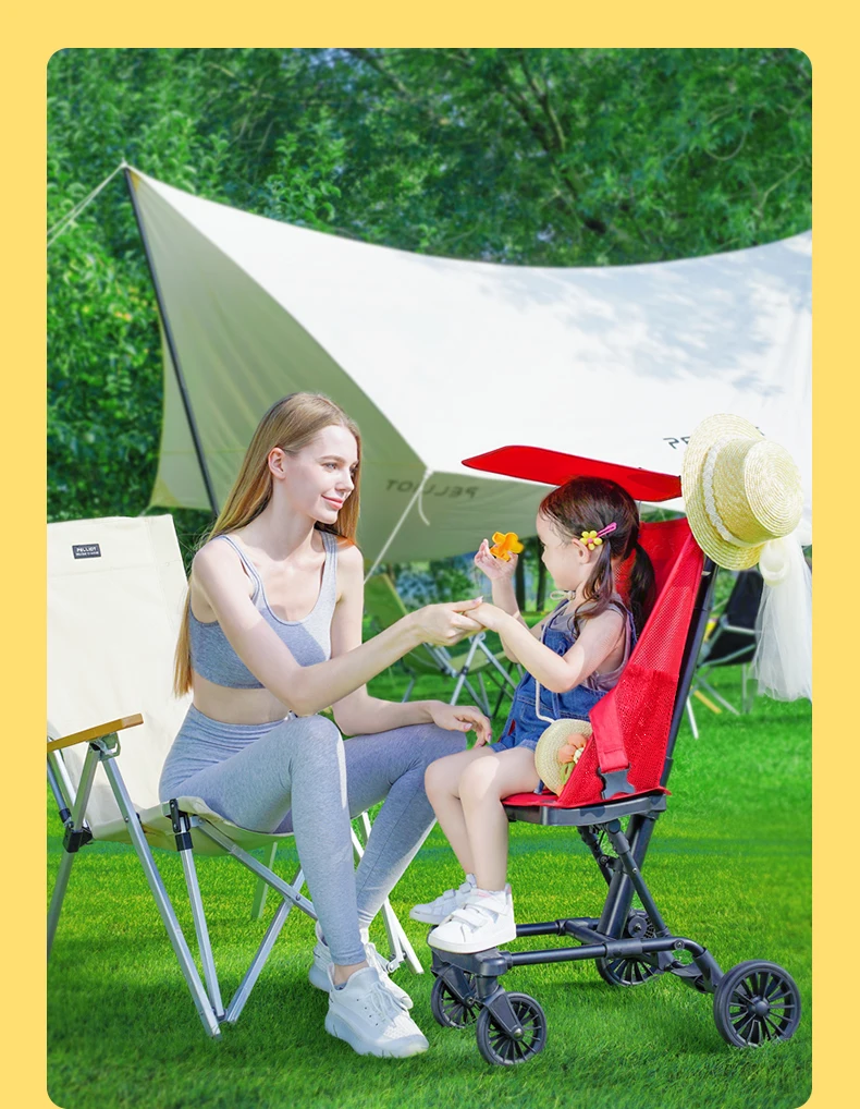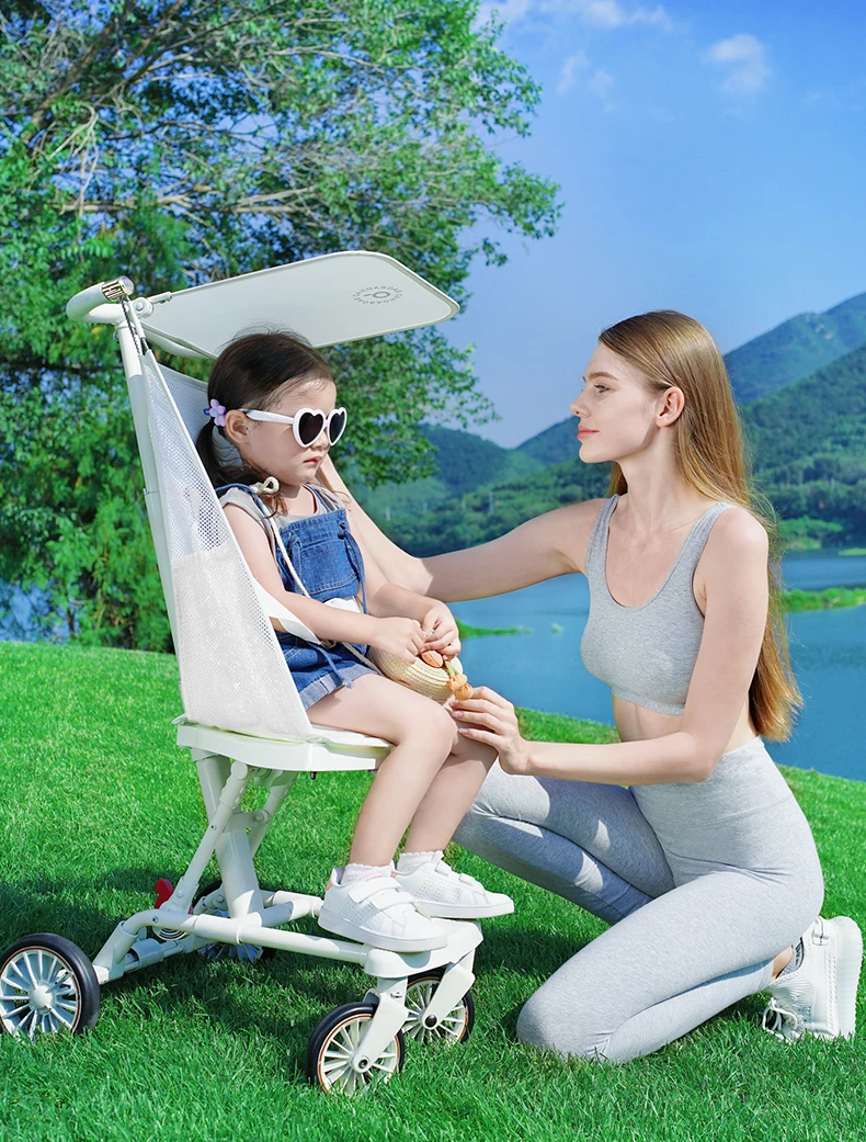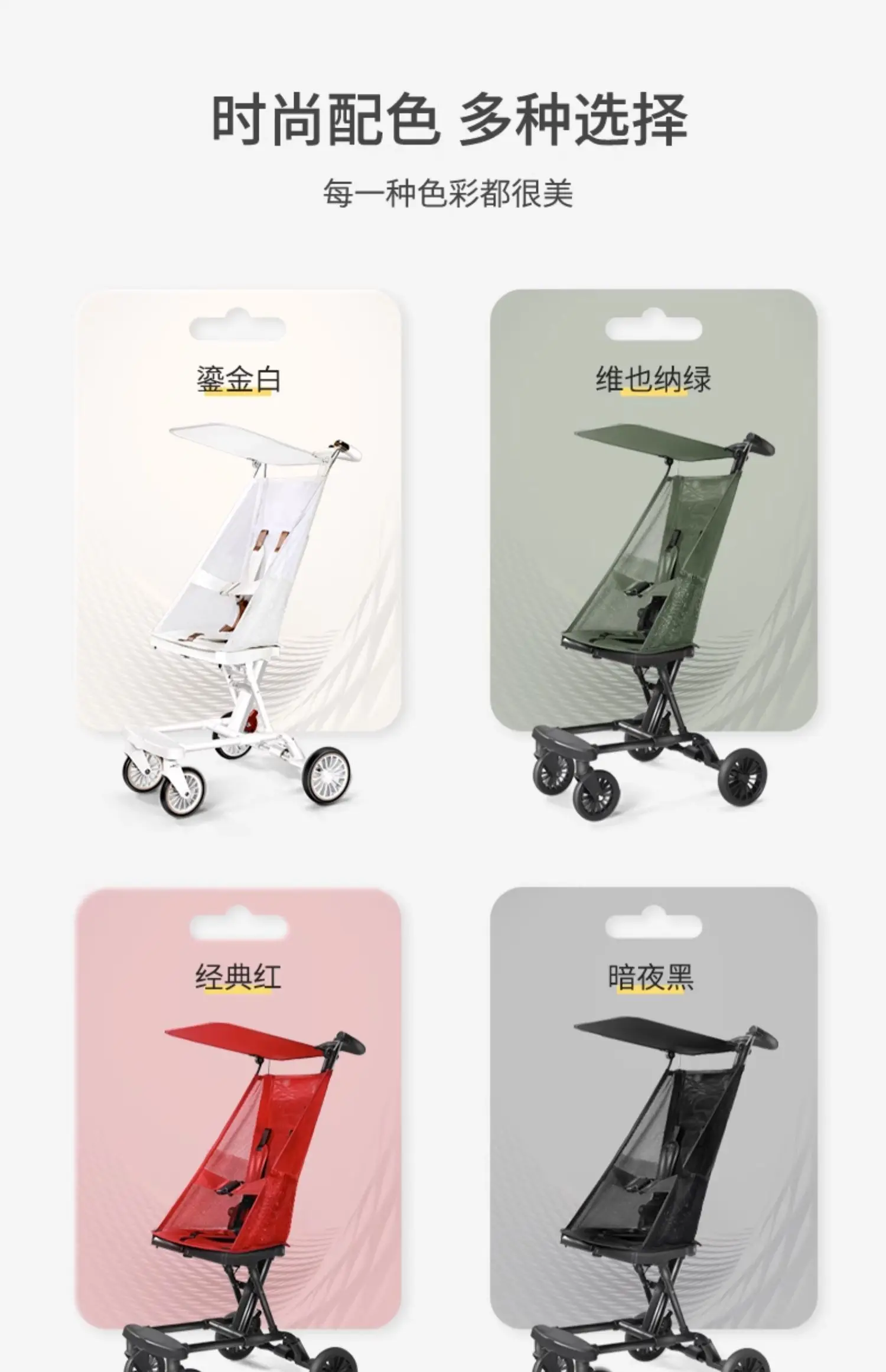 Cochecito de bebé plegable portátil, paraguas de viaje, antimedias, 4 ruedas, compacto para embarque de avión, asiento transpirable