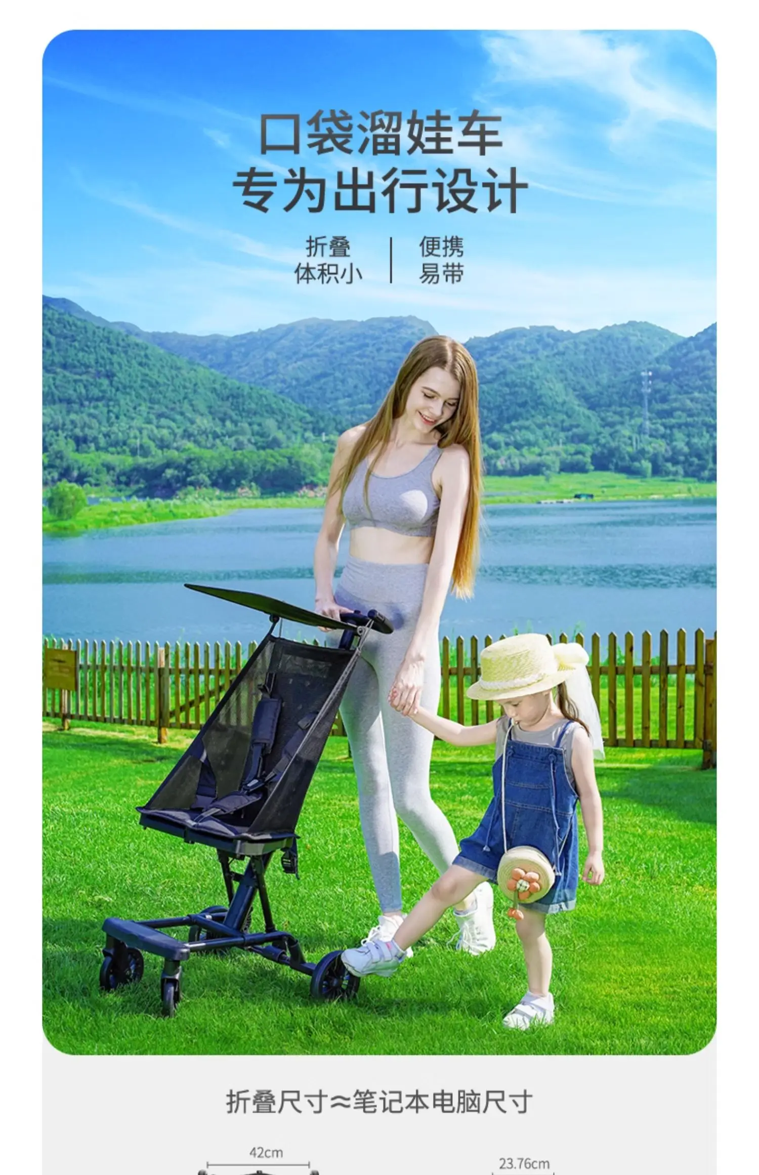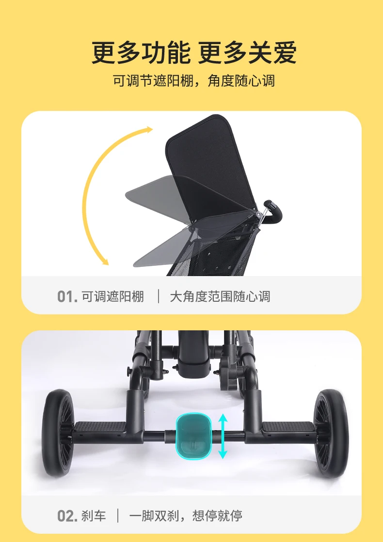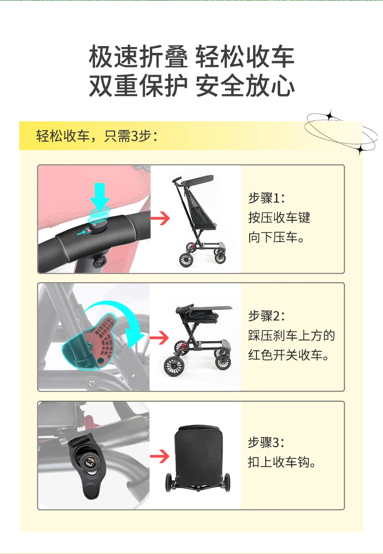 Cochecito de bebé plegable portátil, paraguas de viaje, antimedias, 4 ruedas, compacto para embarque de avión, asiento transpirable