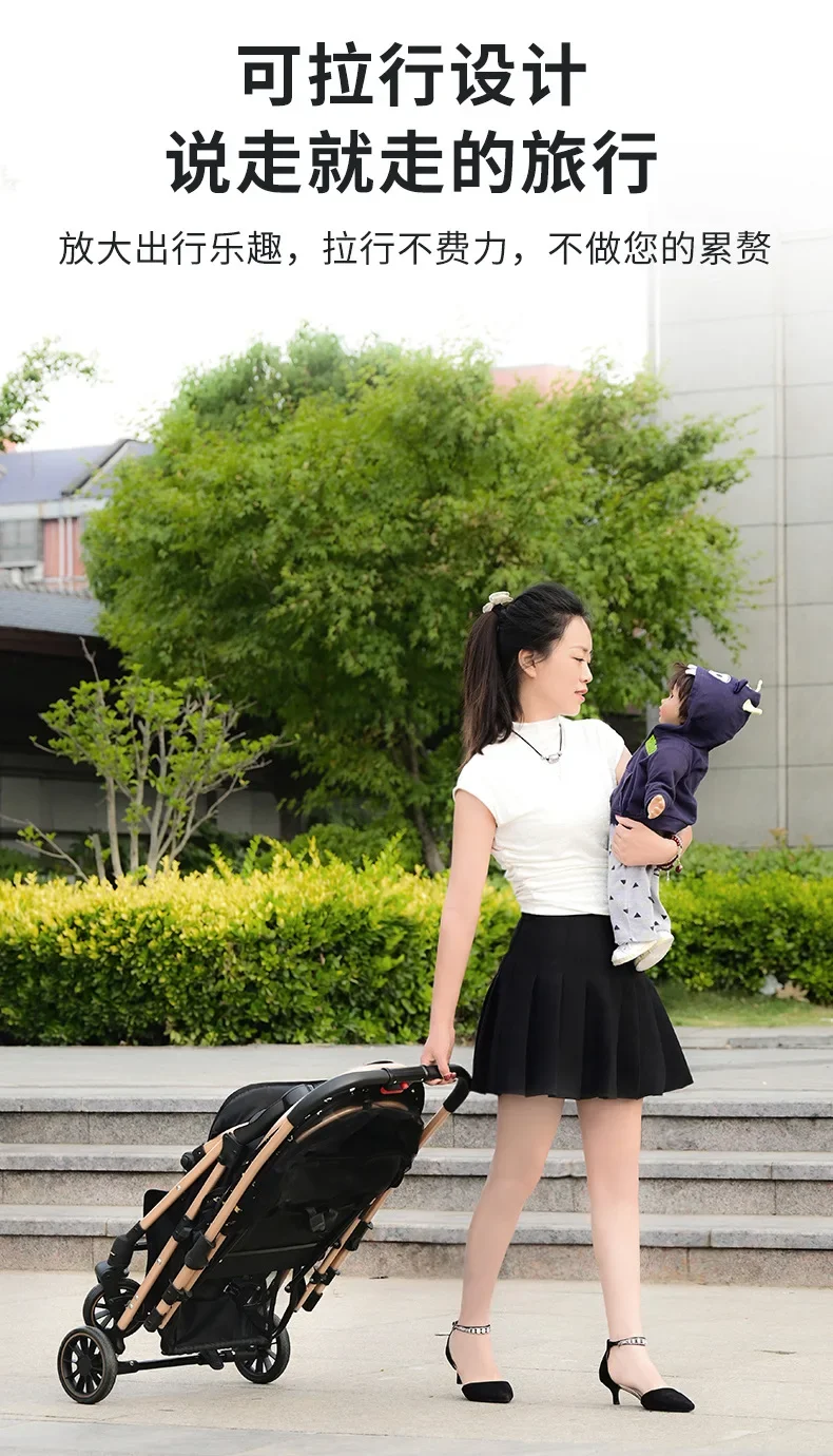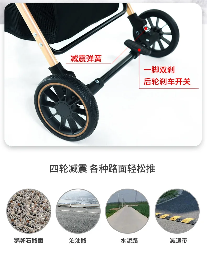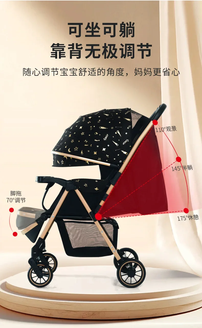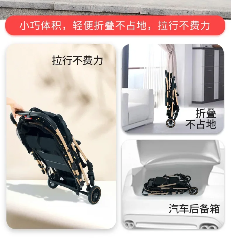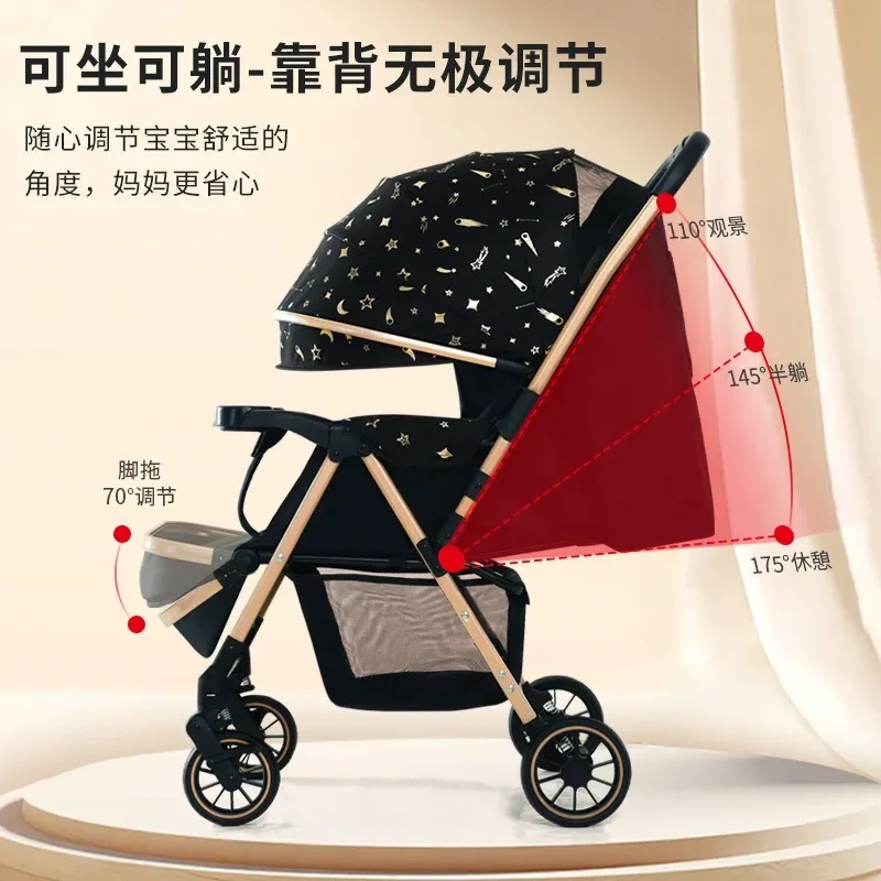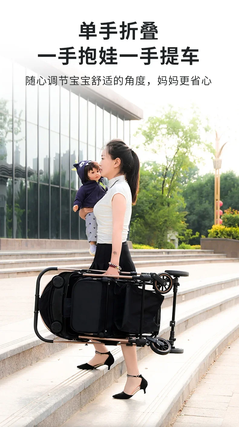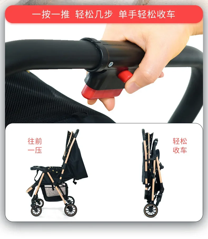 Comprar Cochecito de bebé plegable portátil, puede sentarse y acostarse, cochecito de cuatro ruedas para niños, un botón para cerrar el cochecito