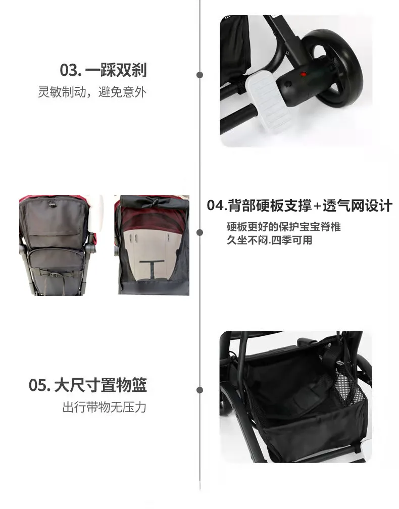 Cochecito de bebé reclinable ultraligero, 3 modos, 50kg, soporte de carga, paraguas compacto a prueba de golpes, carro plegable para avión de viaje