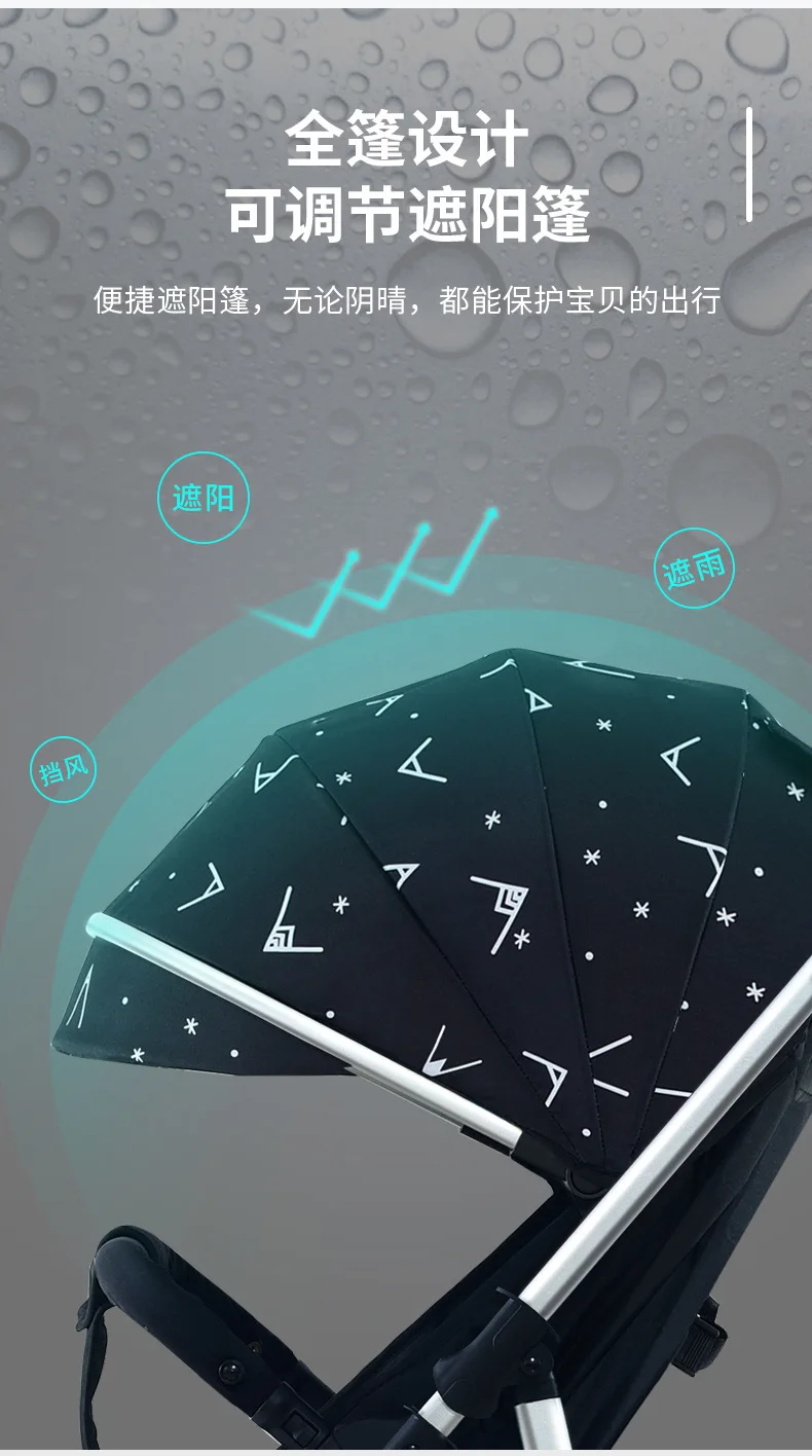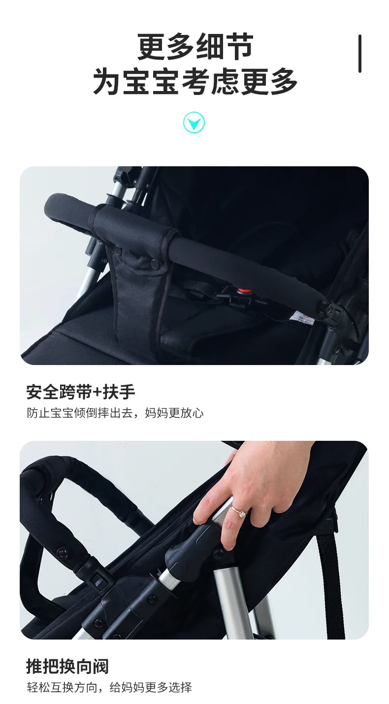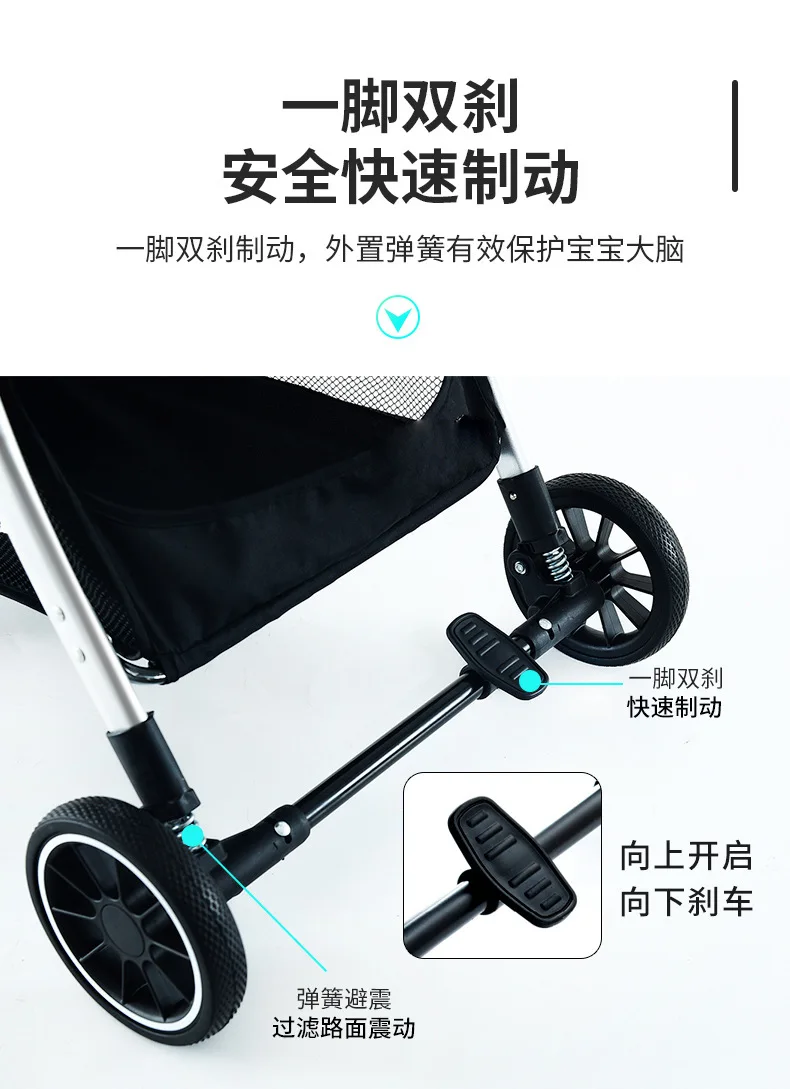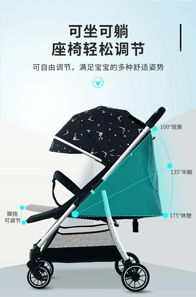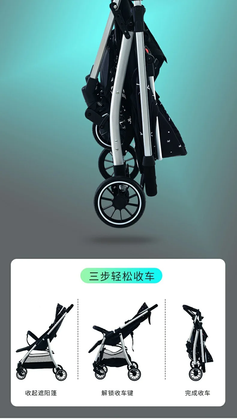 El cochecito de bebé puede sentarse y acostarse en ambas direcciones, carrito plegable para niños con cuatro ruedas y absorción de impactos de alto paisaje