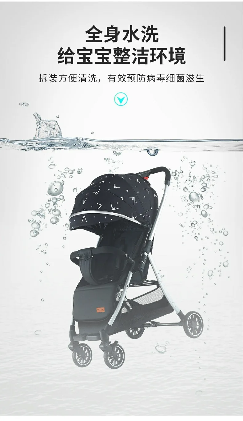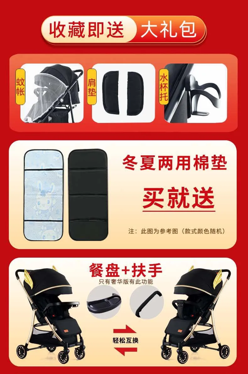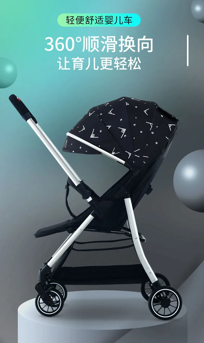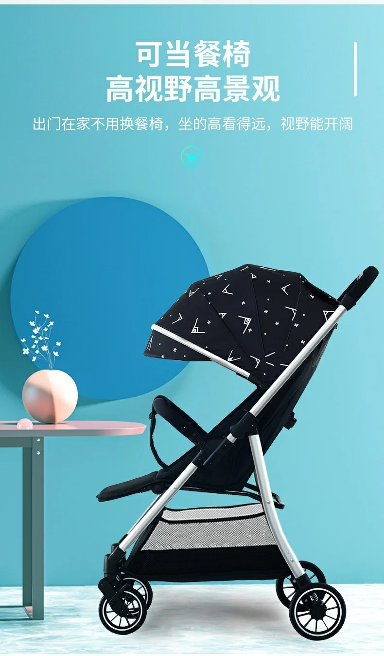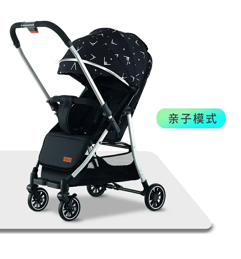 El cochecito de bebé puede sentarse y acostarse en ambas direcciones, carrito plegable para niños con cuatro ruedas y absorción de impactos de alto paisaje