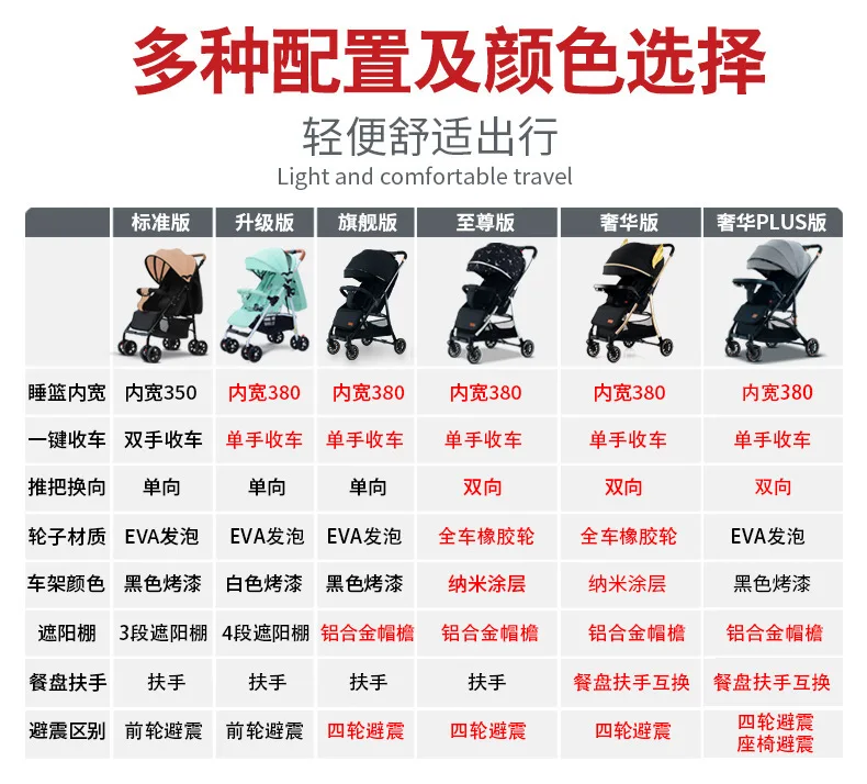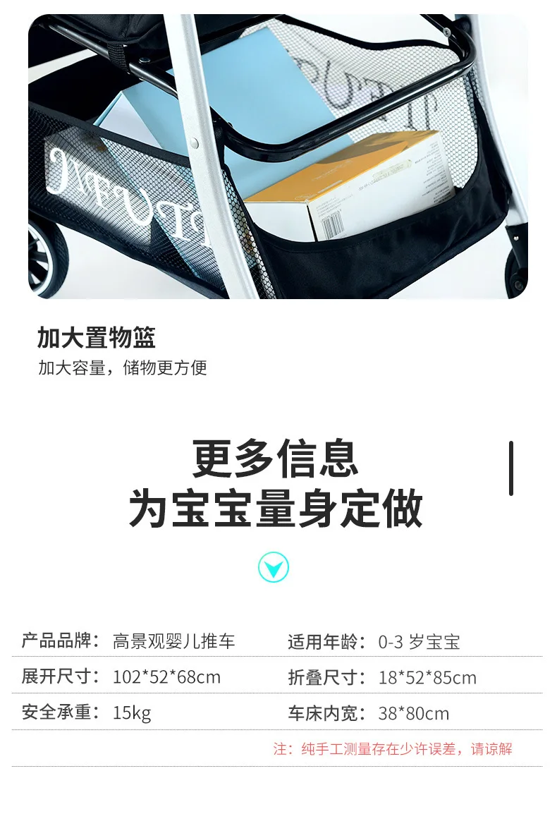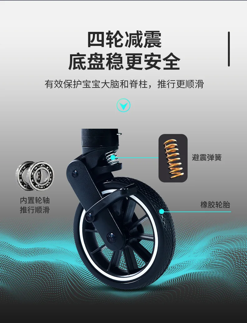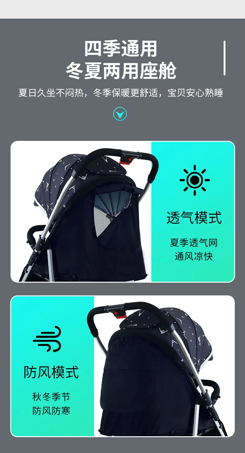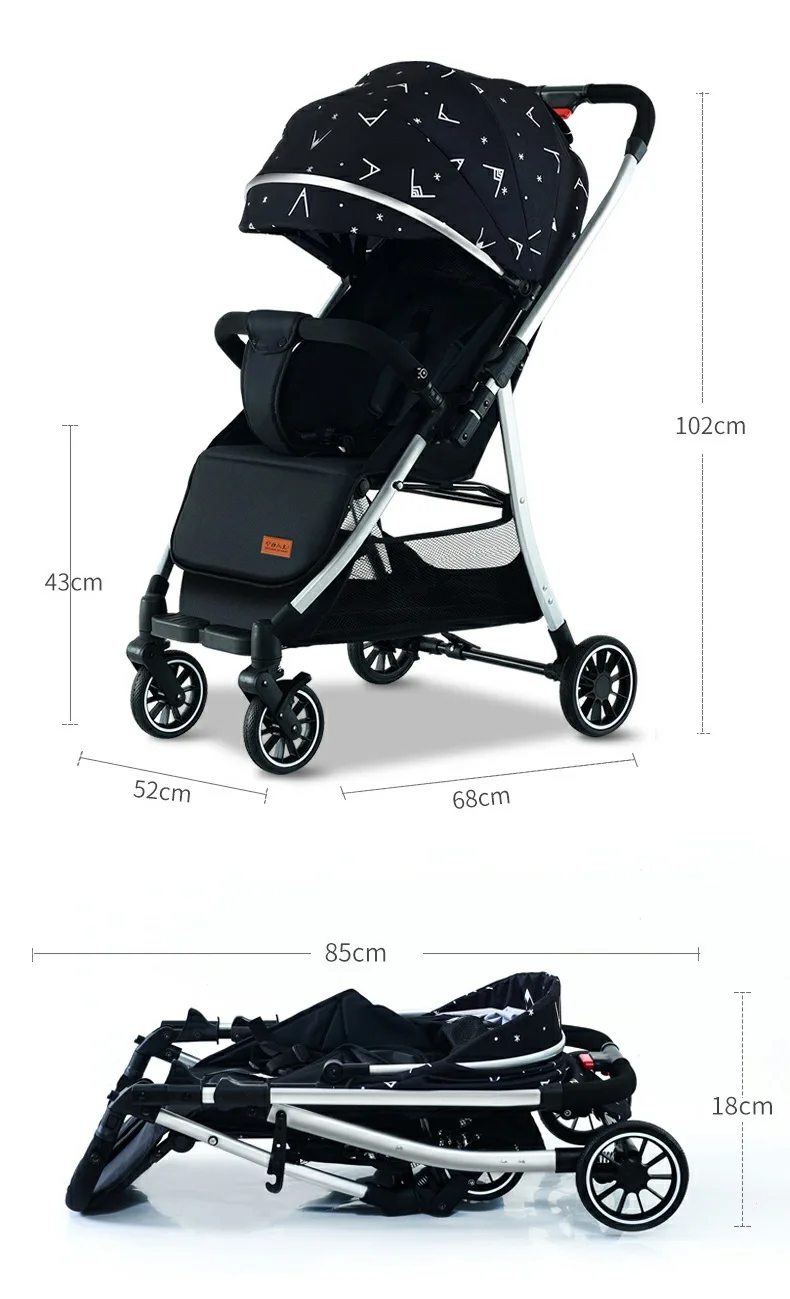 El cochecito de bebé puede sentarse y acostarse en ambas direcciones, carrito plegable para niños con cuatro ruedas y absorción de impactos de alto paisaje