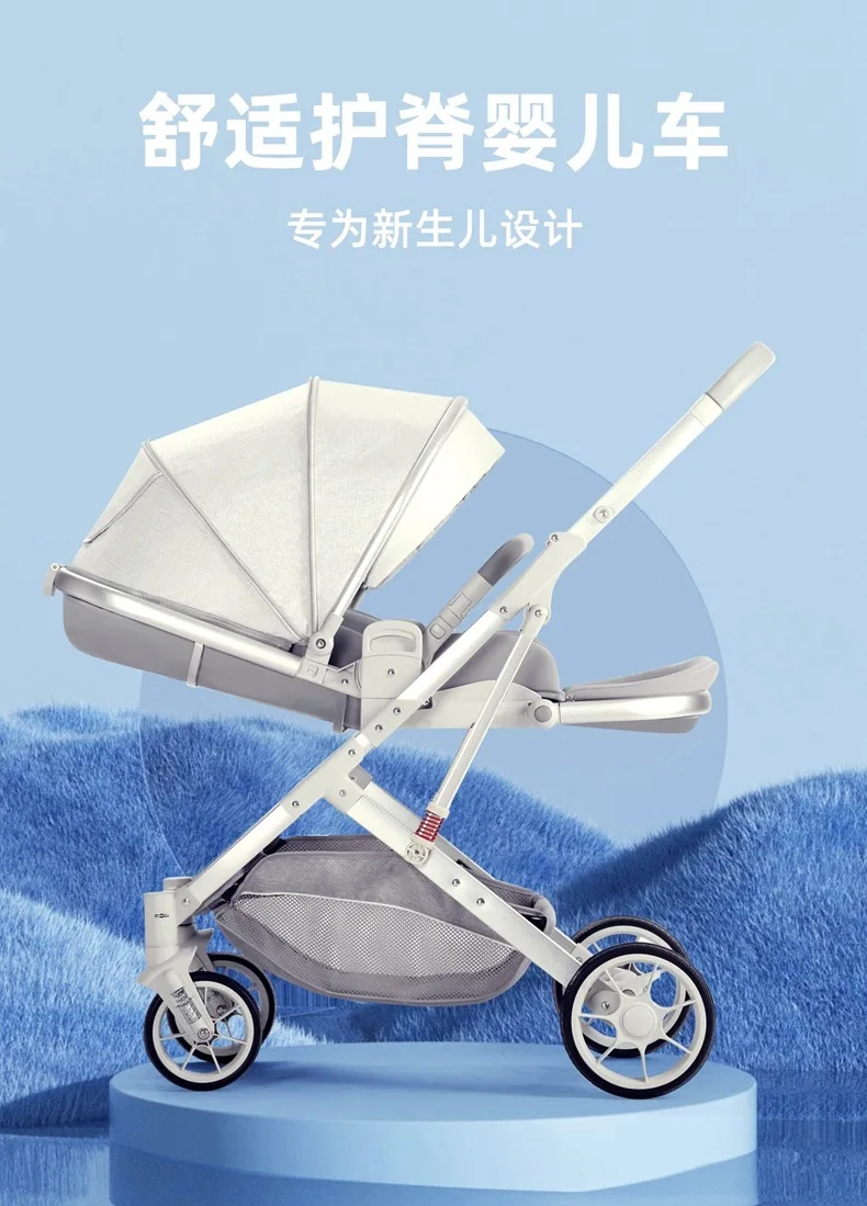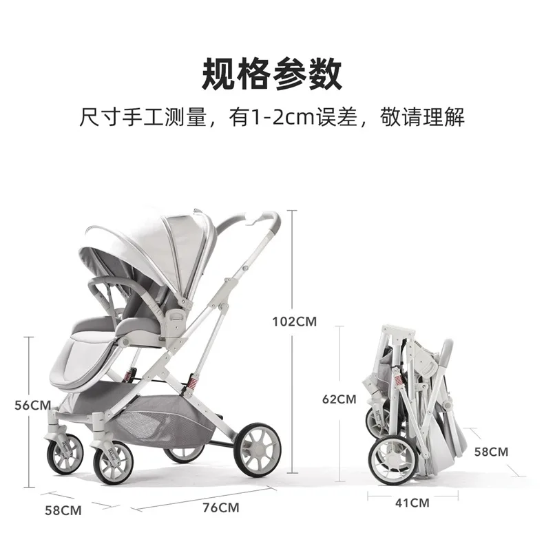Cochecito de bebé puede sentarse o acostarse, ligero, plegable en ambos direcciones, cochecito de bebé de alto paisaje para niños recién nacidos