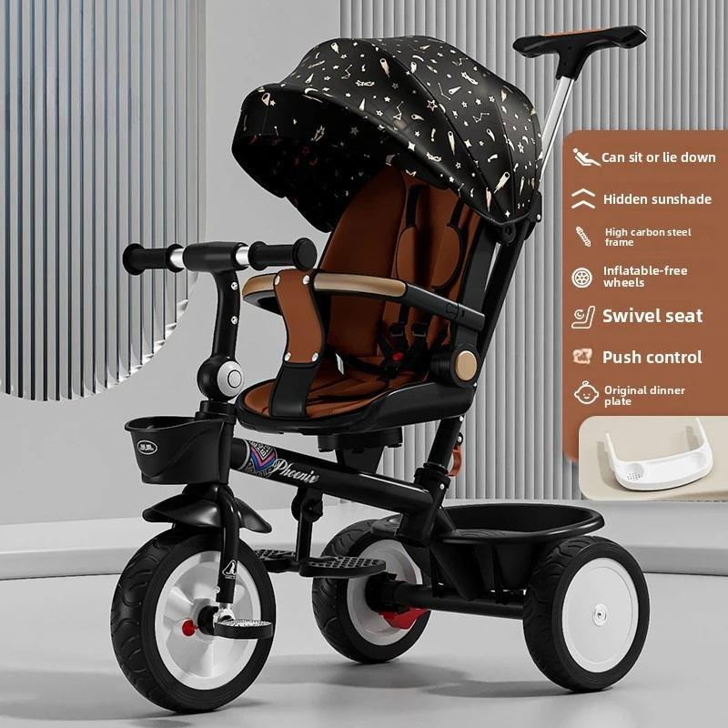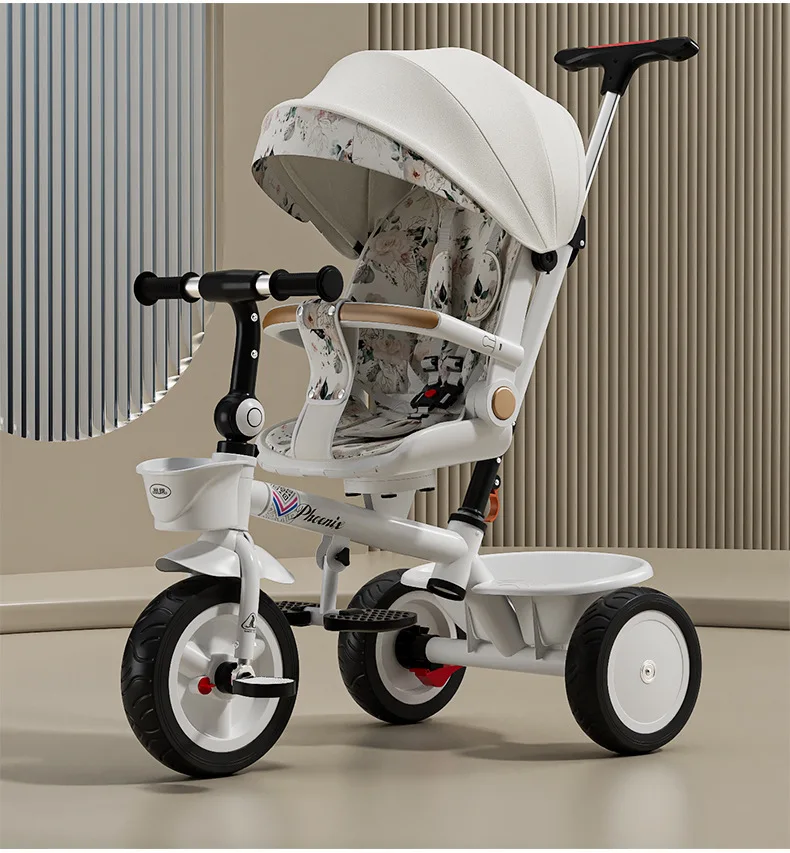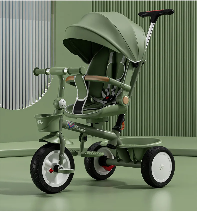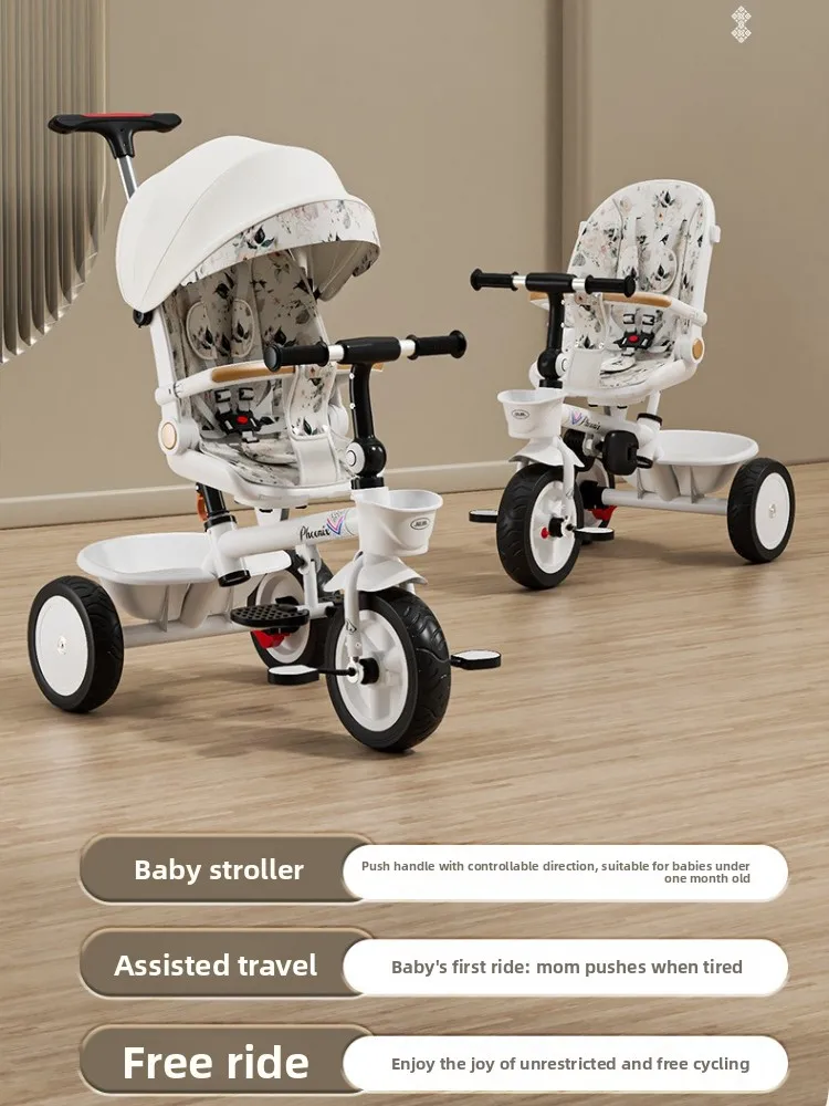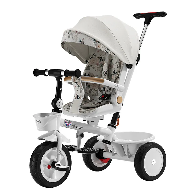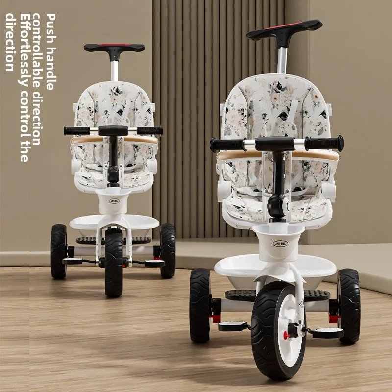 Cochecito de bebé puede sentarse, paseo tumbado, triciclo plegable para niños con dosel grande, manos de empuje, cochecito triciclo de bebé bidireccional