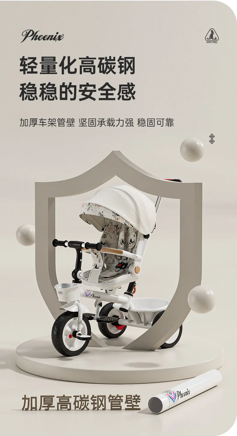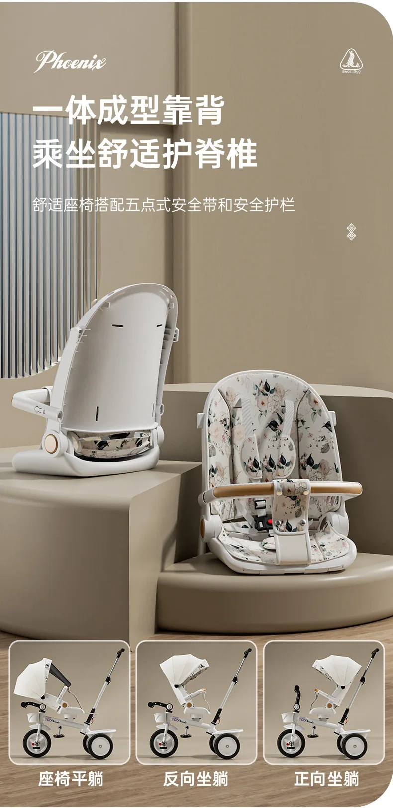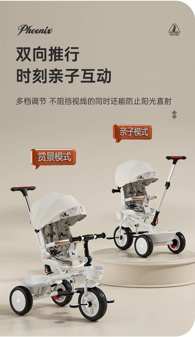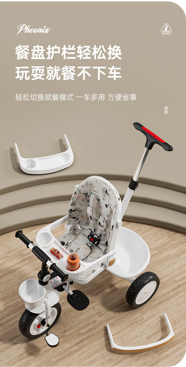 Cochecito de bebé puede sentarse, paseo tumbado, triciclo plegable para niños con dosel grande, manos de empuje, cochecito triciclo de bebé bidireccional