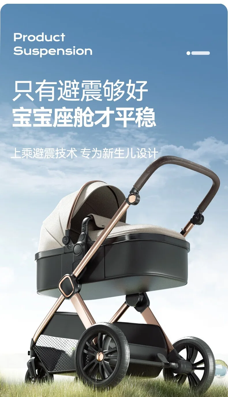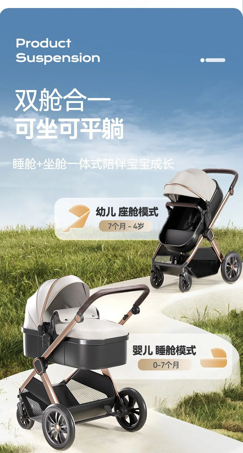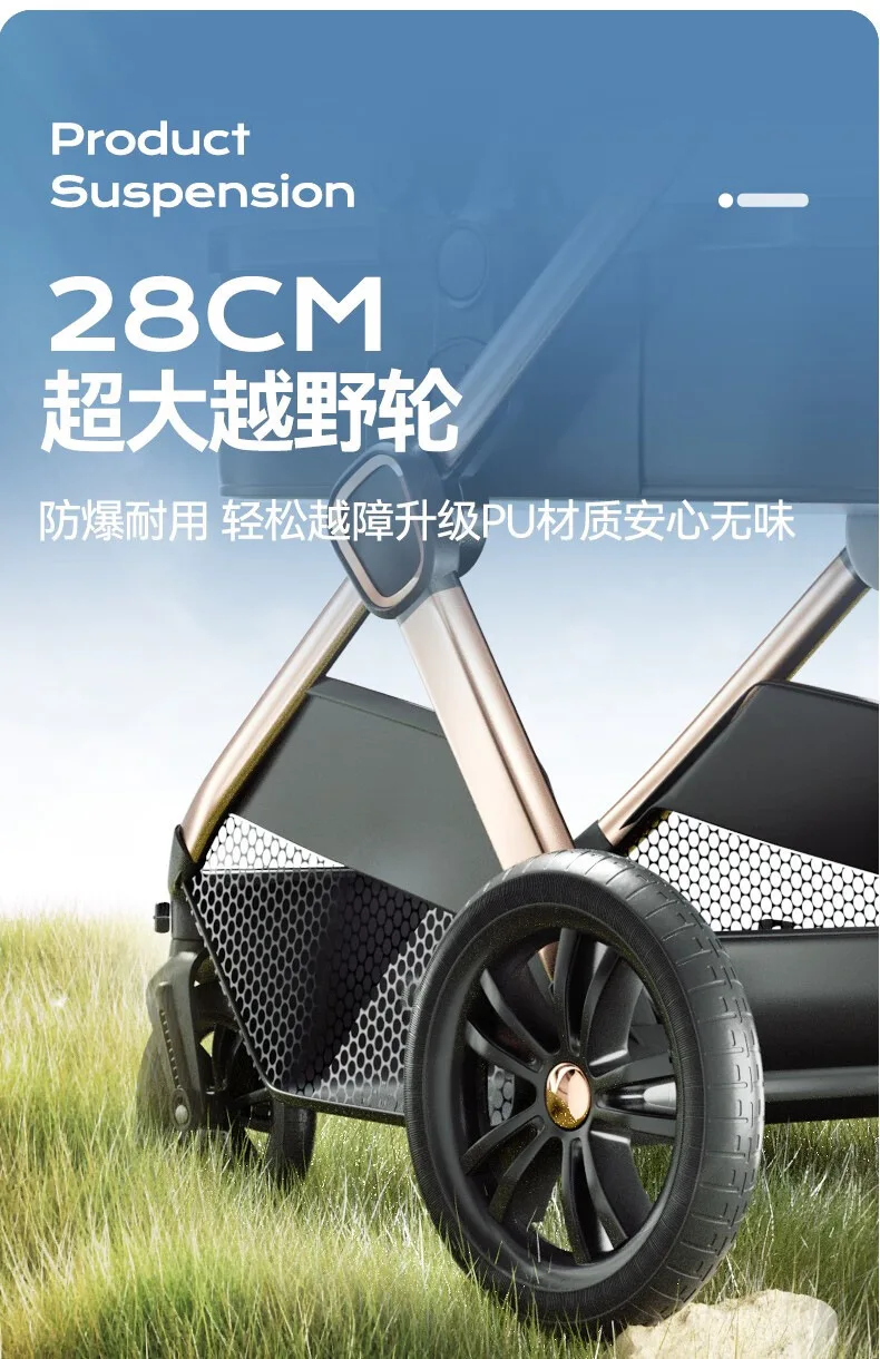 Comprar El cochecito bidireccional puede sentarse o acostarse, cochecito de bebé recién nacido con paisaje alto, a prueba de golpes