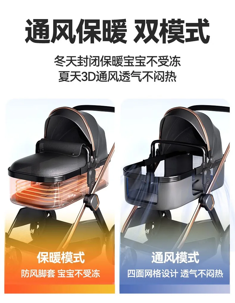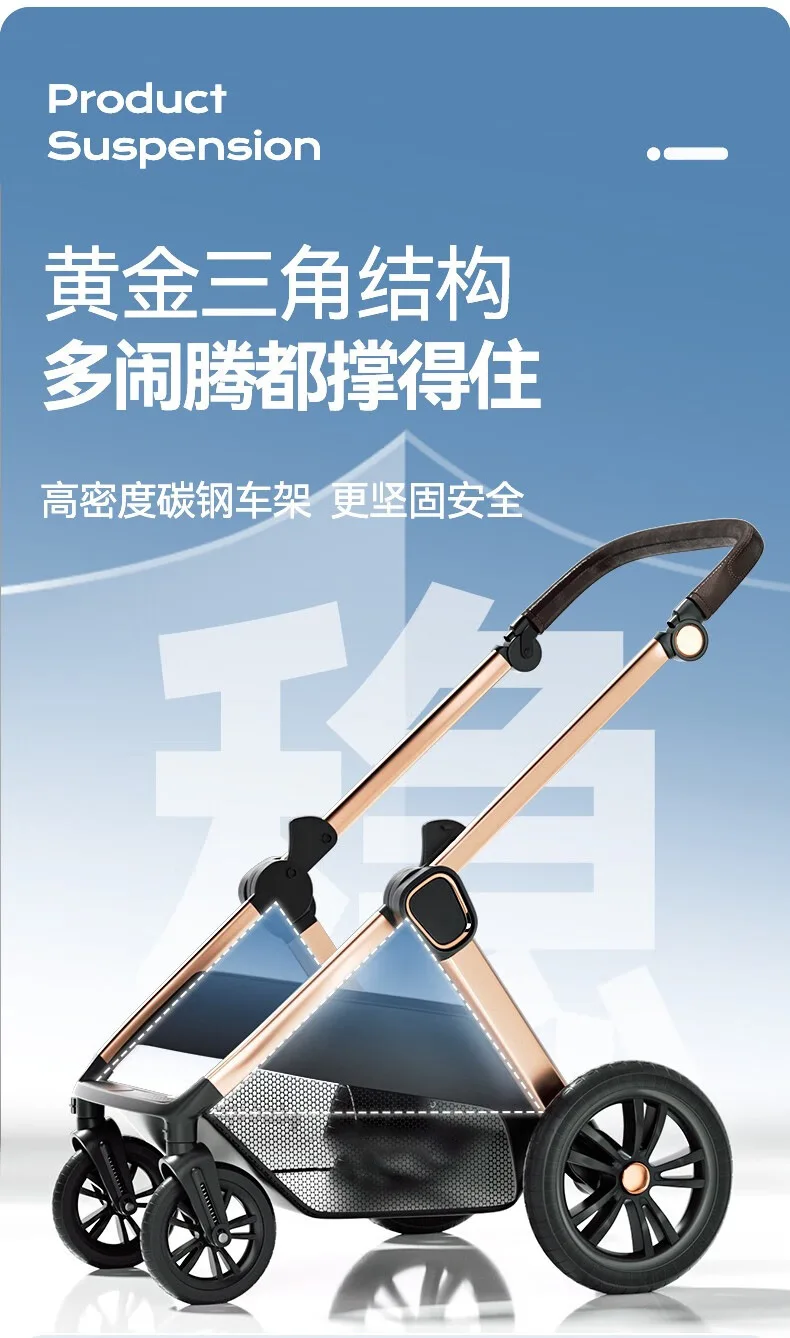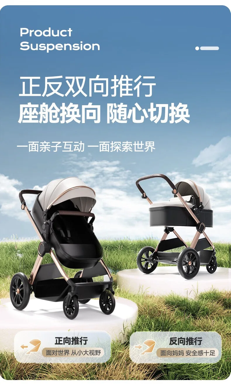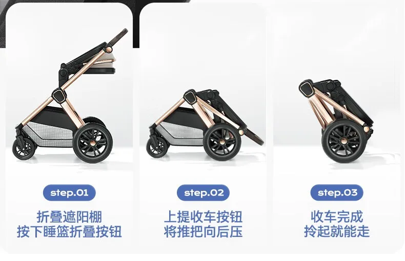 Comprar El cochecito bidireccional puede sentarse o acostarse, cochecito de bebé recién nacido con paisaje alto, a prueba de golpes