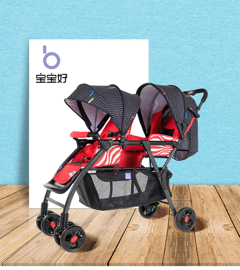 Comprar Cochecito de cuatro ruedas para bebé, asiento doble delantero y trasero, plegable, ligero, puede acostarse, plano, tamaño de doble uso, coche tesoro