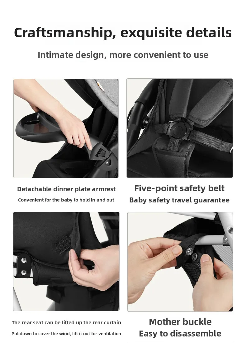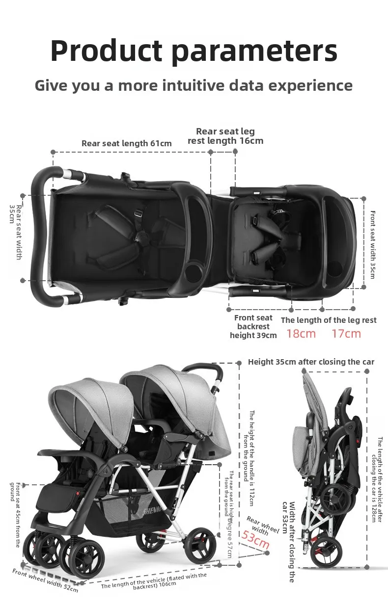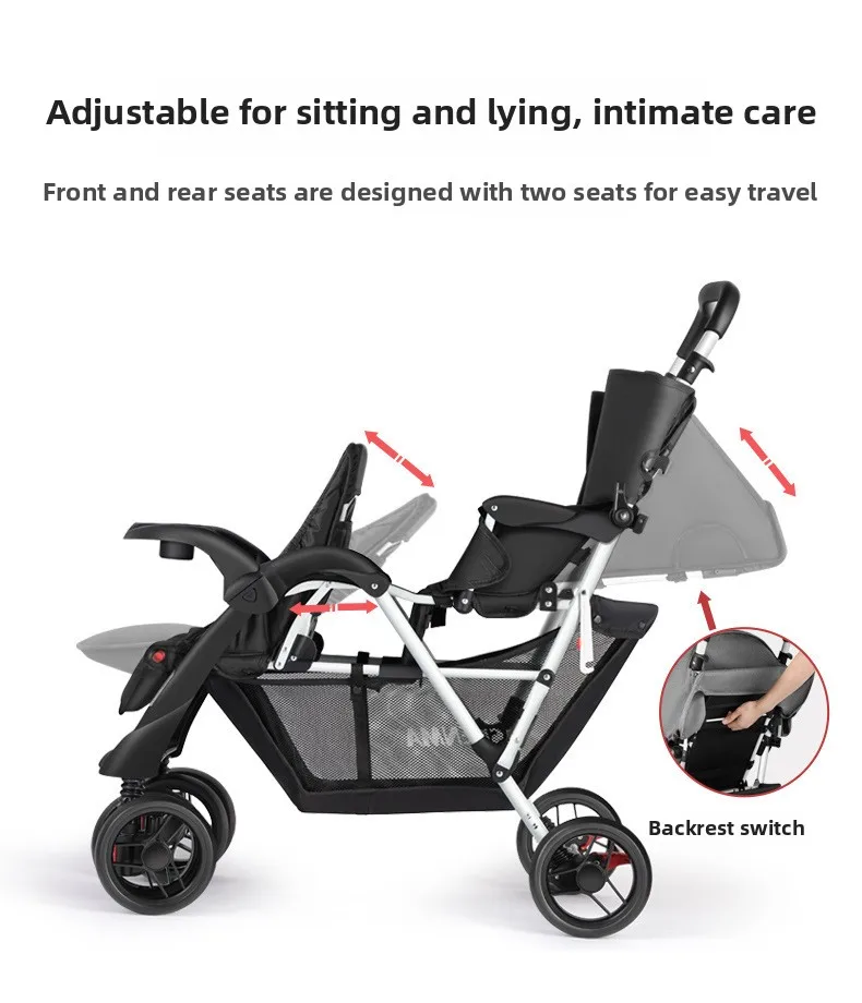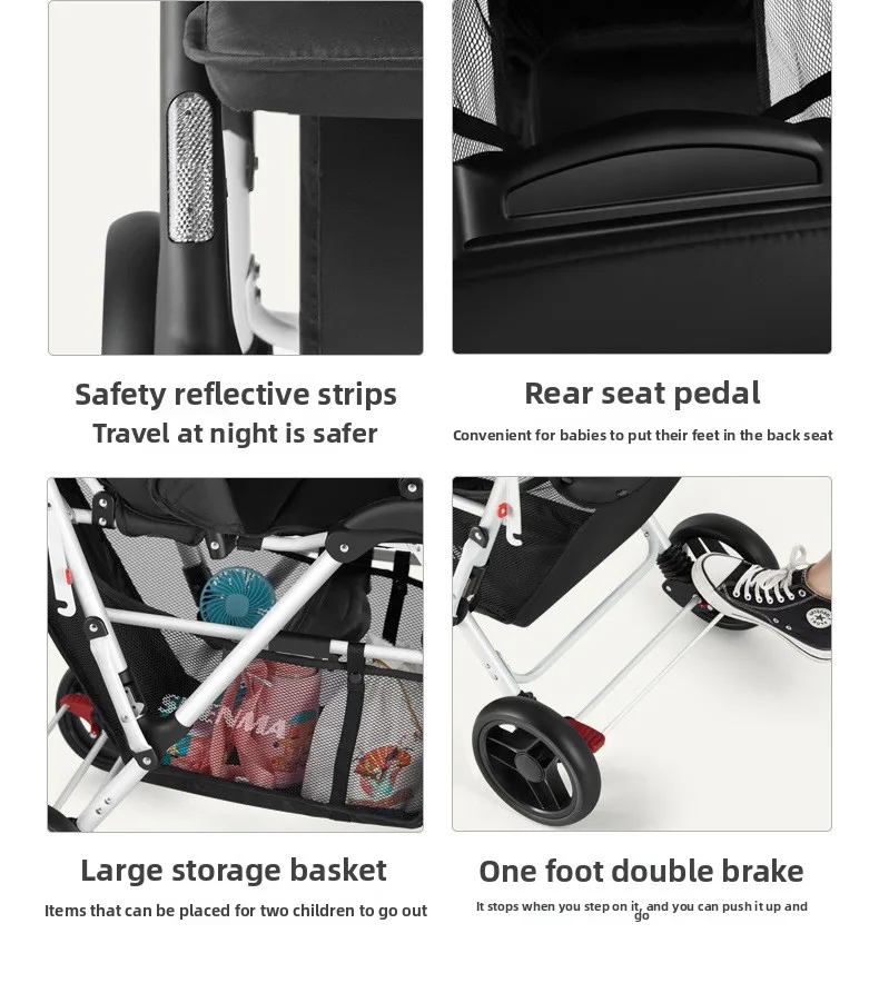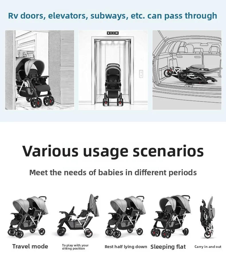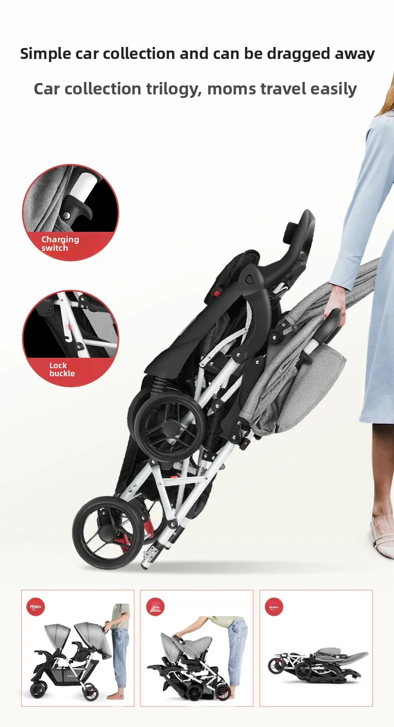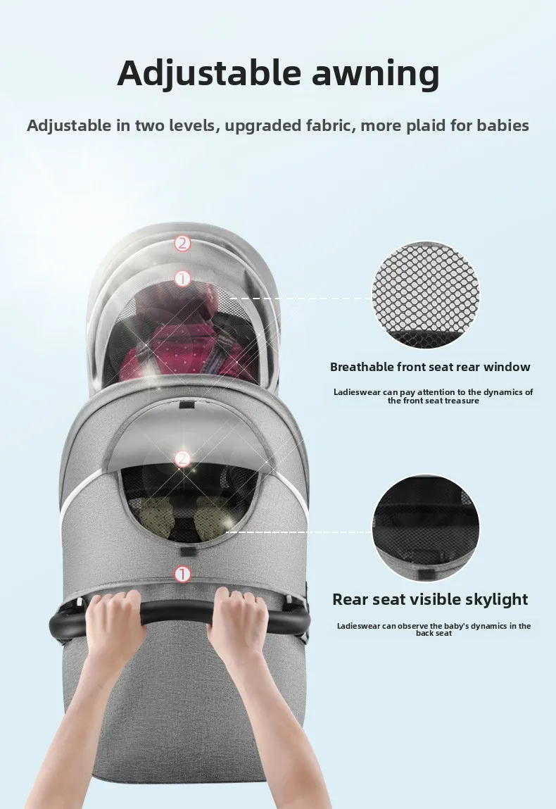 Cochecito doble plegable ligero para niños, cochecito doble, andadores para bebés con opciones para sentarse, vista alta en el paisaje