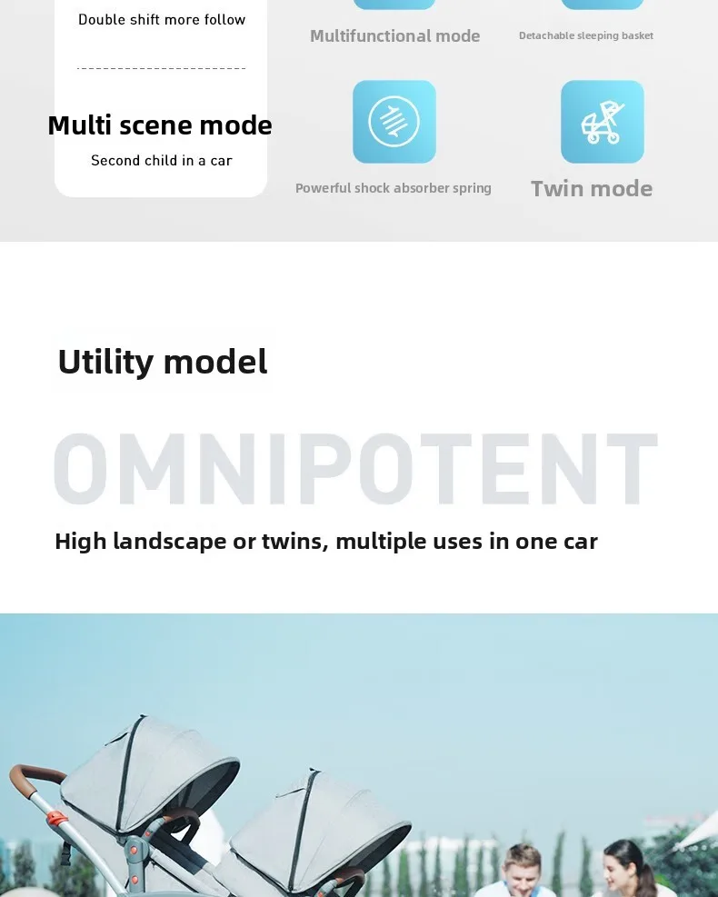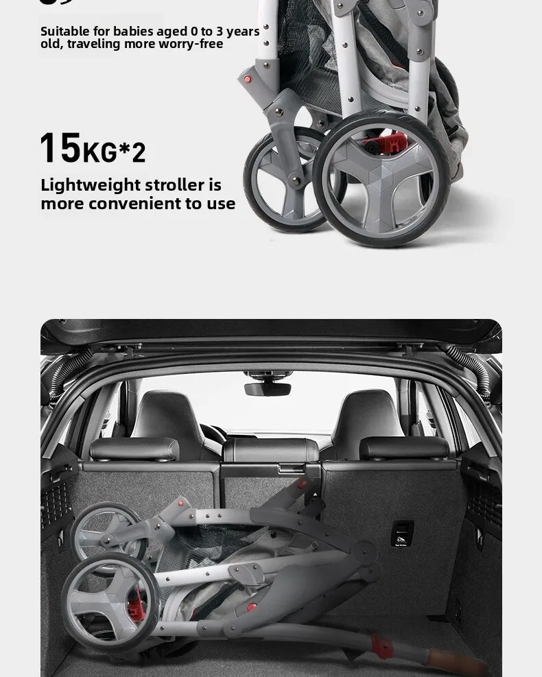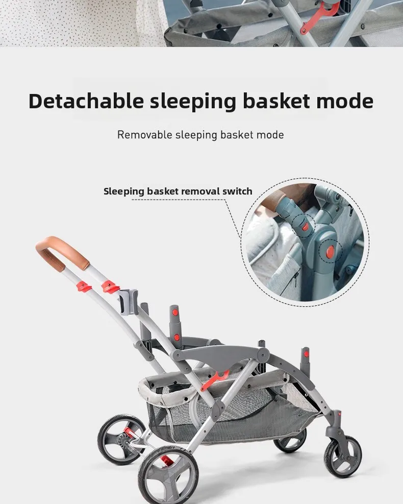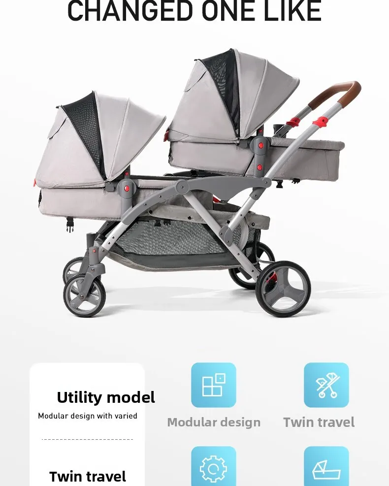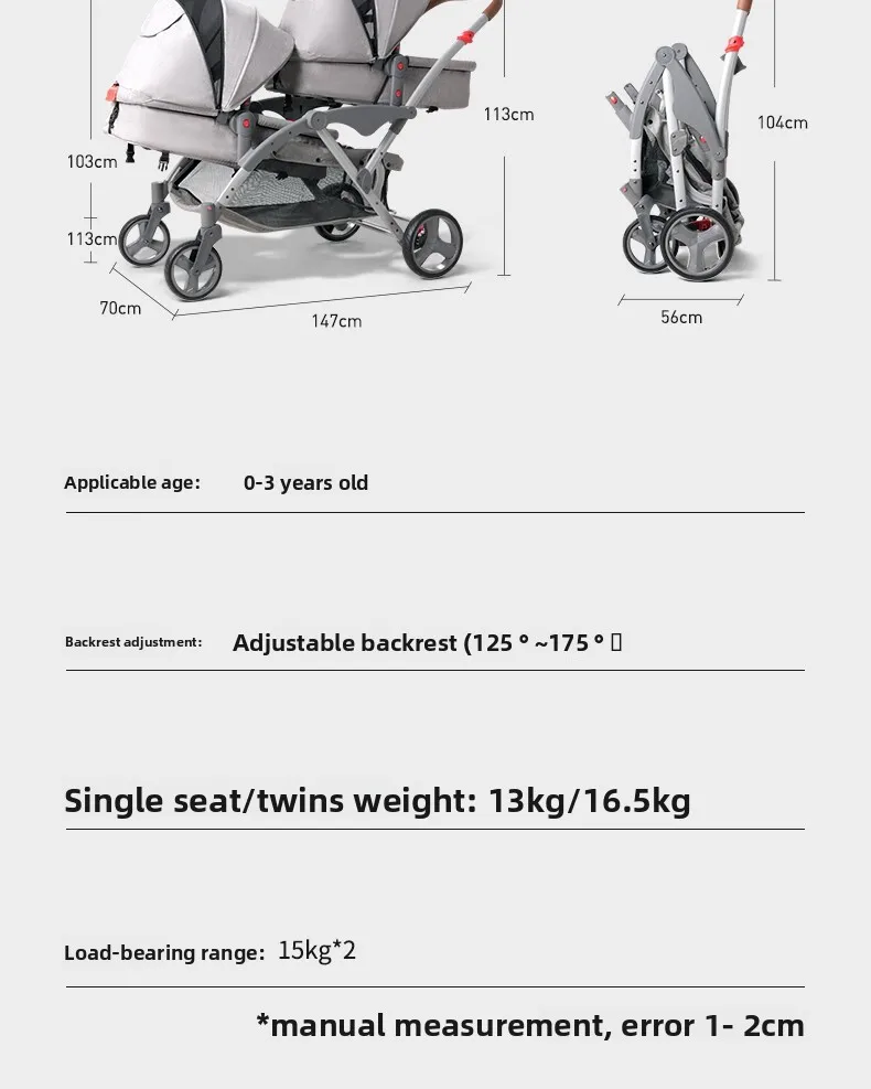 Cochecito doble, plegable ligero, puede sentarse y acostarse.