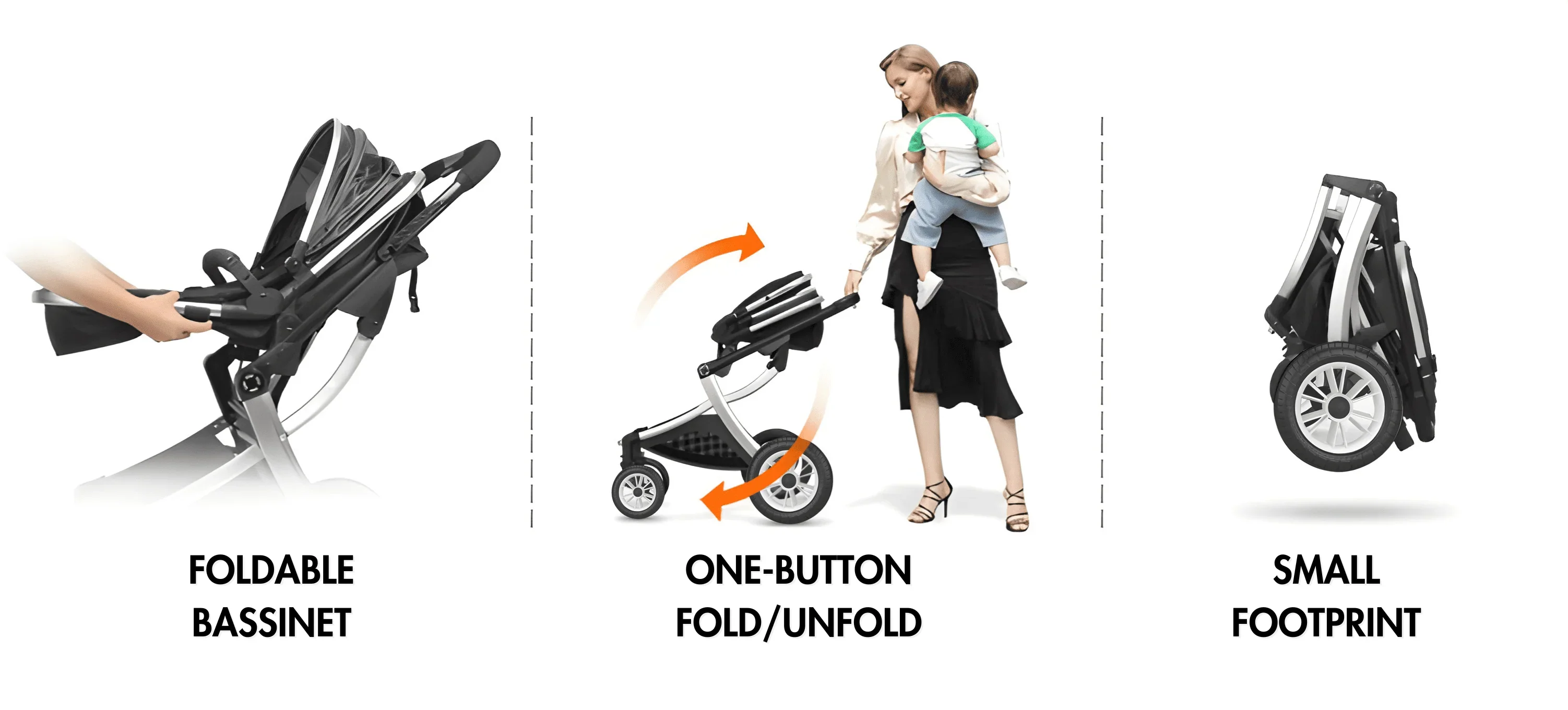 ESPECIFICACIONES:CONTENIDO DEL PAQUETE: Estructura de cochecito, moisés y asiento de coche.
