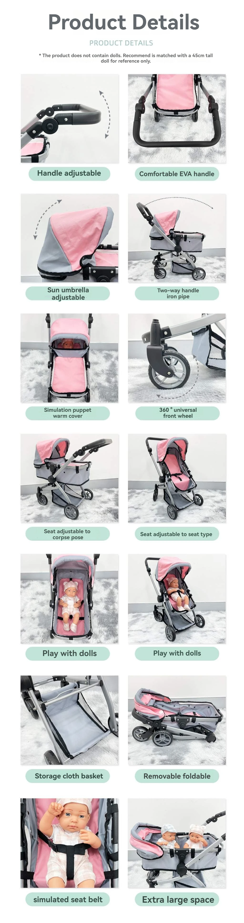 Comprar Cochecito de muñeca 2 en 1 con dosel, cesta de almacenamiento, cochecito de muñeca, cochecito de moda, juguete para juego de imitación para niños, se adapta a muñecas de hasta 18 "/45cm