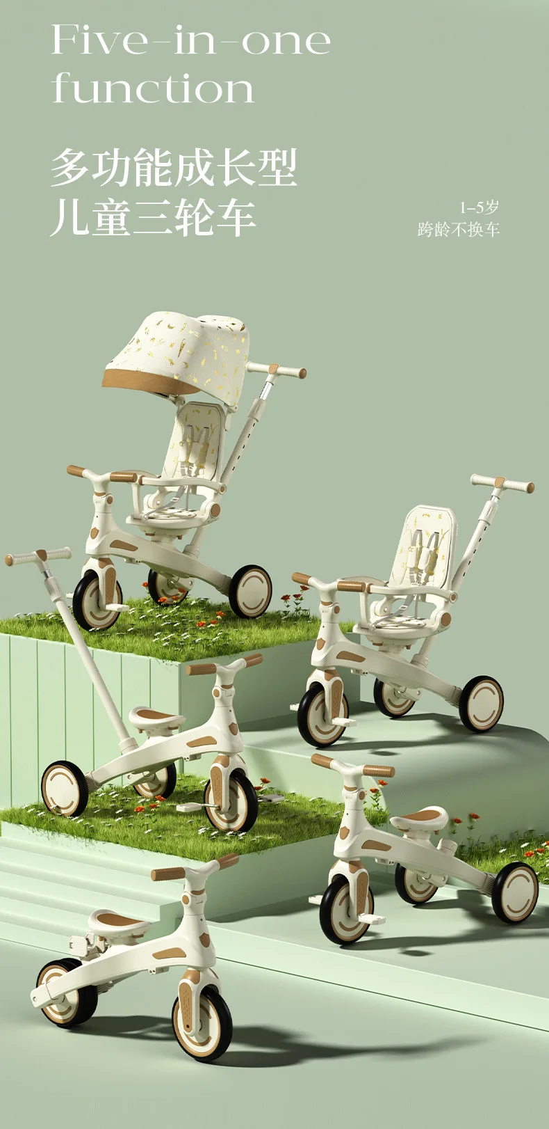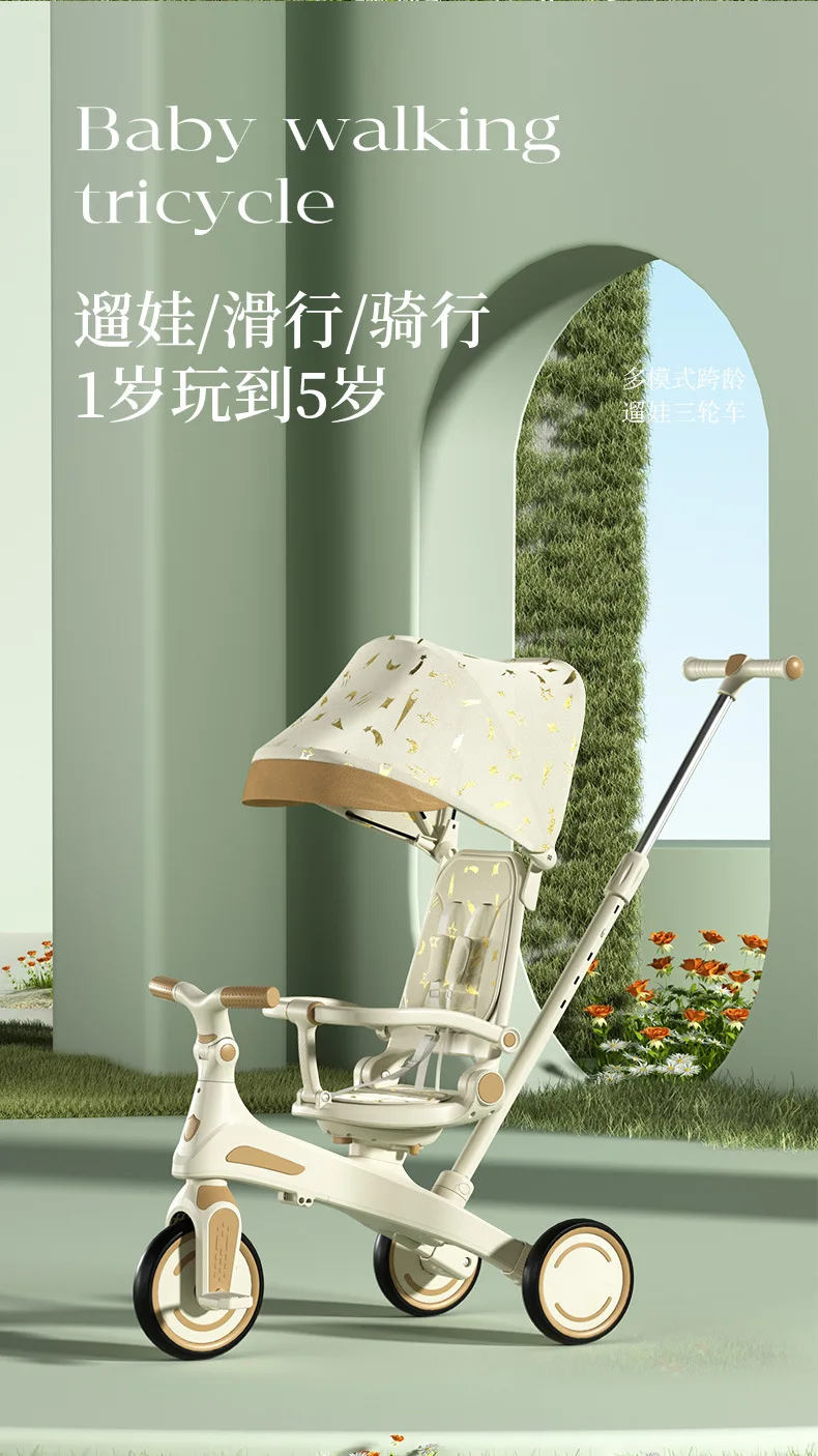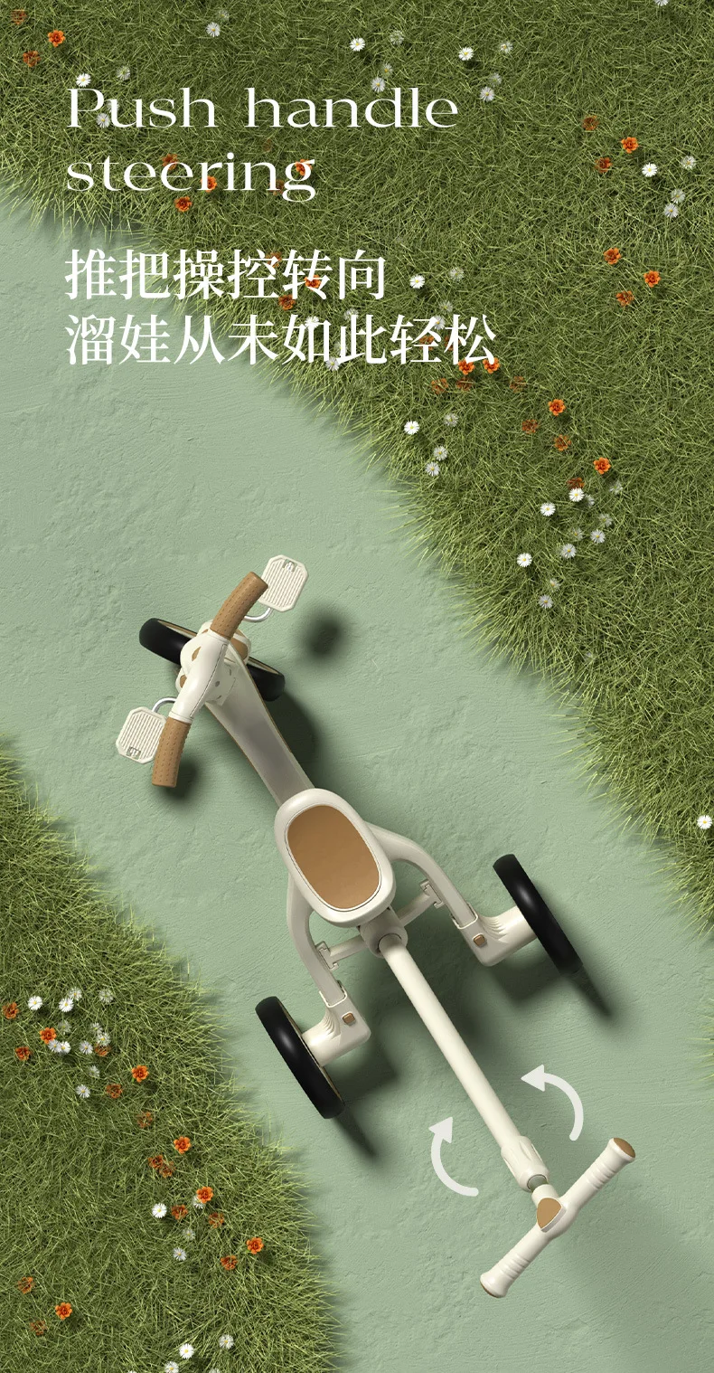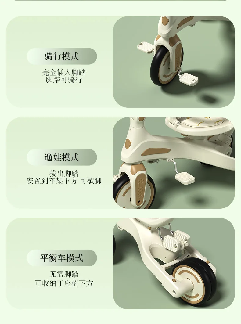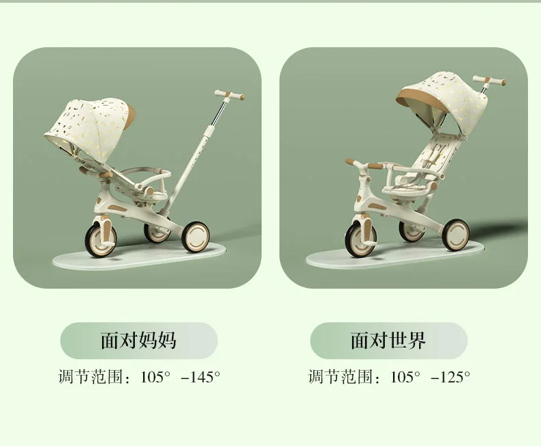 Cochecito de Pedal para triciclo para niños, cochecito para niños, cochecito de juguete ligero multifuncional para tumbarse de 1 a 3 años