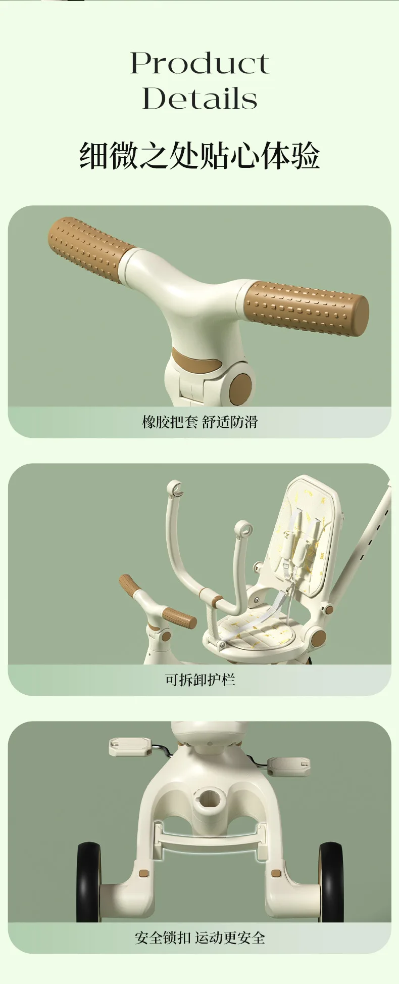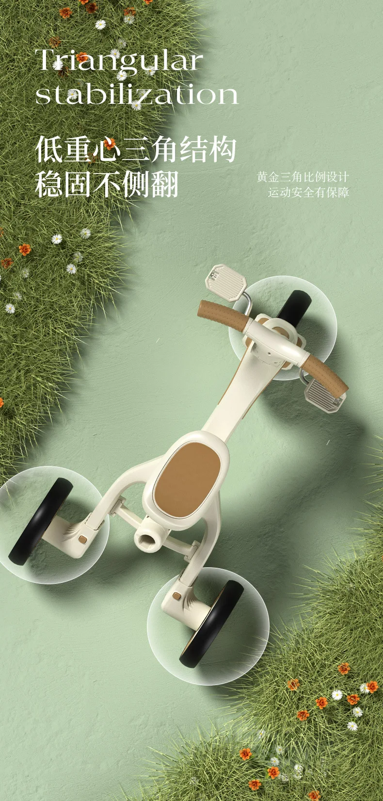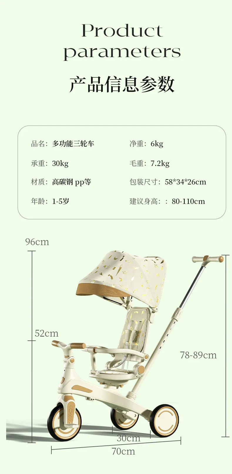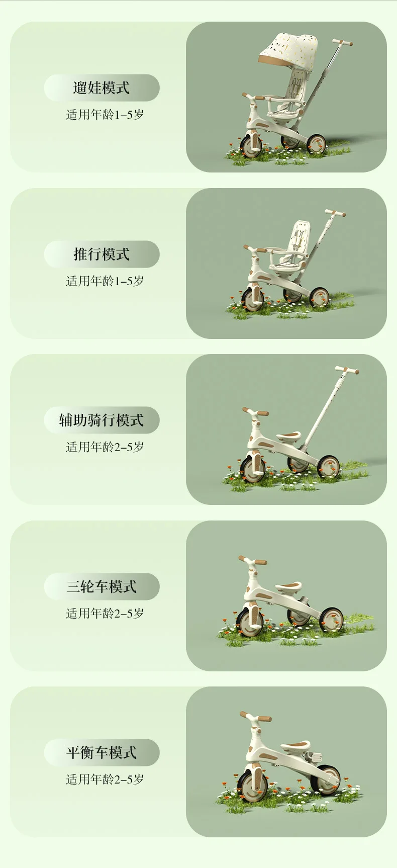 Cochecito de Pedal para triciclo para niños, cochecito para niños, cochecito de juguete ligero multifuncional para tumbarse de 1 a 3 años