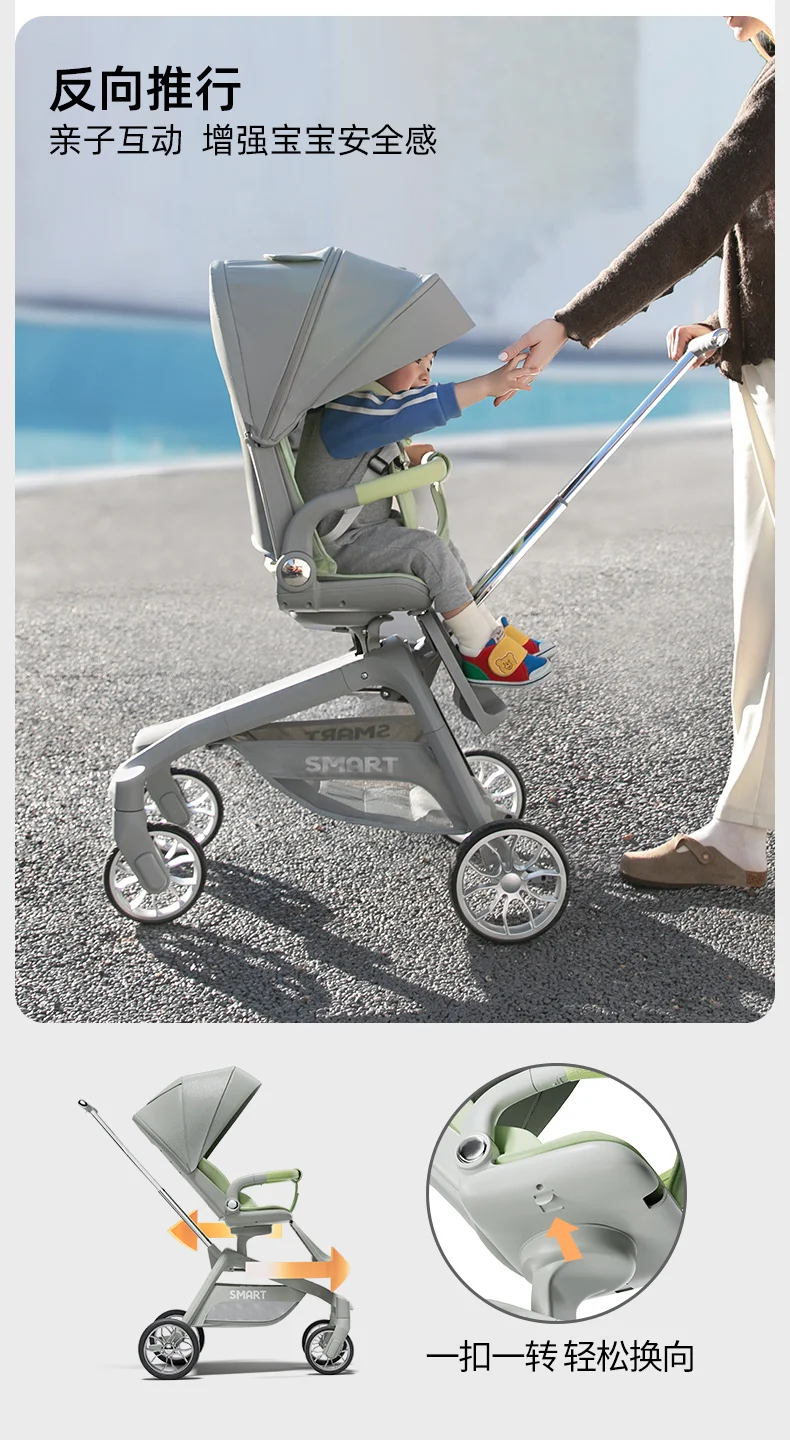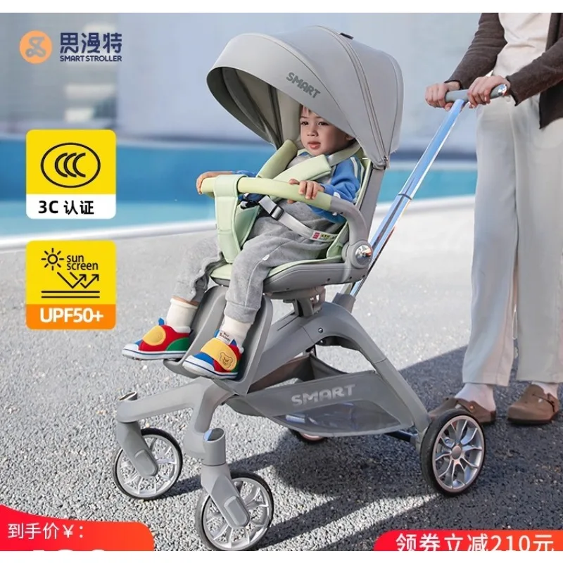 Comprar El cochecito plegable ligero puede sentarse y acostarse, coche bidireccional para bebés y niños con paisaje alto